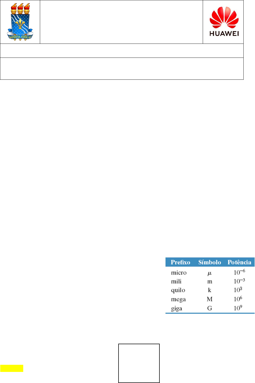 UNIVERSIDADE FEDERAL DA PARAÍBA CEAR – CENTRO DE ENERGIAS ALTERNATIVAS E RENOVÁVEIS Programa Huawei Power Generation Módulo 1: Eletricidade básica aplicada a sistemas fotovoltaicos Profª. Thamyres Tâmulla C. Palitó Atividade 1 – Conceitos Fundamentais e Lei de Ohm Aluno(a): OBS: Apresente os cálculos das questões 4, 5, 6 e 7. Fórmulas úteis: 𝑉 = 𝑅𝐼 e 𝑃 = 𝑉𝐼 1- Relacione corretamente o conceito das seguintes grandezas elétricas (1,0 pontos): A. Tensão elétrica ( E ) é capacidade de trabalho de uma corrente elétrica. B. Corrente elétrica ( D ) é igual ao produto da tensão pela corrente. C. Resistência Elétrica ( B ) é o fluxo ordenado dos elétrons. D. Potência elétrica ( A ) é a força necessária para movimentar os elétrons. E. Energia elétrica ( C ) é a capacidade de um material opor-se à corrente elétrica. 2- Relacione corretamente a unidade de medida das seguintes grandezas elétricas (1,0 pontos): A. Tensão elétrica ( D ) Watt (W) B. Corrente elétrica ( A ) Volt (V) C. Resistência Elétrica ( C ) Ohm (Ω) D. Potência elétrica ( E ) Watt × segundo (Ws) E. Energia elétrica ( B ) Ampere (A) 3- Efetue as conversões abaixo (2,0 pontos): a) 27000 µA = 0,027 A = 27 × 10−3 A b) 85 mV = 0,0085 V = 8500 × 10−6 V c) 3,7MW = 3700 KW = 370 × 104 W d) 2,8 mV = 2800 µV = 280 × 10−5 V e) 6,0 A = 6000 mA = 0,006 × 103 A 4- Determine a diferença de potencial (tensão) em um fio condutor com resistência de 20 Ohms, por onde passa uma corrente de 5 Amperes (1,5 pontos). a) 4 V b) 8 V c) 10 V d) 100 V e) 120 V 𝑉 = 𝑅𝐼 𝑉 = 20 × 5 𝑉 = 100 𝑉 5- Qual a resistência elétrica de uma lâmpada LED que possui uma tensão de 12 V e consome uma corrente elétrica de 0,5 A (1,5 pontos)? a) 6 Ω b) 24 Ω c) 30 Ω d) 48 Ω e) 60 Ω 6- Uma empresa possui um equipamento que funciona com uma corrente elétrica de 5 A e uma tensão de 127 V. Entretanto, o novo local onde a empresa se instalou fornece uma tensão de 220 V. Considerando a resistência constante, a nova corrente elétrica consumida ao ligar o equipamento na nova tensão será de aproximadamente (1,5 pontos): a) 1,27 A. b) 2,89 A. c) 3,58 A. d) 5,77 A. e) 8,66 A. 7- Uma lâmpada LED (diodo emissor de luz), que funciona com 12 V e corrente contínua de 0,45 A, produz a mesma quantidade de luz que uma lâmpada incandescente de 60 W de potência. Qual é o valor da redução da potência consumida ao se substituir a lâmpada incandescente pela de LED (1,5 pontos)? a) 54,6 W b) 27,0 W c) 26,6 W d) 5,4 W e) 5,0 W 𝑉 = 𝑅𝐼 Logo, 𝑅 = 𝑉 𝐼 = 12 0,5 = 24Ω 𝑅1 = 𝑉1 𝐼1 = 127 5 = 25,4Ω = 𝑅2 Logo, 𝐼2 = 𝑉2 𝑅2 = 220 25,4 = 8,66𝐴 𝑃𝐿𝐸𝐷 = 𝑉𝐿𝐸𝐷 × 𝐼𝐿𝐸𝐷 𝑃𝐿𝐸𝐷 = 12 × 0,45 𝑃𝐿𝐸𝐷 = 5,4 𝑊 𝑅𝑒𝑑𝑢çã𝑜 = 𝑃𝐼𝑛𝑐𝑎𝑛𝑑𝑒𝑠𝑐𝑒𝑛𝑡𝑒 − 𝑃𝐿𝐸𝐷 𝑅𝑒𝑑𝑢çã𝑜 = 60 − 5,4 𝑅𝑒𝑑𝑢çã𝑜 = 54,6 𝑊