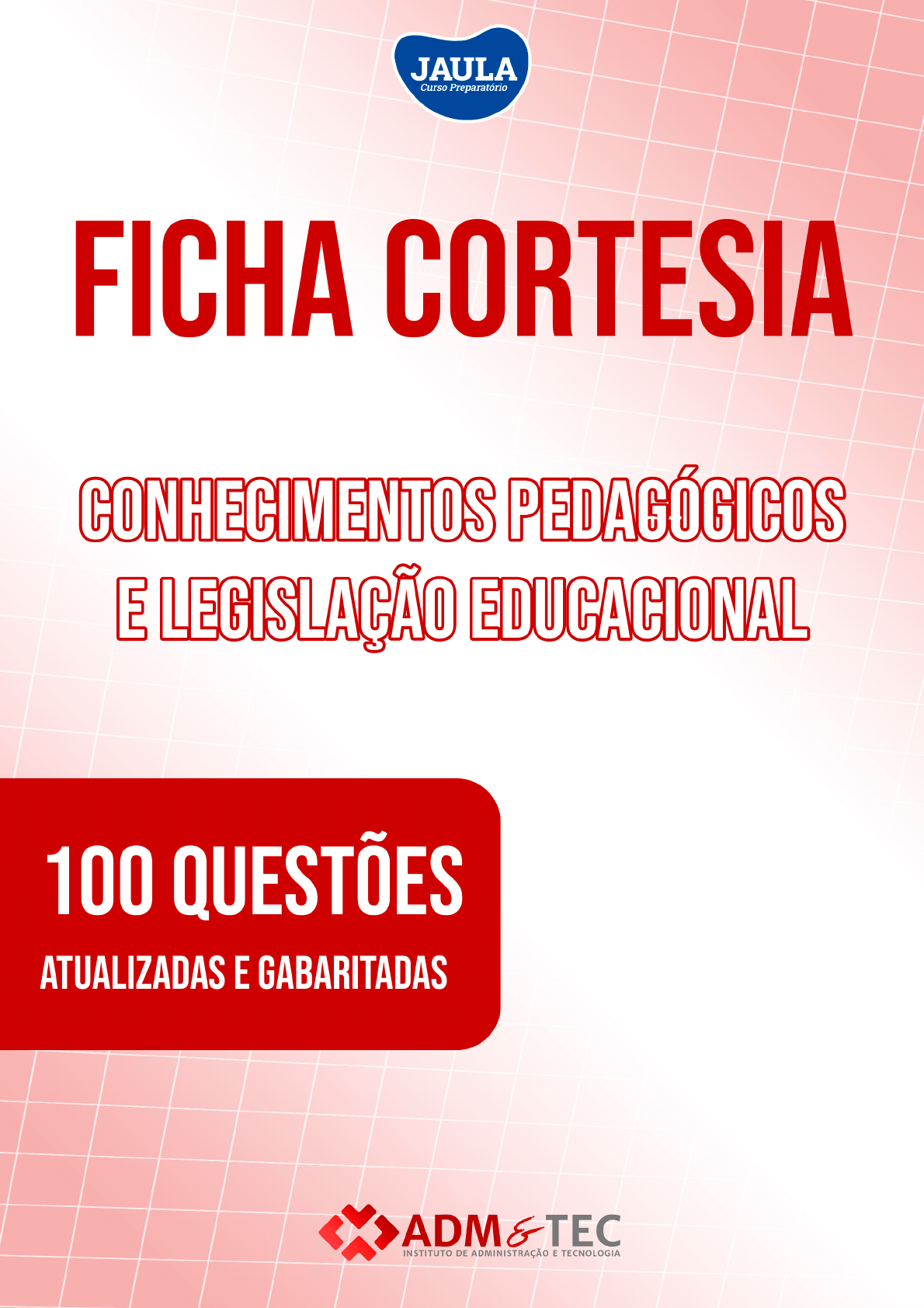 FICHA CORTESIA SPRINT FINAL EDUCAÇÃO 80 QUESTÕES GABARITADAS Licenciado para - H enllayane N athani de A m orim A m aral - undefined - P rotegido por E duzz.com QUETÕES DE CONHECIMENTOS PEDAGÓGICOS E LEGISLAÇÃO EDUCACIONAL BANCA ADM&TEC 1) (ADM&TEC 2024) Analise as assertivas abaixo e assinale a alternativa que corresponda a sequência correta. ( ) Erradicação do analfabetismo. ( ) Universalização do atendimento escolar. ( ) Estabelecimento de meta de aplicação de recursos públicos em educação como proporção do Produto Interno Bruto - PIB, que assegure atendimento às necessidades de expansão, com padrão de qualidade e equidade. São exemplos de diretrizes do Plano Nacional de Educação: A) F – F – F. B) F – V – F. C) V – V – V. D) V – V – F. 2) (ADM&TEC 2024) A Base Nacional Comum Curricular definirá direitos e objetivos de aprendizagem do ensino médio, conforme diretrizes do Conselho Nacional de Educação, nas seguintes áreas do conhecimento: I. linguagens e suas tecnologias; II. matemática e suas tecnologias; III. ciências da natureza e suas tecnologias; ciências humanas e sociais aplicadas. A) I, II, III e IV. B) II, III e IV, apenas. C) III e IV, apenas. D) IV, apenas. 3) (ADM&TEC 2024) Segundo a Lei n° 9.394/96, a União incumbir-se-á de: A) oferecer a educação infantil em creches e pré-escolas, e, com prioridade, o ensino fundamental, permitida a atuação em outros níveis de ensino somente quando estiverem atendidas plenamente as necessidades de sua área de competência e com recursos acima dos percentuais mínimos vinculados pela Constituição Federal à manutenção e desenvolvimento do ensino. B) assumir o transporte escolar dos alunos da rede estadual. C) assumir o transporte escolar dos alunos da rede estadual D) prestar assistência técnica e financeira aos Estados, ao Distrito Federal e aos Municípios para o desenvolvimento de seus sistemas de ensino e o atendimento prioritário à escolaridade obrigatória, exercendo sua função redistributiva e supletiva. 4) (ADM&TEC 2022) Analise as a rmativas a seguir: I. De acordo com a Lei nº 9.394, de 1996, a educação de jovens e de adultos deve articular-se com a educação pro ssional, a m de promover o desenvolvimento dos estudantes. II. O Ensino Médio brasileiro constitui a etapa intermediária da Educação Infantil, tem duração máxima de três anos e a idade limite para os alunos cursarem esta etapa é de seis anos. III. A legislação brasileira em educação determina que é incumbência exclusiva dos estados coletar, analisar e disseminar informações sobre a educação. Marque a alternativa CORRETA: A) Nenhuma afirmativa está correta. B) Apenas uma afirmativa está correta. C) Apenas duas afirmativas estão corretas. D) Todas as afirmativas estão corretas 5) (ADM&TEC 2022) Analise as afirmativas a seguir: I. No Brasil, a Lei de Diretrizes e Bases da Educação Nacional possibilita aos municípios optar por se integrarem ao sistema estadual de ensino. II. Baixar normas complementares para o seu sistema de ensino – certificando-se de que tais normas obedecem aos princípios da legalidade e da e ciência, além de estarem alinhadas às diretrizes da LDB – é um dever do município, de acordo com a Lei nº 9.394, de 1996. III. Os docentes devem participar integralmente dos períodos dedicados ao planejamento, à avaliação e ao desenvolvimento profissional como forma de contribuir para a melhoria dos serviços educacionais prestados nas instituições de ensino. Marque a alternativa CORRETA: A) Nenhuma afirmativa está correta. B) Apenas uma afirmativa está correta. C) Apenas duas afirmativas estão corretas. D) Todas as afirmativas estão corretas 6) (ADM&TEC 2022) Analise as a rmativas a seguir: I. De acordo com a Lei nº 9.394, de 1996, o currículo do Ensino Fundamental deve incluir, obrigatoriamente, conteúdo que trate das obrigações cívicas e militares das crianças até seis anos. Licenciado para - H enllayane N athani de A m orim A m aral - undefined - P rotegido por E duzz.com II. O processo de aprendizagem é um fator relevante que deve ser considerado no momento do planejamento da organização da Educação Básica. III. O Ensino Fundamental constitui a etapa nal da Educação Básica, de acordo com a legislação vigente, e não pode contemplar disciplinas ou matérias relacionadas a temas regionais. Marque a alternativa CORRETA: A) Nenhuma afirmativa está correta. B) Apenas uma afirmativa está correta. C) Apenas duas afirmativas estão corretas. D) Todas as afirmativas estão corretas 7) (ADM&TEC 2022) Analise as afirmativas a seguir: I. É a partir da relação estabelecida entre a prática do ensino e a aprendizagem que se torna possível ao educador compreender melhor por que alguns aspectos dos conteúdos abordados foram mais bem aprendidos (ou não) que outros, o que sempre leva o profissional de educação a reduzir o padrão de qualidade da sua prática profissional. II. A psicologia educacional busca ajudar o educador a adquirir e a desenvolver qualidades e habilidades necessárias para lidar com as situações próprias do ambiente escolar. Marque a alternativa CORRETA: A) As duas afirmativas são verdadeiras. B) A afirmativa I é verdadeira, e a II é falsa. C) A afirmativa II é verdadeira, e a I é falsa. D) As duas afirmativas são falsas 8) (ADM&TEC 2022) Analise as afirmativas a seguir: I. A legislação brasileira sobre educação veda explicitamente a adoção, no currículo do Ensino Fundamental, dos conteúdos referentes aos direitos das crianças e dos adolescentes. II. No Brasil, o respeito à liberdade e o apreço à tolerância devem ser estimulados no ambiente escolar, de acordo com a LDB. III. Os currículos da Educação Infantil, do Ensino Fundamental e do Ensino Médio, no Brasil, devem ser elaborados sem respaldo ou referência à Base Nacional Comum Curricular. Marque a alternativa CORRETA A) Nenhuma afirmat