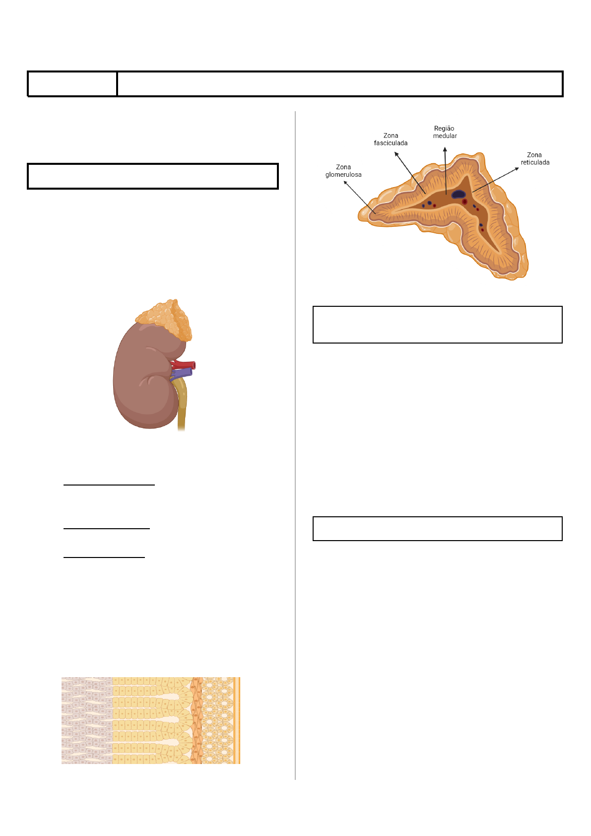FISIOLOGIA ANOTAÇÕES - M3 ADRENAL INTRODUÇÃO A glândula adrenal é localizada em cima do rins, formando uma espécie de capuz, por isso também chamada de suprarrenal. É revestida por uma cápsula de conjuntivo e dividida em córtex e medula adrenal. CÓRTEX DA ADRENAL: - Zona glomerulosa: camada mais externa. Produz mineralocorticóides, como a aldosterona. - Zona fasciculada: produz glicocorticóides, como o cortisol. - Zona reticulada: sua função é produzir androgênios, como a DHEA. MEDULA DA ADRENAL: - Formada pelas células cromafins. - A principal função dessas células é secretar as catecolaminas - adrenalina (epinefrina) e a noradrenalina (norepinefrina). REGULAÇÃO DA SECREÇÃO DOS GLICOCORTICÓIDES E ANDRÓGENOS 1. CONTROLE HIPOTALÂMICO: os núcleos paraventriculares mandam CRH no sistema porta hipofisário. 2. CONTROLE PELO ACTH: o ACTH estimula a secreção dos hormônios esteróides, em todas as zonas do córtex adrenal e suprarregula seus receptores. 3. CONTROLE POR RETROALIMENTAÇÃO NEGATIVA: inibição da secreção de CRH pelo hipotálamo e do ACTH, pela hipófise. SÍNTESE DE ACTH A PARTIR DO POMC 1. O CRH se liga a receptores nos corticotrofos da adeno-hipófise, o que acarreta na síntese de pró-opiomelanocortina (POMC), que é o precursor de ACTH, que faz a secreção desse. 2. A partir da POMC é produzido também o MSH, que possui três formas (alfa, beta e gama). 3. Esse MSH atua sobre os melanócitos, o que acarreta na produção de melanina. Desse modo, quando tenho muito ACTH sendo produzido, um dos primeiros sinais serão hiperpigmentação cutânea. Ademais, esse MSH aumenta durante a gravidades (junto com o aumento dos estrógenos) e na Síndrome de Cushing (característica da acantose nigricans). PATOLOGIA ENDÓCRINA PRIMÁRIA: patologia na glândula específica em si. PATOLOGIA ENDÓCRINA SECUNDÁRIA: patologia na hipófise. PATOLOGIA ENDÓCRINA TERCIÁRIA: patologia no hipotálamo. BIOSSÍNTESE DOS HORMÔNIOS Todos os hormônios do córtex da adrenal são esteróides - produzidos a partir do colesterol. FATORES QUE ALTERAM A SECREÇÃO DE ACTH: ~estimulatórios: - Diminuição dos níveis séricos de cortisol. - Transição entre sono e acordar. - Estresse, hipoglicemia, cirurgia, trauma. - Distúrbios psiquiátricos. - Agonistas alfa adrenérgicos. - Antagonistas beta adrenérgicos. - Serotonina. ~inibitórios: - Aumento do cortisol. - Opióides. - Somatostatina. ALDOSTERONA Seu receptor é intracelular e o órgão alvo é o rim. SECREÇÃO DE ALDOSTERONA: ~estímulos: - A produção de aldosterona é promovida principalmente pela angiotensina II. - Menos volume plasmático e PA faz aumentar renina. - Diminuição da osmolaridade plasmática. - Hiperpotassemia. ~excesso: retenção de água e Na. SISTEMA RENINA-ANGIOTENSINA-ALDOSTERONA 1. O fígado produz angiotensinogênio (proteína inativa) e, quando perco volume de sangue, as células granulares do rim produzem renina. 2. Transforma o angiotensinogênio em angiotensina I (inativa) e o endotélio dos vasos sanguíneos pulmonar produz ECA (enzima conversora de angiotensina). Débito cardíaco: volume sistólico (70mL, que depende de volemia) X frequência cardíaca. Débito cardíaco médio: 5L PA: débito cardíaco X resistencia vascular periférica (20 mmHg) Minha volemia depende de: grau de hidratação, concentração do sangue. Aldosterona faz com o que rim guarde muito sódio, o que faz eu guardar água , o que faz aumentar a volemia. A angiotensina II aumenta a aldosterona, aumenta a vasoconstrição de arteríolas (aumenta resistência e aumenta pressão), aumenta a resposta cardíaca (aumenta frequência, aumenta débito) e no hipotálamo faz com que eu tenha sede e aumenta o ADH. Portanto, é um mecanismo que AUMENTA A PRESSÃO ARTERIAL. - Medicamentos para abaixar pressão: dieta hipossódica, vasodilatador, diurético, bloqueadores β-adrenérgicos, inibidor ECA. RECEPTORES DE ANGIOTENSINA: - Tipo 1: induz a vasoconstrição, anti-natriurese (excreção de sódio), antidiurese liberação de vasopressina e aldosterona, fibrose e proliferação celular. - Tipo 2: contrabalança esses esses efeitos. EFEITOS DA ALDOSTERONA: - Aumenta a reabsorção de sódio nos rins, à custo da secreção de potássio. - Aumenta a secreção de potássio e hidrogênio nos túbulos renais. Esse aumento do sódio, faz, por consequência, como explicado uma retenção de líquidos. Os inibidores de ECA causam tosse seca por que as bradicininas são normalmente degradadas pela ECA. CORTISOL Hormônio sintetizado a partir do colesterol, com receptores intracelular e células alvos na maioria dos tecidos, produzido na zona fasciculada. ESTÍMULOS PARA A SECREÇÃO: - Ritmo circadiano (mais alto pela manhã e menor à noite). - Aumenta com estresse. - Exercício físico. - Sono. REGULAÇÃO DA SECREÇÃO: - CRH: estimula adeno hipófise a produzir ACTH. - Retroalimentação. A dexametasona em dose altas inibe a produção de ACTH, por isso é um teste para ver se o problema é hipofisário-hipotalâmico. FUNÇÕES: O efeito mais importante é prevenir a hipoglicemia, assegurando a atividade do glucagon. - O cortisol AUMENTA MUITO A GLICEMIA, estimula lipólise, induz gliconeogênese e reprime o sistema imune. - Diminui a síntese proteica e causa proteólise. - Diminui a sensibilidade de insulina, e por consequência aumenta resistência. - Estimula diferenciação dos adipócitos. Efeito anti-inflamatório: Inflamação é uma resposta de defesa, que prepara tecido para reparo e inibe a ação antigênica. Os corticóides são cortisol sintético, com função anti-inflamatório, podendo ter muito mais efeito que o cortisol próprio. A resposta inflamatória aguda é a desejada, e não quero ter a crônica, pois não consegue inibir o patógeno. REAÇÕES VASCULARES: - Vasodilatação: abre fendas para a saída de soro - exsudato. - Aumento da permeabilidade. EVENTOS CELULARES: - Marginação. - 