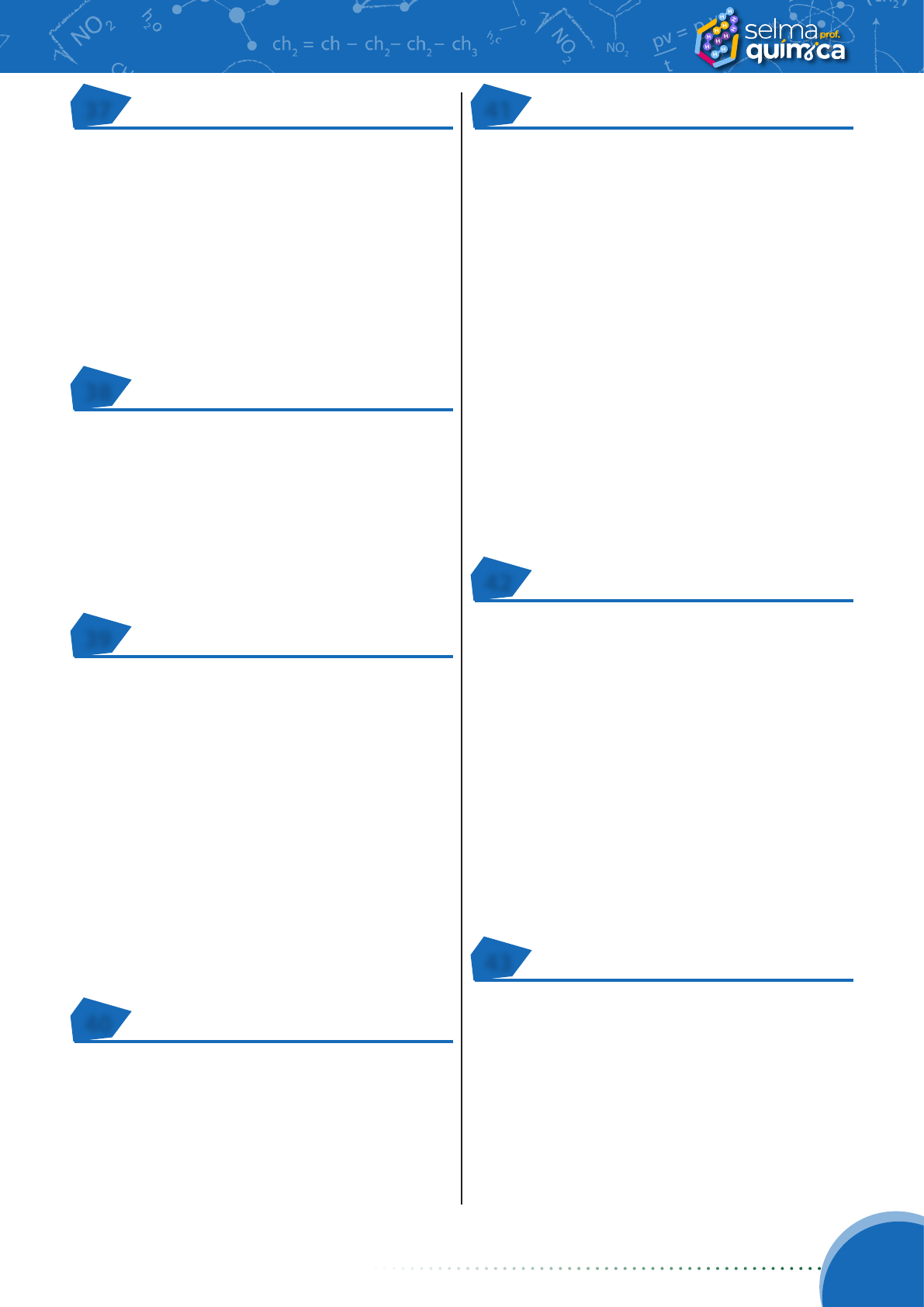" M e u f o co é a t u a a p rova ç ã o ! "" M e u f o co é a t u a a p rova ç ã o ! " 3737 37 (FMC 2021) Sobre os gases A, B e C, sabe-se que: -O gás A é o principal responsável pelo efeito estufa. -O gás B é indesejável na baixa atmosfera por ser poluente, mas é indispensável na alta atmosfera para filtrar os raios ultravioleta provenientes do sol. -O gás C, é usado, entre outras aplicações, na fabricação de produtos de limpeza doméstica. Os gases A, B e C, respectivamente, são: A CO2, O3 e NH3 B NH3, O3 e CO2 C O3, CO2 e NO2 D NO2, O3 e CO2 E H2S, NO e NH3 38 (UNIOESTE 2021) As substâncias químicas podem ser representadas por fórmulas. Desta maneira, as fórmulas das substâncias químicas cloreto de potássio, hidróxido de cálcio, ácido clorídrico e dióxido de carbono são respectivamente: A PC3, Ca(OH)2, HC e CO2. B KC, Ca(OH)2, HCN e CO. C KC e Ca(OH)2, HC e CO2. D PtC2, Ca(OH)3, HC e CO2. E KC CaOH, HC O e C2O. 39 (UEG 2021) O hidróxido de alumínio é um composto com várias aplicações biomédicas, tais como: antiácido gástrico, antiperspirante, creme dental, emulsificante, adjuvante em bacterinas e vacinas e na purificação de água. Disponível em: pubchem.ncbi.nlm.nih.gov/compound/6328211. Acesso em: 3 nov. 2020. Como antiácido, o hidróxido de alumínio reage neutralizando o ácido clorídrico estomacal, produzindo cloreto de alumínio e água, aumentando o pH e aliviando os sintomas da hiperacidez gástrica. A equação química que representa a ação do hidróxido de alumínio como antiácido é dada por: A Al(OH)3(s) + 3 HNO3(aq) → Al(NO3)3(aq) + 3 H2O(l) B Al2O3(s)+ 6 HNO3(aq) →2 Al (NO3)3(aq) + 3 H2O(l) C Al(OH)3(s) + 3 HF(aq) → Al F3(aq)+ 3 H2O(l) D Al2O3(s) + 3 HCl(aq) → AlCl3(aq) + 3 H2O(l) E Al(OH)3(s) + 3 HCl(aq) → AlCl3(aq) + 3 H2O(l) 40 (UNISC 2021) A hiperacidez gástrica pode ser precursora de alguns desconfortos como a pirose (sensação de ardência e queimação no esôfago). Em caso mais extremo pode estar associada à úlcera gástrica. Para combater esse problema poderíamos empregar um antiácido à base de cátion trivalente tendo como princípio ativo o A hidróxido de sódio. B ácido carbônico. C hidróxido de alumínio. D suco de limão. E hidróxido de amônio. 41 (UFJF-PISM 2 2021) A atmosfera de nosso planeta é composta basicamente por gases como N2(g), O2(g) e CO2(g) e até por vapor d'água. Porém, em regiões de alta atividade urbana, há o lançamento de grandes quantidades de outros gases como CO(g), SO2(g), SO3(g), NO(g) e NO2(g). A água da chuva pode reagir com vários desses gases e os produtos dessas reações são compostos ácidos. Sobre a acidez da água da chuva nos centros urbanos, é CORRETO afirmar que: A os óxidos de enxofre (SO2 e SO3) e de nitrogênio (NO e NO2) não reagem com a água. B a acidez se deve à reação da água com os gases N2 e O2. C o pH da água da chuva é neutro, pois a água não reage com óxidos. D a acidez é devido à reação da água com óxidos de enxofre (SO2 e SO3) e de nitrogênio (NO e NO2), que formam ácidos fortes. E os ácidos formados a partir da reação entre a água e óxidos de enxofre (SO2 e SO3) e de nitrogênio (NO e NO2) são fracos e se decompõem facilmente. 42 (ENEM PPL 2021) O ácido sulfúrico (H2SO4) é um dos ácidos mais utilizados em indústrias e em laboratórios. O resíduo ácido gerado pelo seu uso pode provocar sérios danos ao meio ambiente. Em um laboratório, gerou-se uma grande quantidade de resíduo ácido a partir do ácido sulfúrico, o qual necessita ser neutralizado para o seu descarte. O técnico desse laboratório tem à sua disposição cinco substâncias: CaO, K2SO4, NaHSO4, CH3CH2OH e C5H9CONH2. Qual dessas substâncias é a adequada para realizar esse tratamento? A CaO B K2SO4 C NaHSO4 D CH3CH2OH E C5H9CONH2. 43 (UNISC 2021) Os sais são uma categoria de compostos com vasto campo de aplicação. Uma das maneiras de sintetizar um sal é a reação química entre um ácido e uma base. Analise as alternativas e aponte a que apresenta o sal obtido através de uma reação entre ácido sulfuroso e hidróxido de potássio. A K2SO4 B P2SO3 C K2S D P2SO4 E K2SO3 " M e u f o co é a t u a a p rova ç ã o ! "" M e u f o co é a t u a a p rova ç ã o ! " 3838 44 (UFPR 2021) Apesar de o NH4NO3 ser um composto de grande periculosidade pelo risco de causar explosões catastróficas, ele é empregado em grande escala como fertilizante, pois tem alta proporção de nitrogênio em sua composição. Um dos processos industriais para a sua produção envolve a seguinte reação química: Ca(NO3)2(aq) + 2 NH3(g) + CO2(g) + H2O(l) → 2 NH4NO3(aq) + CaCO3(s) Conforme apresentado pela equação acima, além do produto desejado, forma-se um subproduto insolúvel que pode ser removido posteriormente. Qual é o nome recomendado pela IUPAC (União Internacional de Química Pura e Aplicada) desse subproduto? A Carbonato de amônio. B Carbonato de cálcio. C Nitrito de amônio. D Nitrato de cálcio. E Nitrito de cálcio. 45 (UNISC 2021) Tradicionalmente, os estudantes aprendem, no decorrer do ensino fundamental ou médio, as funções inorgânicas – ácidos, bases, sais e óxidos –, mais especificamente suas formulações e nomenclaturas. I. NaHCO3 II. NH4OH III. Al2O3 IV. KMnO4 V. H2SO3 Assinale a alternativa que indica corretamente as funções das substâncias acima. A Ácido, base, sal, sal e ácido. B Sal, base, óxido, óxido e ácido. C Sal, base, óxido, sal, ácido. D Sal, base, óxido, base e ácido. E Base, base, óxido, sal e óxido. 46 (ALBERT EINSTEIN - MEDICINA 2021) Em uma bancada de um laboratório estavam dispostos cinco tubos de ensaio, cada um deles contendo iguais quantidades de uma substância sólida específica, conforme indica o quadro. Tubos Substâncias 1 Na2S 2 Na2SO4 3 Na3PO4 4 CaSO4 5 Ca3(BO3)2 Após a adição de certo volume de solução de ácido clorídrico nos cinco tubos, houve produção d