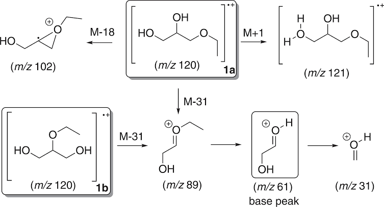 OH + H OH M-18 HO M+1 HO H (m/z 102) (m/z 120) 1a (m/z 121) M-31 + + H M-31 + H HO OH OH OH (m/z 120) 1b (m/z 89) (m/z 61) (m/z 31) base peak