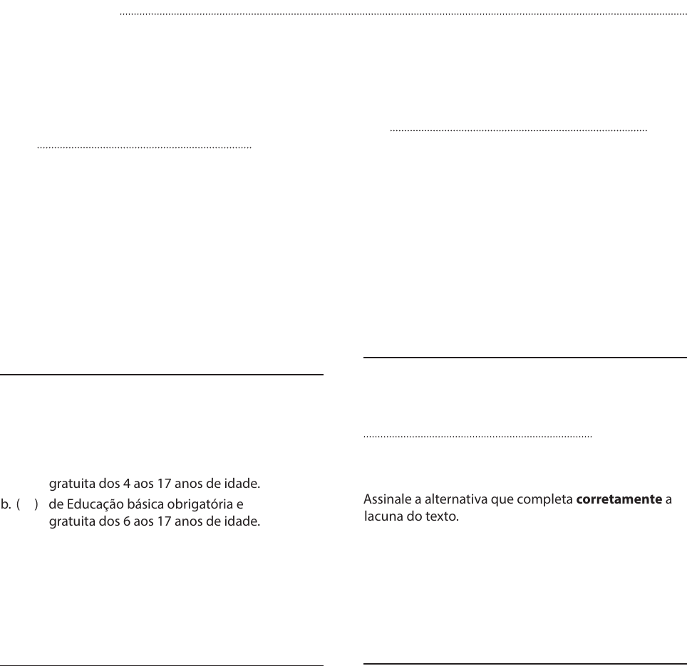 www.pciconcursos.com.br Página 4 Prefeitura Municipal de São José P22 Professor: Química 8. Analise o texto abaixo: Ao tratar dos aspectos que envolvem o processo de aprendizagem, Vigotski apresenta a ideia de que é a distância entre o nível de desenvolvimento real e o nível de desenvolvimento potencial. Assinale a alternativa que completa corretamente a lacuna do texto. a. ( ) a semiótica b. ( ) a representação simbólica c. ( X ) a zona de desenvolvimento proximal d. ( ) o desenvolvimento espontâneo e. ( ) a mediação docente 9. Analise o texto abaixo: O planejamento docente pautado na perspectiva privilegia a participação ativa dos estudantes no processo de pesquisa e apreensão dos conteúdos escolares. Assinale a alternativa que completa corretamente a lacuna do texto. a. ( ) tecnicista b. ( X ) dos projetos de trabalho c. ( ) das listagens de atividades d. ( ) das datas comemorativas e. ( ) disciplinar 10. No que diz respeito às discussões que abarcam o planejamento docente, compreende-se que uma sequência didática (SD) pode ser definida como: a. ( ) Uma lista de atividades que podem ser reali- zadas uma independentemente da outra. b. ( ) Um documento burocrático que serve somente para o controle da direção escolar. c. ( ) Uma estratégia de planejamento que pode ser utilizada somente na área da língua portuguesa. d. ( ) Uma estratégia de planejamento que pode ser utilizada somente na educação infantil. e. ( X ) Uma sucessão planejada de atividades pro- gressivas e articuladas entre si, guiadas por um tema, um objetivo geral, uma problemá- tica ou uma produção. 5. Analise o texto abaixo: Com relação a teoria pedagógica, a Proposta Curricular da Rede Municipal de Ensino de São José, sinaliza que, dentre as mais distintas teorias, a peda- gogia favorece a compreensão do trabalho educativo e aponta possibi- lidades de transformação. Assinale a alternativa que completa corretamente a lacuna do texto. a. ( ) liberal b. ( ) holística c. ( ) tecnicista d. ( ) tradicional e. ( X ) histórico-crítica 6. Consta no artigo 4º da Lei de Diretrizes e Bases da Educação Nacional que o dever do Estado com educa- ção escolar pública será efetivado mediante a garantia: a. ( X ) de Educação básica obrigatória e gratuita dos 4 aos 17 anos de idade. b. ( ) de Educação básica obrigatória e gratuita dos 6 aos 17 anos de idade. c. ( ) de Ensino fundamental obrigatório e gratuito dos 6 aos 17 anos de idade. d. ( ) de Educação básica obrigatória e gratuita dos 6 aos 14 anos de idade. e. ( ) de Ensino fundamental obrigatório e gratuito dos 7 aos 14 anos de idade. 7. A Lei de Diretrizes e Bases da Educação Nacional prevê que o ensino da História do Brasil levará em conta: a. ( ) Os conteúdos provenientes das culturas indí- genas e africana. b. ( ) As discussões realizadas no âmbito dos Conselhos Municipais de Educação. c. ( ) As definições curriculares no Ministério da Educação. d. ( X ) As contribuições das diferentes culturas e etnias para a formação do povo brasileiro, especialmente das matrizes indígena, africana e europeia. e. ( ) As contribuições das diferentes culturas e etnias para a formação do povo brasileiro, de maneira especial das matrizes europeias. www.pciconcursos.com.br Página 5 Prefeitura Municipal de São José P22 Professor: Química 11. Identifique abaixo as afirmativas verdadeiras ( V ) e as falsas ( F ). ( ) O cientista Ernest Rutherford propôs, em 1911, o modelo de átomo com movimentos plane- tários. Esse modelo foi estudado e aperfeiço- ado por Niels Bohr que formulou um novo modelo atômico, concluindo que o elétron do átomo emitia radiações enquanto permane- cesse na mesma órbita. ( ) O filósofo grego Demócrito (400 a.C.), consi- derado o pai do atomismo grego, expressou no século V a.C. a crença de que toda matéria consistia em partículas, muito pequenas e divisíveis, às quais ele chamou de átomos. ( ) O professor inglês John Dalton formulou, em 1808, a teoria do modelo atômico na qual o átomo é uma minúscula esfera maciça, indivi- sível, impenetrável, indestrutível, e sem carga. Afirmava ainda que todos os átomos de um mesmo elemento químico são idênticos. Esse modelo atômico foi chamado de modelo atômico da bola de bilhar. ( ) Em 1897, Joseph John Thomson apresentou a teoria segundo a qual a matéria contém par- tículas de massa muito menores que o átomo do hidrogênio. Ele apresentou um modelo de átomo como uma bolha de material gelati- noso com carga positiva e elétrons suspensos nela, como passas de pudim. Este modelo ficou conhecido como pudim de passas. Assinale a alternativa que indica a sequência correta, de cima para baixo. a. ( ) V • V • V • V b. ( ) V • V • F • V c. ( ) V • F • V • F d. ( X ) F • F • V • V e. ( ) F • F • V • F Conhecimentos Específicos (20 questões) 12. A tabela periódica está construída com base na distribuição eletrônica da última camada dos elemen- tos. Os gases nobres, halogênios e os alcalinos terro- sos são caracterizados, em seus estados fundamen- tais, através das seguintes distribuições eletrônicas, respectivamente: a. ( ) ns2np3 • ns2np4 • ns1 b. ( ) ns2np4 • ns2 • ns2np5 c. ( ) ns2np5 • ns2np4 • ns2 d. ( ) ns2np5 • ns2np6 • ns1 e. ( X ) ns2np6 • ns2np5 • ns2 13. Um elemento químico pode ser identificado na tabela periódica através do seu número atômico. O número atômico do elemento significa: a. ( ) a soma do número de nêutrons e prótons do elemento neutro. b. ( ) a soma do número de elétrons e prótons do elemento neutro. c. ( X ) o número de elétrons do elemento neutro. d. ( ) a soma do número de prótons e nêutrons do cátion que perdeu um elétron. e. ( ) o número de prótons do ânion que perdeu dois elétrons. 14. Consta do rótulo do frasco de uma solução aquosa de fosfato de sódio, Na3PO4, que sua concentração é de 4,72% em 