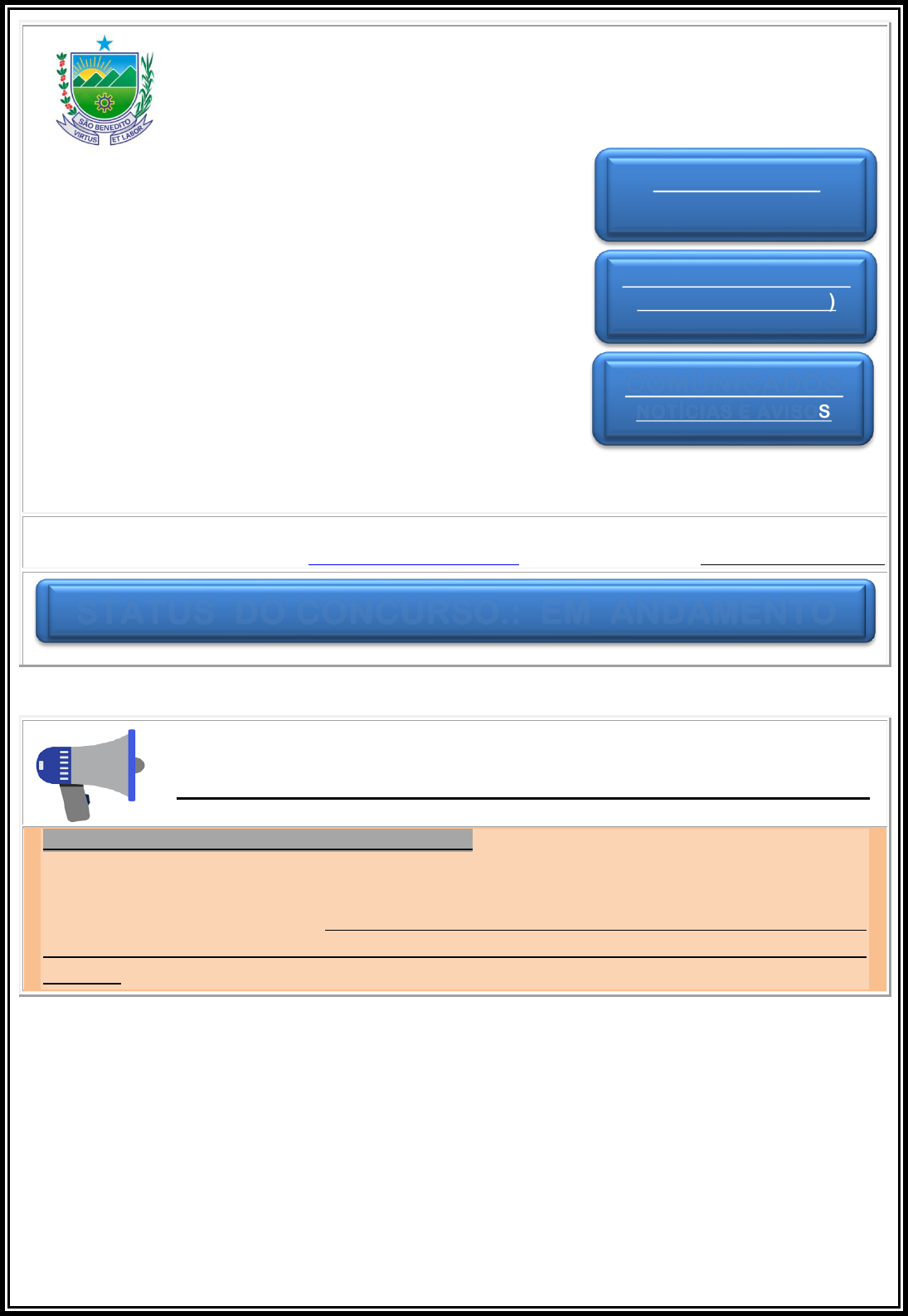1/3 Concurso Público da Prefeitura Municipal de São Benedito - CE A Fundação de Apoio à Cultura, à Pesquisa e ao Desenvolvimento Institucional, Científico e Tecnológico - Fundação CETREDE, instituição vinculada à Universidade Federal do Ceará - UFC, empenha, mais uma vez, sua responsabilidade e tradição, bem assim a reconhecida competência de seus profissionais para organizar e executar o Concurso Público destinado ao Provimento de Cargos Efetivos do Quadro de Pessoal e Formação de Cadastro Reserva da Prefeitura Municipal de São Benedito - CE. Exercitando a lisura e transparência, que devem presidir certames dessa natureza, a Fundação CETREDE disponibiliza ampla estrutura de apoio para prestar informações aos candidatos, atento ao que determina a legislação pertinente e o próprio Edital do Concurso. Assim, coloca à disposição dos interessados os seguintes meios de comunicação: SAC – Serviço de Atendimento ao Candidato Telefone: (85) 4042-8430 / Site: www.fundacaocetrede.ufc.br / E-mail: concurso085@fundacaocetrede.ufc.br ÚLTIMOS COMUNICADOS / AVISOS 12-12-2023 – COMUNICADO EM 12-12-2023 – Recomendamos que nos dois primeiros dias do período de inscrição os candidatos leiam o Edital e seus anexos para que possam ter certeza do cargo que irão escolher. Somente após ter certeza do cargo escolhido é que deverão fazer a sua inscrição. LEMBRE-SE UMA VEZ EFETUADA A INSCRIÇÃO PARA UM DETERMINADO CARGO NÃO SERÁ MAIS POSSÍVEL ALTERAR PARA OUTRO CARGO. COMUNICADOS NOTÍCIAS E AVISOS STATUS DO CONCURSO.: EM ANDAMENTO Clique aqui e INSCREVA-SE ÁREA DO CANDIDATO (Já estou INSCRITO) http://www.fundacaocetrede.ufc.br/ mailto:concurso212@cetrede.com.br http://concursos.angulodigital.com.br/concursos-fundacao-cetrede/ http://concursos.angulodigital.com.br/concursos-fundacao-cetrede/ http://concursos.angulodigital.com.br/concursos-fundacao-cetrede/ http://concursos.angulodigital.com.br/concursos-fundacao-cetrede/ 2/3 PREFEITURA MUNICIPAL DE SÃO BENEDITO CRONOGRAMA DA CONCURSO / PREVISÃO DAS ATIVIDADES (CRONOGRAMA SUJEITO A ALTERAÇÕES) Item EVENTOS Datas Previstas INÍCIO TÉRMINO 01 PUBLICAÇÃO DO EDITAL DO CONCURSO 08/12/23 02 PERÍODO DE INSCRIÇÕES PELA INTERNET 13/12/23 12/01/24 03 Recebimento Laudo Médico dos Candidatos Portadores de Deficiência 13/12/23 12/01/24 04 Recebimento Laudo Médico para Atendimento Especial 13/12/23 12/01/24 05 PERÍODO PARA SOLICITAÇÃO DE ISENÇÃO TAXA DE INSCRIÇÃO 18/12/23 19/12/23 06 PUBLICAÇÃO DAS ISENÇÕES DEFERIDAS 27/12/2023 07 Prazo para interposição de Recurso contra o Indeferimento de Isenção da Taxa de Inscrição 28/12/23 29/12/23 08 HOMOLOGAÇÃO DAS INSCRIÇÕES 17/01/2024 09 Prazo para interposição de Recurso contra Indeferimento da Inscrição 18/01/24 19/01/24 10 HOMOLOGAÇÃO DOS CANDIDATOS INSCRITOS COMO PESSOA COM DEFICIÊNCIA 17/01/2024 11 Prazo para interposição de Recurso contra o Indeferimento de Inscrição como Pessoa com Deficiência 18/01/24 19/01/24 12 HOMOLOGAÇÃO DOS CANDIDATOS COM ATENDIMENTO ESPECIAL DEFERIDO 17/01/2024 13 Prazo para interposição de Recurso Contra o Indeferimento de Atendimento Especial 18/01/24 19/01/24 14 DISPONIBILIZAÇÃO DOS CARTÕES DE INSCRIÇÃO NA INTERNET E DIVULGAÇÃO DA DATA, HORÁRIO E LOCAIS DE REALIZAÇÃO DAS PROVAS 15/02/2024 15 APLICAÇÃO DAS PROVAS OBJETIVAS E DISCURSIVA 18/02/2024 16 PUBLICAÇÃO DOS GABARITOS PRELIMINARES 21/02/2024 17 Prazo para interposição de Recursos contra os Gabaritos Preliminares 22/02/24 23/02/24 18 PUBLICAÇÃO DOS GABARITOS OFICIAIS/DEFINITIVOS 05/03/2024 19 PUBLICAÇÃO DO RESULTADO DAS PROVAS OBJETIVAS - NFPO 07/03/2024 20 PUBLICAÇÃO RESULTADO DA PROVA DISCURSIVA – NP3 15/03/2024 21 Prazo para interposição de Recurso contra o Resultado da Prova Discursiva 18/03/24 19/03/24 22 PUBLICAÇÃO DO EDITAL DA PROVA DE TÍTULOS – NP4 15/03/2024 23 Prazo para Entrega de Títulos 18/03/24 19/03/24 24 PUBLICAÇÃO DO RESULTADO DA PROVA DE TÍTULOS 27/03/2024 25 Prazo para interposição de Recursos contra o Resultado da Prova de Títulos 28/03/24 01/04/24 26 PUBLICAÇÃO DO RESULTADO DO CONCURSO – NFC (PRELIMINAR) 16/04/2024 HORÁRIO DAS PROVAS: Nível Superior Manhã – 08:00 às 12:00 Nível Médio e Fundamental – Tarde - 14:00 às 18:00 3/3 PUBLICAÇÕES REALIZADAS ACOMPANHE AQUI AS PUBLICAÇÕES SOBRE O CONCURSO Ao enviar RECURSO(S), via SEDEX, o comprovante de postagem serve como PROTOCOLO. Porém, se for entregá-lo(s) pessoalmente, imprima e preencha-o em duas vias e, solicite que a segunda via lhe seja devolvida PROTOCOLADA Formulário para Solicitações e Recursos Diversos – Edital, Anexos e Aditivos, Isenção da Taxa de Inscrição, Inscrições Homologadas, Atendimento Especial, Prova de Títulos, Outros Recursos (exceto para Recursos contra os Gabaritos Preliminares) - baixe aqui ➢ Formulário para Solicitação de Atendimento Especial - baixe aqui ➢ Formulário para Requerimento de Isenção da Taxa de Inscrição - baixe aqui EDITAL, ANEXOS E ADITIVOS O Edital é a lei que rege o processo seletivo e dita os direitos e os deveres tanto da ORGANIZADORA quanto dos participantes. Pelo Edital, é possível conhecer as formas de inscrição, os tipos de avaliações aplicadas, os critérios de classificação e o prazo para recursos. ➢ Edital do Concurso - baixe aqui ➢ Anexo I - Relação dos Cargos, Salários e Pré-Requisitos - baixe aqui ➢ Anexo II - Conteúdo Programático - baixe aqui ➢ Anexo III - (específico para os cargo de Guarda Municipal) - baixe aqui ➢ Anexo IV – Atribuições dos Cargos - baixe aqui COMUNICADOS, NOTÍCIAS E AVISOS A Fundação CETREDE não se responsabiliza por quaisquer cursos, textos e apostilas referentes a este Concurso, que não sejam publicados/divulgados neste site, na página do Concurso. A Organizadora somente responderá e-mails nos quais o candidato informe nome, nº de inscrição e CPF http://www.cetredeneoconcursos.co