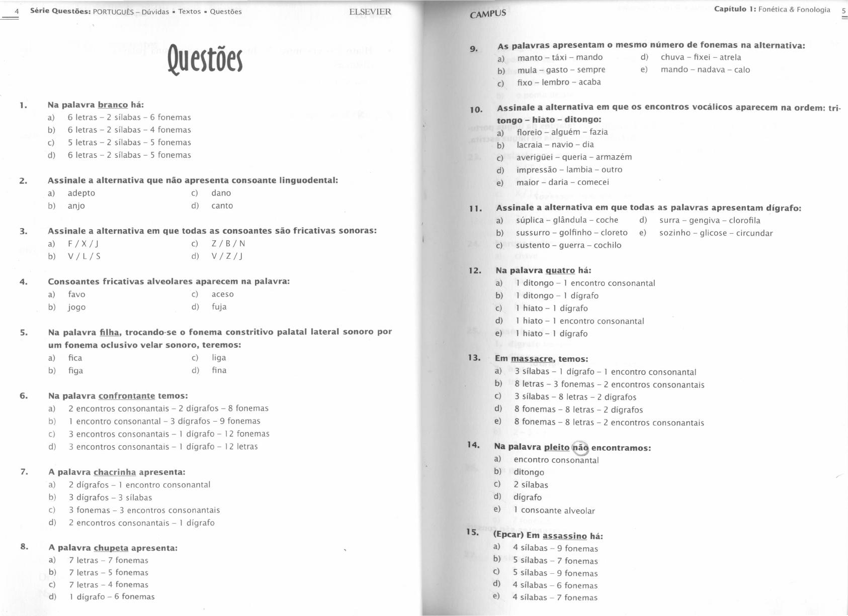 ELSEVIER Capitulo 1: Fonética & Fonologia 54 Série Questões: PORTUGUÊS - Dúvidas. Textos. Questões