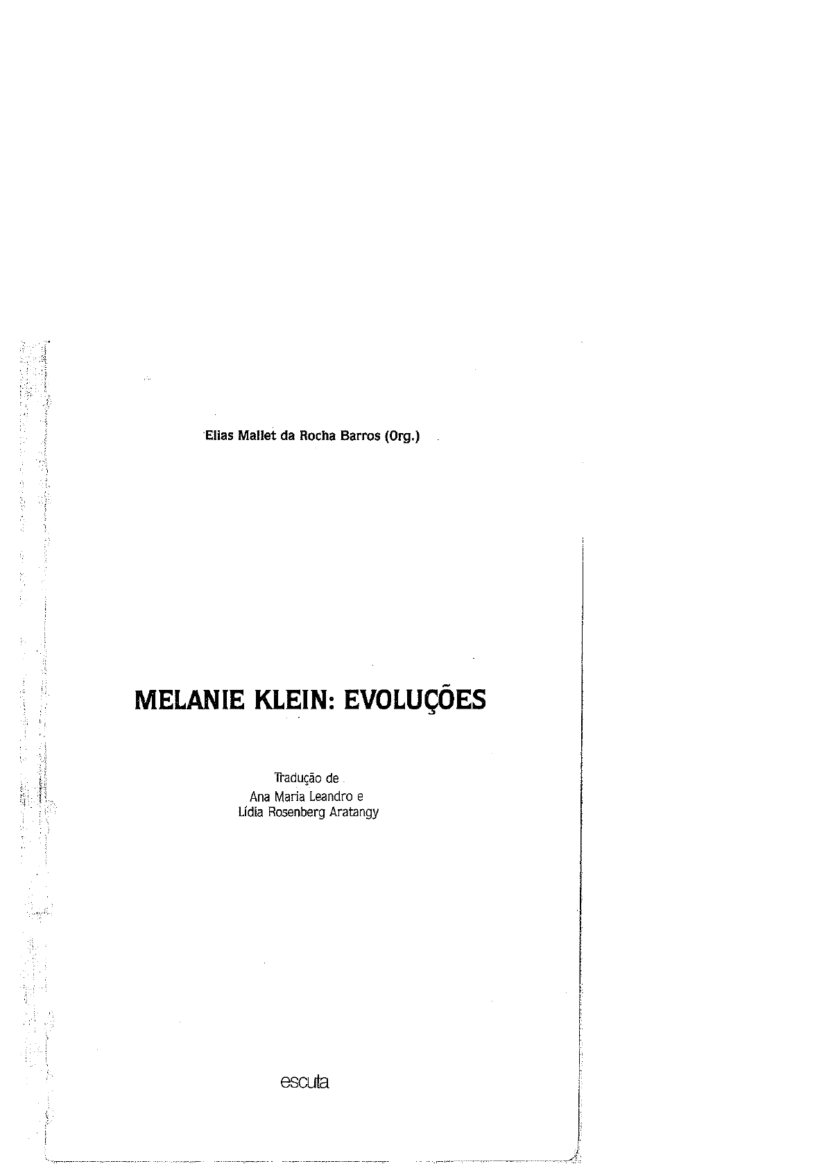 Elias Mallet da Rocha Barros (Org.) MELANIE KLEIN: EVOLUÇÕES Tradução de Ana Maria Leandro e Lídia Rosenberg Aratangy escutaIntrodução Elias Mallet da Rocha Barros * Elizabeth Lima da Rocha Barros *Ao publicar este livro tomando por base uma série de artigos de analistas membros do grupo kleiniano da Socie- dade Britânica de Psicanálise, busca-se trazer ao leitor o ti- po de problemática de que se ocupam esses autores - as questões levantadas e as respostas por eles encontradas - como uma expressão atual da evolução do pensamento de Melanie Klein. Spillius (1983), em artigo incluído nesta coletânea, faz uma descrição bastante completa das principais linhas de desenvolvimento do pensamento kleiniano na Inglaterra. Posteriormente, em duas outras ocasiões (1988a, 1988b), ela aprofunda suas reflexões a este respeito. Procuraremos não repetir o que já foi dito por Spillius nestes artigos, bus- cando apenas complementar suas reflexões, embora sabendo que alguma repetição é inevitável. Ao ler esta coletânea, o leitor notará como alguns con- ceitos desenvolvidos por Melanie Klein foram mantidos pra- ticamente inalterados, outros foram aprofundados, mas co- mo o corpo básico de conceitos mantém uma grande unidade e integração. Este exemplo de coerência interna ilustra a * Membro efetivo da Sociedade Britânica de Psicanálise e da Sociedade Brasileira de Psicanálise de São Paulo. ** Membro efetivo da Sociedade de Psicanalista de Crianças pela Sociedade Britânica de Psicanálise, Psicoterapeuta de Crianças pela Tavistock Clinic, Membro Associado da Sociedade Brasileira de Psicanálise de São Paulo.12 MELANIE KLEIN: EVOLUÇÕES possibilidade de um desenvolvimento clínico e teórico basea- do numa coerência doutrinária, sem que a doutrina torne-se um dogma. Esta coerência doutrinária tem sido criticada como limitadora do desenvolvimento do pensamento analíti- co, por autores que propõem uma atitude mais eclética como resposta à estagnação teórica que consideram dominar o pensamento psicanalítico nos últimos anos. Acreditamos que o ecletismo não é a melhor resposta a uma estagnação teóri- ca, mas a sua causa, pois leva a uma deso- rientação teórica e a uma dissolução conceitual que favorece a proliferação de "ortodoxias" reasseguradoras ditas "he- terodóxicas" ou artificialmente "pluralistas". Nada temos contra uma atitude pluralista em psicanálise desde que esta não force integrações artificiais entre siste- mas de pensamento diferentes e, pelo contrário, que esteja aberta à compreensão desses e, assim, favoreça um diálogo frutífero entre profissionais de experiências clínicas e teóri- cas diversas. Entretanto, não podemos nos esquecer que qualquer integração de idéias novas num sistema com certa coerência interna demanda uma redefinição conceitual, seja do sistema, seja da idéia, de modo a tornar o todo nova- mente coerente. O que a diluição conceitual favorece, contu- do, é o aparecimento de textos sem consistência, nos quais certos conceitos fundamentais da psicanálise são transformados em simples palavras. Um exemplo disso são textos sobre o narcisismo, que é mencionado sem ser defini- do, para em seguida citar alguns pontos de vista isolados de, por exemplo, Freud, Kohut, Melanie Klein. Isto é feito como se estes três autores se referissem ao mesmo fenômeno, quando na verdade eles têm concepções diferentes. Qualquer ilação feita a partir de um conjunto de conceitos por diferentes auto- res, ainda que estes empreguem a mesma palavra, sem defini- ções prévias e uma compatibilização do nível de abstração uti- lizado por cada um dos autores envolvidos, é inválida. Maria Helena Salles (1989), comentando este problema em nosso meio, diz: Entre nós os conceitos são empregados isoladamente, separa- dos do corpo teórico a que pertencem. A meu ver, a ausência de um13 INTRODUÇÃO sistemático de cada escola, o uso de conceitos sem o exame de estudo sua ciados interrelação a desorientação diversa, leva asso- que a com outros deles decorrentes, freqüentemente outros conceitos de origem completamente uma debilidade conceitual. A é uma psicaná- dificulta discussões mais precisas dos pressupostos básicos da lise, e que no nível clínico, resulta em interpretações contraditórias. Decorrem sucessivas e estéreis mudanças de direção, que im- possibilitam a maturação dos conceitos e a exploração de sua possível descar- fecundidade, o que leva a considerá-los exauridos e, portanto, táveis. As tentativas de assimilação instantânea de idéias em trânsito, tomadas como promessas de novos rumos fecham um círculo vicioso. Esta diluição permanente da teoria psicanalítica, ou melhor, amis- desa- tura de fragmentos de teorias de várias escolas, geram um enorme à im- lento, um estado de espirito de esperanças traídas, campo propício posição de dogmatismos reasseguradores ou então ao desejo de ruptura. Esta introdução e este conjunto de artigos têm por objeti- estimular a discussão entre analistas de diversas orienta- ções com base numa explicitação do trabalho clínico e teórico desenvolvido hoje pelos analistas formados dentro de uma orientação inspirada nas obras de Freud e, principalmente, nas de Melanie Klein. Paralelamente ao objetivo de traçar algumas linhas de evolução das idéias kleinianas, gostaríamos de examinar falar o grau de especificidade destas idéias. Será que podemos uma "Escola Kleiniana"? Ou podemos apenas nos limitar de a dizer que existe uma teoria e uma técnica kleiniana? Sendo kleiniano deixa-se de ser freudiano? Para responder esta questão, julgamos ser útil examinar o alguns aspectos da formação analítica na Inglaterra com está intuito de procurar deduzir, a partir da maneira como esta organizada, a idéia que o grupo kleiniano tem de sua identi- dade psicanalítica, numa sociedade de orientação teórica e clínica p
