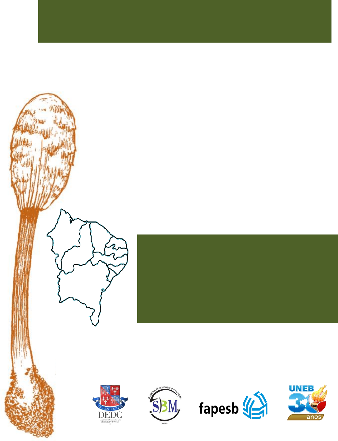 II ENCONTRO DE BIOLOGIA DA UNEB- CAMPUS VII I SIMPÓSIO MICOLÓGICO DO SEMIÁRIDO 27, 28, 29, 30 e 31 de Agosto Auditório da Universidade do Estado da Bahia (UNEB) – Campus VII – Senhor do Bonfim-BA ANAIS Micologia no Nordeste: estudos e experiências UNIVERSIDADE DO ESTADO DA BAHIA DEPARTAMENTO DE EDUCAÇÃO – CAMPUS VII SENHOR DO BONFIM-BA Prof. Lourisvaldo Valentim da Silva Reitor Profa. Adriana dos Santos Marmori Lima Vice-Reitora Prof. Antonio Amorim Pró-Reitor de ensino de Graduação Profa. Manuela Barreto de Araújo Pró-Reitora de Extensão Prof. José Cláudio Rocha Pró-Reitor de Pesquisa e Ensino de Pós-Graduação Profa. Norma Leite Martins de Carvalho Diretora do Departamento de Educação – Campus VII Prof. Ozelito Souza Cruz Coordenador do Núcleo de Pesquisa e Extensão- Campus VII Prof. Marcos Fabio Oliveira Marques Coordenador do Curso de Ciências Biológicas- Campus VII Coordenador do evento ELABORAÇÃO: Marcos Fabio Oliveira Marques Dioneis Rodrigues FICHA CATALOGRÁFICA Sistema de Bibliotecas da UNEB Os autores são responsáveis pelo conteúdo e estilo dos resumos. As informações existentes no texto são de inteira responsabilidade do autor. Anais [do] Encontro de Biologia da UNEB Campus VII (2: 2013: Senhor do Bonfim) I Simpósio Micológico do Semiárido: Micologia no Nordeste: estudos e experiências._ Senhor do Bonfim, 2013. 42 p.: il.; Contém referências. 1. Micologia – Nordeste (Brasil). I. Marques, Marcos Fábio Oliveira. II. Universidade do Estado da Bahia, Departamento de Educação – Campus VII. III. Fundação de Amparo à Pesquisa do Estado da Bahia. CDD: 616.96901 COMISSÃO ORGANIZADORA Profº Marcos Fabio Oliveira Marques Coordenador geral Profa.Thais Teixeira Rios (UNIVASF) Prof. Gervásio Paulo da Silva (UNEB) Prof. Edemir Barbosa dos Santos (UNIVASF) Diego Palmeira da Silva (UFBA) Anderson Vilas Boas (UNEB) Airan Falcão Lima Salgado (UNEB) Dioneis Rodrigues Cardoso da Silva (UNEB) Fabiana Durval de Oliveira (UNEB) Laise Santos Santa Luzia (UNEB) Lucas Barbosa Conceição (UNEB) Noemia Santos Batista (UNEB) Patrícia Martins Galvão Palha (UNEB) APRESENTAÇÃO O II Encontro de Biologia da UNEB – Campus VII e o I Simpósio Micológico do semiárido têm como estratégia mobilizar docentes, pesquisadores e estudantes interessados em discutir questões atuais no campo micológico. Com o tema Micologia no Nordeste: estudos e experiências criou-se a oportunidade de divulgar e debater os resultados e experiências da pesquisa micológica no Nordeste. Diante disso, têm-se como objetivos para esse evento: Realizar discussões sobre os estudos micológicos no Nordeste do país; Socializar as experiências e os estudos micológicos no Nordeste; Criar espaços de trocas de experiências entre os pesquisadores, estudantes e apreciadores da micologia; Debater os avanços e perspectivas da micologia no Brasil. Desejamos a todos os participantes um excelente e proveitoso evento. Sejam bem-vindos a Universidade do Estado da Bahia – Campus VII. A Comissão Organizadora 1 PROGRAMAÇÃO GERAL 27/08 MANHÃ CREDENCIAMENTO Horário: 8:00 -12:00 Local: Salão em frente ao Auditório da UNEB 8:00 -12:00 Minicurso Identificação de fungos anamorfos: uma visão geral Dr. Alisson Cardoso Rodrigues da Cruz (UFBA) Local: Laboratório Didático de Botânica Mixobiota de Floresta Atlântica e Caatinga Dra Andrea Carla Caldas Bezerra (UFPE) Dr Inaldo do Nascimento Ferreira (UFPE) Local: Laboratório de Microscopia (Centro de Estudos de Saúde do Semiárido) Diversidade e prospecção da atividade enzimática de Ascomycota Dra Micheline Lins Silvério (UNIVASF) Local: Laboratório Didático de Microbiologia Micologia para o ensino Fundamental e Médio Dr Marcos Fabio Oliveira Marques (UNEB) Local: Auditório da UNEB TARDE 14:00 -18:00 Minicurso Continuação Identificação de fungos anamorfos: uma visão geral Mixobiota de Floresta Atlântica e Caatinga Diversidade e prospecção da atividade enzimática de Ascomycota Micologia para o ensino Fundamental e Médio NOITE ABERTURA OFICIAL Horário: 20:00-20:30 PALESTRA DE ABERTURA 20:30 Micologia no Nordeste: estudos e experiências PhD José Luiz Bezerra (UESC/ SBMY) Coordenação: Thais Teixeira Rios (UNIVASF) Local: Auditório da Universidade Federal do Vale do São Francisco- Campus Senhor do Bonfim 2 28/08 MANHÃ 9:00 - 10:15 Palestra: Glomeromycota e suas endobactérias: mutualismo ou parasitismo, eis a questão Dr Gladstone Alves da Silva (UFPE) Coordenação: Marileide Dias Saba (UNEB) Local: Auditório da UNEB – Campus VII 10:15 - 10:30 Intervalo 10:30 – 11:30 Palestra: INCT - Herbário Virtual da Flora e dos Fungos: projetos e ações Dra Mariane de Sousa-Baena (CRIA) Coordenação: Marileide Dias Saba (UNEB) Local: Auditório da UNEB – Campus VII TARDE 14:30 – 15:30 Palestra: Coleções micológicas no Nordeste Dra Cristina Motta (UFPE) Coordenação: Thais Teixeira Rios (UNIVASF) Local: Auditório da UNEB – Campus VII 15:30 – 15:45 Intervalo 15:45 – 17:30 Mesa redonda: Fungos anamórficos no Nordeste do Brasil Dr Luis Fernando Pascholati Gusmão (UEFS) Dr Marcos Fabio Oliveira Marques (UNEB) Coordenação: Edemir Barbosa dos Santos (UNIVASF) Local: Auditório da UNEB – Campus VII 29/08 MANHÃ 8:00 – 10:00 Apresentação oral de trabalhos Ver programação na sessão comunicações orais página 06. Coordenação: Gervásio Paulo da Silva (UNEB) Local: Auditório da UNEB – Campus VII 10:00 – 10:15 Mostra Fotográfica 10:15 – 10:30 Intervalo 10:30 – 11:30 Palestra: Aspectos clínicos e diagnósticos de dermatofitoses Dr. Misael Silva Ferreira Costa (EBMSP/FAN) Coordenação: Diego Palmeira da Silva (UFBA) Local: Auditório da UNEB – Campus VII 3 14:00 – 15:00 Palestra: Identificação de espécies de fungos por código de barras de DNA Dr Aristóteles Góes-Neto (UEFS) Coordenação: Diego Palmeira da Silva (UFBA) Local: Auditório da UNEB – Campus VII 15:00 – 15
