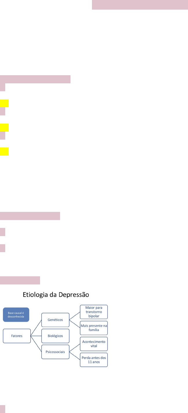 FARMACOLOGIA DO SNC - Nem sempre um medicamento que está em tal classe só serve pra aquilo especificamente ex: inibidores seletivos da recaptação de serotonina (fluoxicetina também serve como ansiolítico, para nevralgias e lombalgias) - Quando começar a tomar um antidepressivo? Quando perceber que a sensação que o paciente está sentindo faz com que não consiga ter sua rotina diária - Distúrbio afetivo = mexe com o humor do paciente TIPOS DE FÁRMACOS 1. Psicoléptico - abaixador (depressão do SNC) ex: convulsão 2. Psicoanaléptico (“ana sobe de elevador”) - elevador ex: depressão 3. Psicodisléptico (ele “dis” muita coisa e perturba) - perturbar (ora excita, ora deprime) ex: ansiedade e depressão (fluoxicetina, sertralina, citalopran) - normalmente acontece mais com a associação de medicamentos ex: sibutramina para emagrecer (antidepressivo, mas excita o SNC (excesso de NT) causando insônia. Para controlar usa um hipnótico que deprime o SNC, causando uma perturbação do SNC) Obs.: uso do álcool (até uma certa concentração ele excita, depois ele deprime) (antidepressivo + álcool = no começo pega carona na excitação do álcool e estimula, quando o álcool começa a a deprimir vai contra o antidepressivo, podendo causar uma depressão profunda no paciente) RELEMBRANDO… Mecanismos de ação 1. direto - age direto no receptor 2. indireto - mexe com a concentração Obs.: maioria não seletivo (efeitos adversos) DEPRESSÃO - Resultados em 3/4 semanas (depende do quão abaixo do normal os NT estão) - Efeito colateral já começa no primeiro medicamento (alguns pacientes deixam de tomar por estarem tendo efeitos e não resultados imediatos) Teorias da depressão 1. Neuroplasticidade e efeitos tróficos - Depressão se associa à perda neuronal no hipocampo e córtex pré-frontal Bruna Alencar - Antidepressivos atuariam por inibição ou reversão dessa perda (estimulando a neurogênese) 2. Neuroendócrina - A hiperfunção da corticotrofina, bem como a hipofunção das monoaminas (serotonina...) 3. Monoaminérgica - Mais aceita - Depressão resulta da diminuição patológica de monoaminas (serotonina, noradrenalina e/ou dopamina) Obs.: Déficits representam a depressão enquanto excesso representa mania Obs.: Aumento da dopamina pode causar psicose (podendo levar ao suicídio) (então os mecanismos de ação se baseiam, por tentativa, na serotonina e noradrenalina) Classes Obs: outros = geralmente tem algo distinto ou faz algo menor (lançados mais recentemente para diminuir principalmente os efeitos colaterais das classes “clássicas”) - Os mais prescritos são: imipramina, amitriptilina, fluoxicetina, paroxetina, sertralina, trazadona, mirtazapina e venlavaxina (como antidepressivos) Fisiopatologia e ação - Tenho neurônios pré (libera NT) e pós (tem receptores onde vão agir os NT) sinápticos - Para essa ação acabar o NT pode ser: degradado na fenda, voltar para o interior do neurônio, ser degradado pela MAO ou armazenado em novas vesículas - Na depressão precisa aumentar a ação dessas monoaminas, então, pode estimular o receptor, inibir a degradação e inibir a recaptação INIBIDORES DA RECAPTAÇÃO DE MONOAMINAS - Bloqueia o transportador da bomba de recaptação (NT fica mais tempo na fenda, estimulando por mais tempo seus receptores) (quando fica muito tempo ele pode ir para circulação tendo ação periférica e causando mais efeitos adversos) 1. Tricíclicos (ADTs) - Inibem transportadores de serotonina e noradrenalina - Muito efeito adverso (não é primeira escolha) - Como não é seletivo consegue bloquear outros receptores periféricos como: M1 efeitos anticolinérgicos (xerostomia, constipação, boca seca), H1 (sedação) e alfa 1 (hipotensão ortostática) ex: Clomipramina, imipramina, amitriptilina, nortriptilina, protriptilina e amoxapina Obs.: --- = REMANE (relação de medicamentos do SUS) - Como vão agir principalmente no SNC precisam ser lipossolúveis (bem absorvidos via oral) - Também precisam ter alta ligação com proteínas plasmáticas (acima de 90%) Obs.: Clomipramina - a que tem a maior taxa de ligação (97%), mas tem excreção renal e biliar (passa mais tempo ativo no organismo) (só usada quando não responde a outros medicamentos) Amitriptilina - ao ser metabolizada no fígado produz metabólito ativo (nortriptilina), então quando tem depressão mais profunda é melhor a amitriptilina porque vai ter tanto a meia vida de um quanto de outro (efeito mais duradouro evitando ter que tomar mais de um medicamento) Nortriptilina - ideal para reduzir efeitos adversos (menos tempo no organismo pois não vai produzir metabólito ativo) Principais efeitos adversos - Cardiovasculares (arritmias, aumento da PA e problemas de condução), endócrino (problemas de ereção, dismenorréia…), antimuscarínicos (xerostomia, constipação, visão borrada…), neuropsíquicos (ansiedade, delírios, mudança rápida de humor), hematológicos (rash) e sedação (H1 ou álcool) Contraindicações - AAS (efeitos tóxicos, pois vai competir com a proteína transportadora), anti-hipertensivos (reduz eficácia, precisa aumentar dose do AH), IMAO (sinergismo), antipsicótico e anticonvulsivante (metabolismo hepático) e álcool e AG (efeito potencializado, causando sedação profunda) Retirada (troca) - IMAO por ADT = intervalo de 15 dias - ADT por IMAO = intervalo de 5 dias 2. Inibidores seletivos da recaptação de serotonina (ISRS) - Só inibe recaptação de serotonina - Primeira escolha para depressão (menos efeitos adversos por ser seletivo) Obs.: idosos, cardiopatas ou que façam uso de outros medicamentos ex: Fluoxetina, paroxetina, citalopram, sertralina, fluvoxamina Obs.: --- = REMANE (relação de medicamentos do SUS) Obs.: Fluoxetina e paroxetina - inibição enzimática (primeira para quem não faz uso de outros medicamentos) Sertralina - não alteram o metabolismo hepático (pacientes que tomam outros medicam