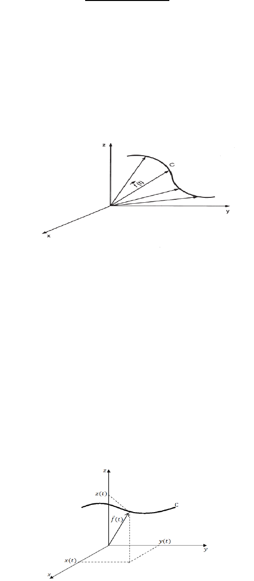 Universidade do Estado do Pará – UEPA Curso Licenciatura em Matemática Professor Francisco Junior Disciplina Cálculo II Aluno(a):__________________________________ Turma:__________ Texto sobre Curvas Curvas Definição Dada uma função vetorial contínua ⃗( ) ( ) ⃗ ( ) ⃗ ( ) ⃗⃗, , chamaos curva o lugar geométrico dos pontos do espaço que têm vetor posição ⃗( ) .] Representação Paramétrica de Curvas Sejam ( ) ( ) (1) ( ) Funções contínuas de uma variável real , definidas para [ ]. As equações (1) são chamadas equações paramétricas de uma curva e é chamado parâmetro. Dadas as equações paramétricas de uma curva, podemos obter uma equação vetorial ´para ela. Basta considerar o vetor posição ⃗( ) de cada ponto da curva. As componentes de ⃗( ) são precisamente as coordenadas do ponto. Escrevemos ⃗( ) ( ) ⃗ ( ) ⃗ ( ) ⃗⃗ Exemplos 1ª) Equação vetorial: ⃗( ) ⃗ ( ) ⃗ ⃗⃗ Equações paramétricas: ( ) ( ) ( ) 2ª) Equação vetorial : ⃗( ) ⃗ ⃗ ⃗⃗ Equações paramétricas : ( ) ( ) ( ) Curva Plana e Curva Reversa Uma curva plana é uma curva que está contida em um plano do espaço. Uma curva que não é plana chama-se curva reversa. Curva Fechada e Curva Aberta Uma curva parametrizada ⃗( ), com [ ], é dita fechada se ⃗( ) ⃗( ). Curva Simples e Curva não Simples Se a cada ponto da curva parametrizada ⃗( ), [ ], corresponde um único valor do parâmetro , exceto para e , dizemos que a curva é simples. Exemplos: Parametrização de uma Reta A equação vetorial de uma reta qualquer pode ser dada por ⃗( ) ⃗ ⃗⃗ ⃗ Onde ⃗ é chamado de vetor posição e ⃗⃗ de vetor direção e um parâmetro real. Exemplos: 1ª) Determinar uma representação paramétrica da reta que passa pelo ponto ( ) na direção do vetor ⃗⃗ ⃗ ⃗ ⃗⃗. Sol.: 2ª) Determinar uma representação paramétrica da reta que passa pelos pontos ( ) e ( ). Parametrização de uma Circunferência Uma equação vetorial da circunferência de raio e centro na origem, no plano , é ⃗( ) ⃗ ⃗ , . Onde ( ) e ( ) são suas equações paramétricas. Quando a circunferência não está centrada na origem, a equação vetorial é dada por ⃗( ) ⃗⃗⃗⃗ ⃗⃗⃗ ⃗( ) Onde ⃗⃗⃗⃗ ⃗ ⃗ e ⃗⃗⃗ ⃗( ) ⃗⃗ ⃗ , com . Nesse caso, a equação vetorial é dada por ⃗( ) ( ) ⃗ ( ) ⃗ , . Exemplos: 1ª) Obter as equações vetorial e paramétricas da circunferência no plano . 2ª) Obter as equações vetorial e paramétricas da circunferência no plano . 3ª) Dada a equação vetorial ⃗( ) ⃗ ⃗ ⃗⃗ que representa uma circunferência, determinar a correspondente equação cartesiana. Parametrização de uma Elipse Uma equação vetorial de uma elipse, no plano , com centro na origem e eixos nas direções e é ⃗( ) ⃗ ⃗ , . Onde suas equações ( ) e ( ) . No caso da elipse estar centrada fora da origem Sua equação vetorial é dada por ⃗( ) ⃗⃗⃗⃗ ⃗⃗⃗ ⃗( ) , Onde ⃗⃗⃗⃗ ⃗ ⃗ e ⃗⃗⃗ ⃗( ) ⃗⃗ ⃗ , com . Nesse caso, sua equação vetorial é dada por ⃗( ) ( ) ⃗ ( ) ⃗ , . Exemplos: 1ª) Escrever uma equação vetorial da elipse no plano . 2ª) Escrever uma equação vetorial da elipse ( ) ( ) no plano . Parametrização de Outras Curvas Exemplos: 1ª) Escrever uma equação vetorial para no plano . 2ª) Escrever uma equação vetorial para no plano . Exercícios Complementares 1ª) A posição de uma partícula no plano , no tempo , é dada por ( ) e ( ) . a) Escrever a função vetorial ⃗( ) que descreve o movimento dessa partícula. b) Onde se encontrará a partícula em e em ? 2ª) O movimento de um besouro que desliza sobre a superfície de uma lagoa pode ser expresso pela função vetorial ⃗( ) ⃗ ( ) ⃗ Onde é a massa do besouro. Determinar a posição do besouro no instante e . 3ª) Obter uma equação cartesiana das seguintes curvas: a) ⃗( ) ( ) b) ⃗( ) ( ) c) ⃗( ) ( ) 4ª) Escrever uma equação vetorial para seguintes circunferências: a) b) c) 5ª) Escrever uma equação vetorial para as seguintes elipses: a) b) 6ª) Determinar uma representação da reta que passa pelo ponto , na direção do vetor ⃗⃗ , onde: a) ( ) e ⃗⃗ ⃗ ⃗ b) ( ) e ⃗⃗ ⃗ ⃗ ⃗⃗ 7ª) Determinar uma representação paramétrica da reta que passa pelos pontos e , sendo: a) ( ) e ( ) b) ) ( ) e ( ) c) ) ( ) e ( ) 8ª) Determinar uma representação paramétrica da reta representada por: a) b) 9ª) Encontrar uma equação vetorial das seguintes curvas: a) b) c) Curvas Suaves Uma curva pode ter pontos angulosos. Por exemplo: Geometricamente, uma curva suave é caracterizada pela ausência de pontos angulosos. Em cada um de seus pontos, a curva possui uma única tangente que varia continuamente quando se move sobre a curva. Orientação de uma Curva Se um ponto material desloca-se sobre uma curva , temos dois sentidos possíveis de percurso. A escolha de um deles como sentido positivo define uma orientação na curva . Vamos supor que a curva seja representada por ⃗( ) ( ) ⃗ ( ) ⃗ ( ) ⃗⃗ , [ ]. Convencionamos chamar de sentido positivo sobre o sentido no qual a curva é traçada quando o parâmetro cresce de para . O sentido oposto é chamado sentido negativo sobre a curva . De acordo com nossa convenção, sempre que uma curva suave é representada por ⃗( ) ( ) ⃗ ( ) ⃗ ( ) ⃗⃗ , [ ]. é uma curva orientada e seu sentido positivo de percurso é o de valores crescentes do parâmetro . Definição Dada uma curva orientada , representada por ⃗( ) ( ) ⃗ ( ) ⃗ ( ) ⃗⃗ , [ ], a curva é definida como a curva com orientação oposta. Exemplo: No caso de uma circunferência de raio e centro na origem, Comprimento de Arco Seja uma curva dada pela equação vetorial ⃗( ) ( ) ⃗ ( ) ⃗ ( ) ⃗⃗ , [ ]. Vamos calcular o comprimento de um arco ̂ , com [ ]. Seja Uma partição qualquer de [ ]. Indicamos por o comprimento da poligonal d