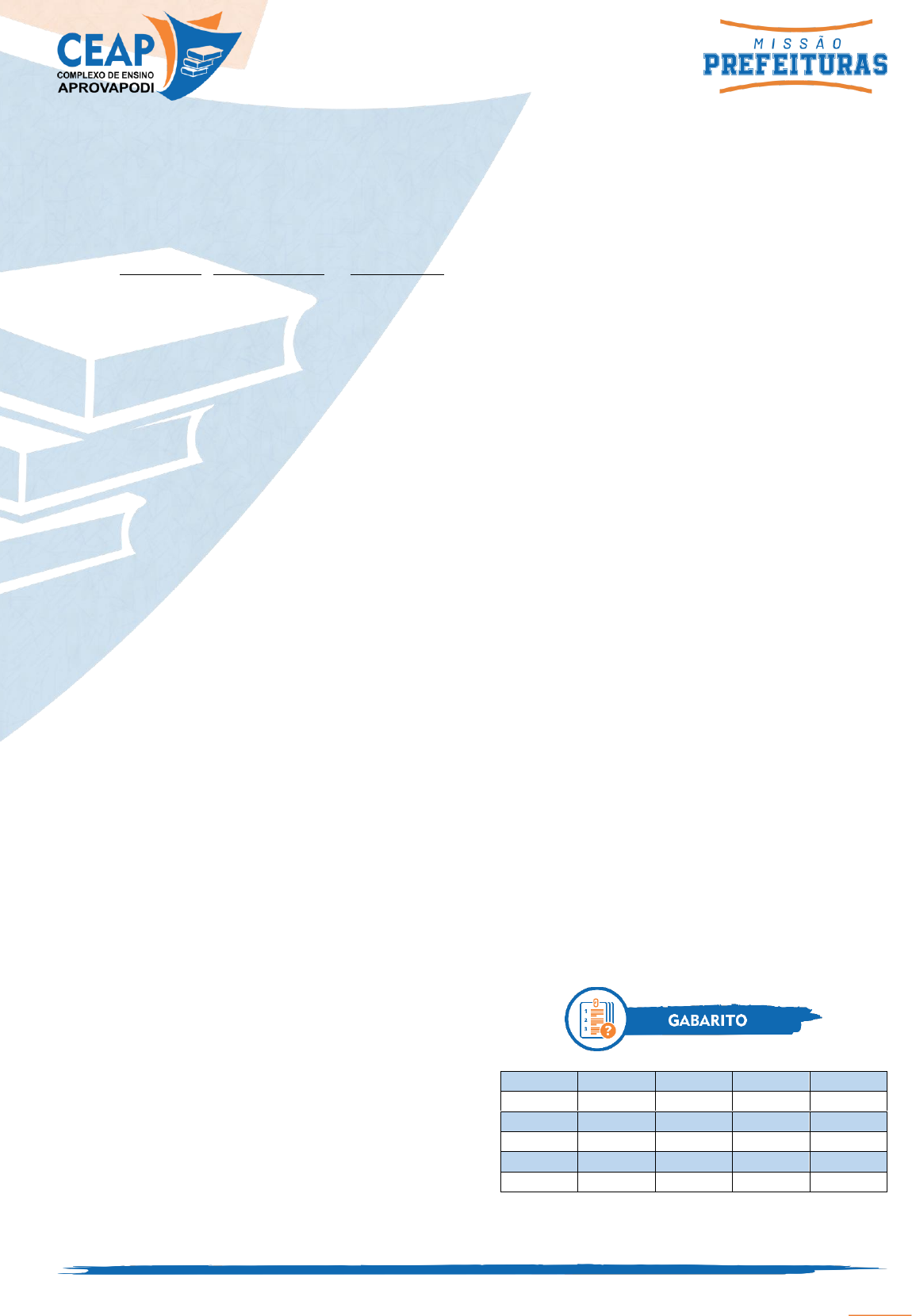 www.CEAPCURSOS.com.br Em concursos úblicos 118 QUESTÃO 24 (IDECAN) A palavra “pássaro” apresenta A) tritongo. B) dígrafo. C) encontro vocálico. D) hiato. E) ditongo. QUESTÃO 25 (IDECAN) Assinale a alternativa em que a divisão silábica das palavras gastronomia, empreendedores e hambúrgueres esteja CORRETA. A) gas-tro-no-mia/ em-preen-de-do-res/ ham-búr-gue-res B) gas-tro-no-mi-a/ em-preen-de-do-res/ ham-búr-gueres C) gas-tro-no-mia/ em-pre-en-de-do-res/ ham-búr-gue-res D) gas-tro-no-mi-a/ em-preen-de-do-res/ ham-búrg-ue-res E) gas-tro-no-mi-a/ em-pre-en-de-do-res/ ham-búr-gue-res QUESTÃO 26 (IDECAN) A palavra, cuja acentuação gráfica obedece à regra diferente das demais, é: A) insuportável. B) hierárquicas. C) máximo. D) árvores. E) súbita. QUESTÃO 27 (IDECAN) Analise as afirmativas referentes à acentuação gráfica das palavras retiradas do texto e em seguida assinale a afirmativa incorreta: A) Os vocábulos “máquina” e “eletrônico” são acentuados por serem proparoxítonas. B) As palavras “secretária” e “impaciência” obedecem à mesma regra de acentuação. C) A palavra “substituída” o “i” é acentuado por ser tônico de hiato. D) As paroxítonas “desprezível” e “suportável” são acentuadas porque terminam em “el”. QUESTÃO 28 (IDECAN) Assinale a alternativa em que as duas palavras são acentuadas em virtude da mesma regra. A) família – difícil. B) já – ampará-los. C) está – ensiná-los. D) terrível – alguém. E) resolverá – já. QUESTÃO 29 (IDECAN) Assinale a palavra transcrita do texto que NÃO é acentuada pelo mesmo motivo que as demais. A) Média. B) Pública. C) Estatísticas. D) Acadêmica. QUESTÃO 30 (IDECAN) Assinale, a seguir, o par de palavras transcritas do texto que são acentuadas pela mesma razão. A) também / você. C) confiável / alguém. B) possível / próximo. D) cérebro / fenômeno. 1 – A 2 – D 3 – C 4 – A 5 – B 6 – C 7 – B 8 – D 9 – B 10 – C 11 – E 12 – C 13 – A 14 – D 15 – B 16 – D 17 – D 18 – D 19 – D 20 – E 21 – B 22 – C 23 – C 24 – B 25 – E 26 – A 27 – D 28 - C 29 – A 30 - D www.CEAPCURSOS.com.br Em concursos úblicos 119 QUESTÃO 1 (IDECAN) “Há anos pesquisadores africanos notaram que o padrão de disseminação do zika em macacos selvagens acompanhava o do chikungunya, entre os mesmos animais.” (5º§) Assinale a alternativa em que o uso do verbo haver no singular se justifica pelo mesmo motivo do trecho anterior. A) O zika foi identificado há tempos em Uganda. B) Haverá mudanças no combate ao Aedes aegypti. C) Em Pernambuco há muitos casos de microcefalia. D) O agente havia combatido muitos focos do mosquito transmissor. QUESTÃO 2 (IDECAN) “A primeira das quatro epidemias citadas é a dengue, que se insinuou no hemisfério durante décadas, para atacar com mais vigor a partir dos anos 1990.” (3º§) De acordo com a classe gramatical de palavras, os termos anteriormente sublinhados são classificados, respectivamente, como: A) Numeral, pronome, advérbio. B) Numeral, conjunção, advérbio. C) Substantivo, pronome, advérbio. D) Substantivo, pronome, conjunção. QUESTÃO 3 (IDECAN) “No entanto, como os casos surgem de forma esporádica e imprevisível, vacinar populações inteiras pode ser proibitivo...” (10º§) O termo sublinhado, de acordo com o contexto, pode ser substituído por: A) Portanto. B) Porquanto. C) Além disso. D) Não obstante. QUESTÃO 4 (IDECAN) “Só algumas poucas casas e um ginásio permaneceram quase intactos – e foi ali onde centenas de pessoas se abrigaram à espera do resgate.” (2º§) No trecho anterior, “onde” está corretamente empregado. Assinale a alternativa em que o seu uso está INCORRETO. A) Bento Rodrigues, onde fica a mineradora Samarco, talvez vire outra barragem. B) A barragem de Germano, onde há risco de rompimento, deverá receber reparos. C) Mariana, cidade onde fica Bento Rodrigues, faz parte da história do ouro em Minas Gerais. D) As pessoas perderam tudo o que tinham, ficou apenas a lembrança onde estão os laços afetivos. QUESTÃO 5 (IDECAN) “Por ora, 356 pessoas que viviam por lá estão hospedadas em hotéis de Mariana.” (4º§) A expressão sublinhada, de acordo com o contexto, é classificada como: A)Advérbio. B) Conjunção. C) Interjeição. D) Preposição. QUESTÃO 6 (IDECAN) Assinale a alternativa cujo tempo verbal se DIFERENCIA dos demais. A) “A lama varreu de vez o distrito,...” (3º§) B) “As casas que não foram levadas viraram escombros.” (1º§) C) “... poucas casas e um ginásio permaneceram quase intactos...” (2º§) D) “... pessoas que viviam por lá estão hospedadas em hotéis de Mariana.” (4º§) QUESTÃO 7 (IDECAN) Em todas as frases a seguir, as formas verbais foram flexionadas no mesmo tempo, EXCETO: A) “… que têm agenda lotada…” (7º§) B) “Falamos sobre pressão alta,…” (2º§) C) “... a gente evolui e tropica junto.” (11º§) D) “... que molhará lenços e lençóis,...” (10º§) QUESTÃO 8 (IDECAN) “Crianças e adolescentes têm dias agitadíssimos e acabam ficando sem tempo...” (7º§). Na frase anterior há um adjetivo flexionado no grau A) superlativo absoluto analítico. B) superlativo absoluto sintético. C) superlativo relativo de inferioridade. D) superlativo relativo de superioridade. QUESTÃO 9 (IDECAN) Em “Eles responderam se gostam daquelas músicas e se têm o costume de ouvi‐las.” (7º§), o termo em destaque se refere às A) músicas. B) bebidas. C) menções. D) propagandas. QUESTÃO 10 (IDECAN) Em “No caso do álcool, pode ser valioso para que entendam como as menções a bebidas em músicas podem manipular suas emoções para que eles comprem um produto.” (10º§), a palavra destacada pode ser substituída, sem prejuízo semântico, por A) embora. B) assim que. C) desde que. D) a fim de que. MORFOLOGIA CLASSES DE PALAVRAS: SUBSTAN