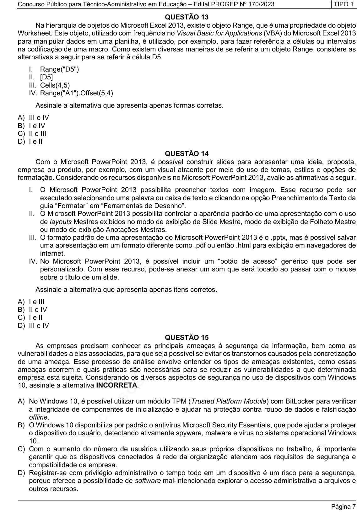 Concurso Público para Técnico-Administrativo em Educação – Edital PROGEP Nº 170/2023 TIPO 1