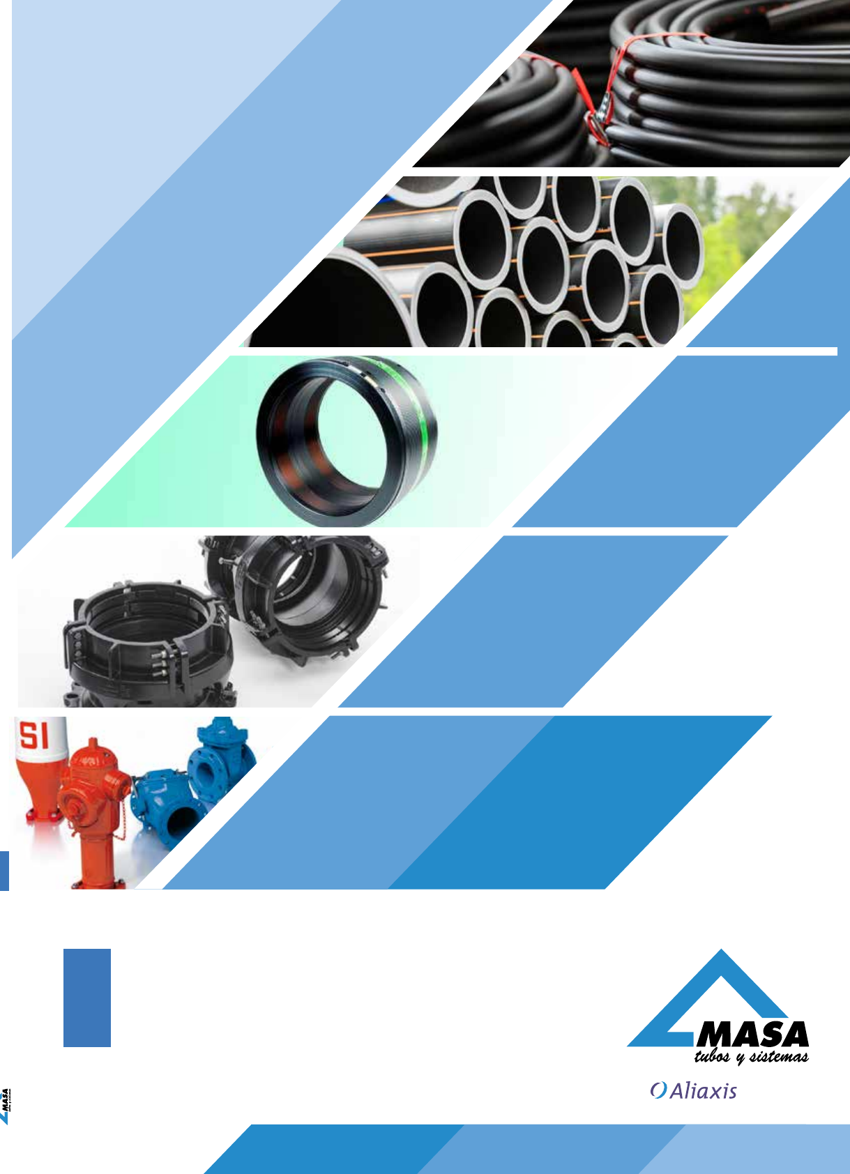an companywww.masa.es w w w .m a s a .e s Catálogo y Lista de Precios C a tá lo g o y L is ta d e P re ci o s 2 0 1 8 2 0 1 8 2 Tarifa ENERO/2018 Tarifa ENERO/2018 3Tarifa 2016/2017 ÍNDICE 3Tarifa ENERO/2018 Tubos de Polietileno MASA-Flexipol y Excel Plus Pgs. 4 a 17 Flexipol PE100 AENOR.................................................................................... Pgs 7-8 Excel Plus ,PE 100 RD y Sistema de Acometida............................. Pg. 9-10 Flexipol PE 100 RC y Flexipol Ranurados y Perforados.............. Pg. 11 Flexipol PE100 NF............................................................................................. Pgs. 12 a 14 Flexipol PE80....................................................................................................... Pgs. 15-16 Flexipol PE80 NF............................................................................................... Pgs. 16-17 Flexipol PE40....................................................................................................... Pg. 17 Sistema Push Fast PE 100 y PE 100 RC Pgs. 18-20 Tubos de Polietileno MASA-Gasypol Pg. 21 PE100 Naranja....................................................................................................Pg. 21 PE100 Negro Banda Amarilla.....................................................................Pg. 21 Tubos de PE para Telecomunicaciones y Alta Tensión Pgs. 22-23 Accesorios Manipulados de PE MASA Pgs. 24 a 31 Bridas, Portabridas, Pasamuros y Juntas Pgs. 32 a 39 Accesorios de Unión Electrosoldable - Frialen Pgs. 40 a 70 Equipos y Herramientas para Accesorios Frialen, Friatools Pgs. 71 a 83 Accesorios de PE Inyectado Largos para Soldadura a tope Pgs. 84 a 94 Accesorios de PE Inyectado Cortos para Soldadura a tope Pgs. 95 a 104 Accesorios Metálicos VIKING JOHNSON Pgs. 105 a 123 Soluciones para PE.......................................................................................... Pgs. 108-109 Soluciones de Gran Tolerancia.................................................................. Pgs. 110 a 116 Soluciones Especializadas........................................................................... Pgs. 116 a 119 Carretes de Desmontaje................................................................................ Pg. 120 Soluciones para Reparación...................................................................... Pgs. 121 a 123 Válvulas y Accesorios de Fundición FUCOLI SOMEPAL Pgs. 124 a 161 Válvulas de Compuerta.................................................................................. Pgs. 126 a 132 Válvulas de Acometida-Registro.............................................................. Pgs. 133-134 Trampillones de Fundición y de Composite.......................................Pg. 135 Accesorios Válvulas......................................................................................... Pgs. 136-137 Válvulas de Compuerta de cierre elástico para Gas.................... Pgs. 137-138 Válvulas de Mariposa y otras - filtros.................................................. Pgs. 138 a 140 Válvulas de Retención................................................................................... Pgs. 141 a 143 Ventosas................................................................................................................. Pgs. 143-144 Hidrantes y Bocas de Riego....................................................................... Pgs 144-145 Collarines, Abrazaderas y Tomas en Carga........................................ Pgs. 146 a 148 Bridas de Unión de Doble Cámara......................................................... Pgs. 149-150 Accesorios en Fundicion dúctil para PVC........................................... Pgs. 150 a 155 Codos y tés autoblocantes para PE y PVC Blockplus.................. Pgs. 155-156 Accesorios PE Enchufe................................................................................... Pgs. 156-157 Accesorios de Fundición con Brida....................................................... Pgs. 158 a 161 Accesorios de Señalización Pg. 162 Certificaciones de Empresa Pgs. 163 a 174 Tarifa ENERO/20184 Tu b o s d e P E F le x ip o l Tarifa 2016/2017 TUBERÍAS DE POLIETILENO (PE)UNE-EN ISO 9001 UNE-EN ISO 14001 Tarifa ENERO/2018 5 En MASA somos especialistas en la fabricación de tubos de polietileno (PE) para la conducción de agua y combusti- bles gaseosos, dando a nuestros clientes una cobertura total para el asesoramiento, fabricación e instalación posterior de los tubos. Somos conscientes de que la garantía y fiabilidad de la ca- lidad de nuestros productos está sustentada sobre la base de unos medios productivos altamente cualificados. Por ello no hemos escatimado esfuerzos, y hemos realizado las in- versiones necesarias para dotarnos de un equipo productivo innovador. Nuestra factoría, sita en Okondo (Alava), dispone de insta- laciones con una gran capacidad de transformación del PE pudiendo fabricar tubos de hasta Ø 1000, con presiones que van desde 4 hasta 25 Atm. No obstante, dentro de nuestro grupo, ALIAXIS, podemos fabricar, en distintas factorías, tubos de PE hasta 1.200 mm. La utilización de tubos de polietileno (PE) tiene grandes ventajas con respecto a otros tubos tradicionales: Durabilidad Entre éstas, cabe citar como una de las más significativas su gran durabilidad: se considera vida útil del tubo de PE un periodo de 50 años como mínimo. Atoxicidad Además de su larga vida útil, los tubos de PE son totalmente inodoros, insípidos y atóxicos. Estas características hacen del PE un material idóneo para la conducción de agua po- table. Resistencia El polietileno es resistente a la corrosión y a la mayor parte de los agentes químicos. Baja pérdida de carga Debido a la superficie lisa de los tubos de PE, la pérdida de carga por rozamiento es casi nula con respecto a otros materiales. Flexibilidad y elasticidad Significa una gran ventaja para las instalaciones 