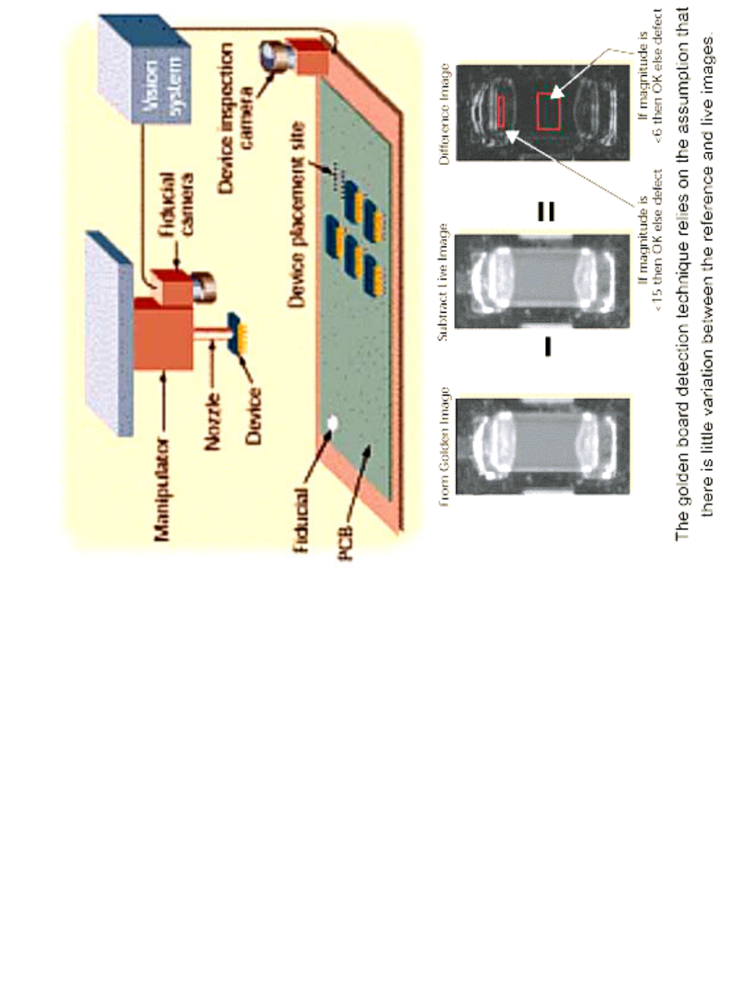 T E C -E N C 8 -1 S I S T E M A S d e V I S Ã O p a r a “ P L A C E M E N T ” •O s s is te m as d e vi sã o pa ra o po si ci on am en to d e di sp os iti vo s (S M D ) r ea liz a as se gu in te s f un çõ es : – Lo ca liz aç ão d as m ar ca s f id uc ia is no (P C B ) , –A ss eg ur ar o a lin ha m en to d o di sp os iti vo , –V er ifi ca r o c he qu e de to le râ nc ia s e in sp eç ão g lo ba l, –L oc al iz aç ão e e xa m e do s t er m in ai s, pa ra g ar an tir q ue m es m o di sp os iti vo s c om te rm in ai s u m po uc o de fo rm ad os p os sa m se r po si ci on ad os c or re ta m en te , –R ej ei çã o do s d is po si tiv os q ue n ão te m o u ap re se nt am te rm in ai s f or a da s t ol er ân ci as e st ab el ec id as . –C om pa ra çã o de c om po ne nt es c om im ag en s pa dr ão , pa ra re je iç ão d os di sp os iti vo s f or a da s t ol er ân ci as es ta be le ci da s. T E C -E N C 8 -2 P R E C I S Ã O d o P O S I C I O N A M E N T O •U m a sp ec to im po rta nt e no p ro ce ss o de po si ci on am en to d e co m po ne nt es S M D é a pr ec is ão d o po si ci on am en to . – O d es vi o pa dr ão (σ ) e o d es vi o da m éd ia de u m v al or n om in al sã o pa râ m et ro s m ed id as p ar a qu al qu er si st em a de po si ci on am en to e ju nt o o pa râ m et ro (µ ) ch am ad o de “ Pl ac em en t o ff se t” = D es vi o do v al or m éd io e m re la çã o ao v al or no m in al sã o u sa do s p ar a ca lc ul ar o (c m k) Ín di ce d e ca pa ci da de d a m áq ui na de “P la ce m en t” , v er e qu aç ão a ba ix o. – O (S L) o u es pe ci fic aç ão li m ite é u m pa râ m et ro d et er m in ad o pe lo u su ár io ) (x T E C -E N C 8 -3 T E M P O d e C I C L O e m “ P L A C E M E N T ” •O te m po d e um o c ic lo d e “P la ce m en t” po ss ui 4 fa se s p rin ci pa is : –“ Pi ck ti m e” te m po d e re co lh im en to d o co m po ne nt e SM D . •T ip ic am en te d e 10 0 m ili -s eg un do s –T em po d e c ur so (X -Y ) d a p os iç ão d e re co lh im en to a té a d e po si ci on am en to . •P er to d e 14 0 m ili -s eg un do s –T em po d o po si ci on am en to (i nc lu in do o cu rs o (X -Y ), do p rim ei ro a té o u lti m o po si ci on am en to . •E st e te m po a um en ta c om o n úm er o de c ab eç as u sa da s, o te m po é d e 14 0 m ili -s eg un do s p or p ar te (v ej a ta be la ). –T em po d e cu rs o (X -Y ) d a úl tim a po si çã o pa ra a p os iç ão d e re co lh im en to . •P er to d e 14 0 m ili -s eg un do s –C on cl us ão :O ‘t em po d e ci cl o de P & P di m in ui n a m ed id a em q ue o n úm er o de ca be ça s a um en ta , p or em a pó s a q ua rta ca be ça o te m po n ão d im in ui m ui to . –A ss im a s n ov as m áq ui na s t en de m a se r m ai s c om pa ct as p ar a di m in ui r o s t em po s d e cu rs o. T E C -E N C 8 -4 A L I M E N T A D O R E S d e C O M P O N E N T E S S M D –D ev id o a di ve rs id ad e ge om ét ric a do s co m po ne nt es S M D d iv er so s t ip os d e al im en ta do re s f or am d es en vo lv id os : •“ St ic k fe ed er s” A lim en ta do re s e m tu bo s •“ Ta pe F ee de rs ” A lim en ta do re s d e fit a •“ Tr ay fe ed er s” A lim en ta do re s d e ba nd ej a •“ B ul k fe ed er s” A lim en ta do re s a g ra ne l T E C -E N C 8 -5 S O L D A G E M e m S M T • So ld ag em p od e se r d ef in id o co m o a ju nç ão d e do is m et ai s p or a qu ec im en to d e m at er ia is ac im a de se u po nt o de fu sã o, m as a ba ix o do s p on to s d e fu sã o do s m at er ia is q ue se rã o lig ad os . A ju nç ão é fo rm ad a de d ua s m an ei ra s: –P el a fo rm aç ão d e co m po st os in te rm et ál ic os , q ue é u m p ro ce ss o qu ím ic o irr ev er sí ve l; –P or d ifu sã o ou a bs or çã o, q ue é u m p ro ce ss o fís ic o. • O o bj et iv o do p ro ce ss o de re fu sã o é o de o bt er so ld as d e al ta q ua lid ad e em to do s o s t er m in ai s do s c om po ne nt es d e um c er to c irc ui to d e fo rm a co ns is te nt e. • O p ro ce ss o en vo lv e o aq ue ci m en to d os te rm in ai s, ilh as e p as ta a ci m a do p on to d e fu sã o da lig a ut ili za da n a so ld a do s t er m in ai s e a p as ta d e fo rm a a se re fu nd ir nu m fi le te h om og ên eo . A c on si st ên ci a do p ro ce ss o de pe nd e d e co m o se c on tro la a a pl ic aç ão e c al or e a v ar ia çã o de st e ao lo ng o d a pl ac a d e de p la ca p ar a pl ac a. • Es ta o pe ra çã o co nt ro la da c ha m a- se d e pe rf il de so ld ag em . O m ét od o de a qu ec im en to n ão é tã o cr iti co q ua nt o a ha bi lid ad e de c on tro la r o p er fil d e um a fo rm a re pe tit iv a. T E C -E N C 8 -6 A s C A M A D A S I N T E R M E T Á L I C A S n a S O L D A • Q ua nd o p. E x. u m a lig a 63 Sn /3 7P b é so ld ad a co m c ob re , d ua s c am ad as in te rm et ál ic as (I L) “ In te rm et al lic L ay er s” sã o fo rm ad os . N o la do d o co br e C u 3 Sn e no la do d a so ld a um a ca m ad a irr eg ul ar d e C u 6 Sn 5. • A e sp es su ra to ta l d es ta s c am ad as é d e 0. 5- 0. 7 µm . E st es c om po st os fo rm as g rã os cr is ta lin os e su a es tru tu ra é d et er m in ad a pe la te m po e te m pe ra tu ra d a in te ra çã o té rm ic a. – Pe qu en os te m po s d e re aç ão fo rm a gr ão s fin os q ue p ro m ov em b oa so ld ab ili da de e re si st ên ci a m ec ân ic a da ju nt a. – Te m po s l on go s d e re aç ão fo rm am g rã os gr os so s q ue g er am c am ad as (I L) e sp es sa s e pr om ov em m á so ld ab ili da de e re si st ên ci a m ec ân ic a da ju nt a, d ei xa nd o a so ld a du ra e qu eb ra di ça . T E C -E N C 8 -7 P R O C E S S O d e R E F U S Ã O •O p ro ce ss o de re fu sã o de so ld a po ss ui tr ês fa se s b ás ic as : – Pr é- aq ue ci m en to , – R ef us ão , – R es fr ia m en to . •N a re al id ad e sã o ci nc o ev 