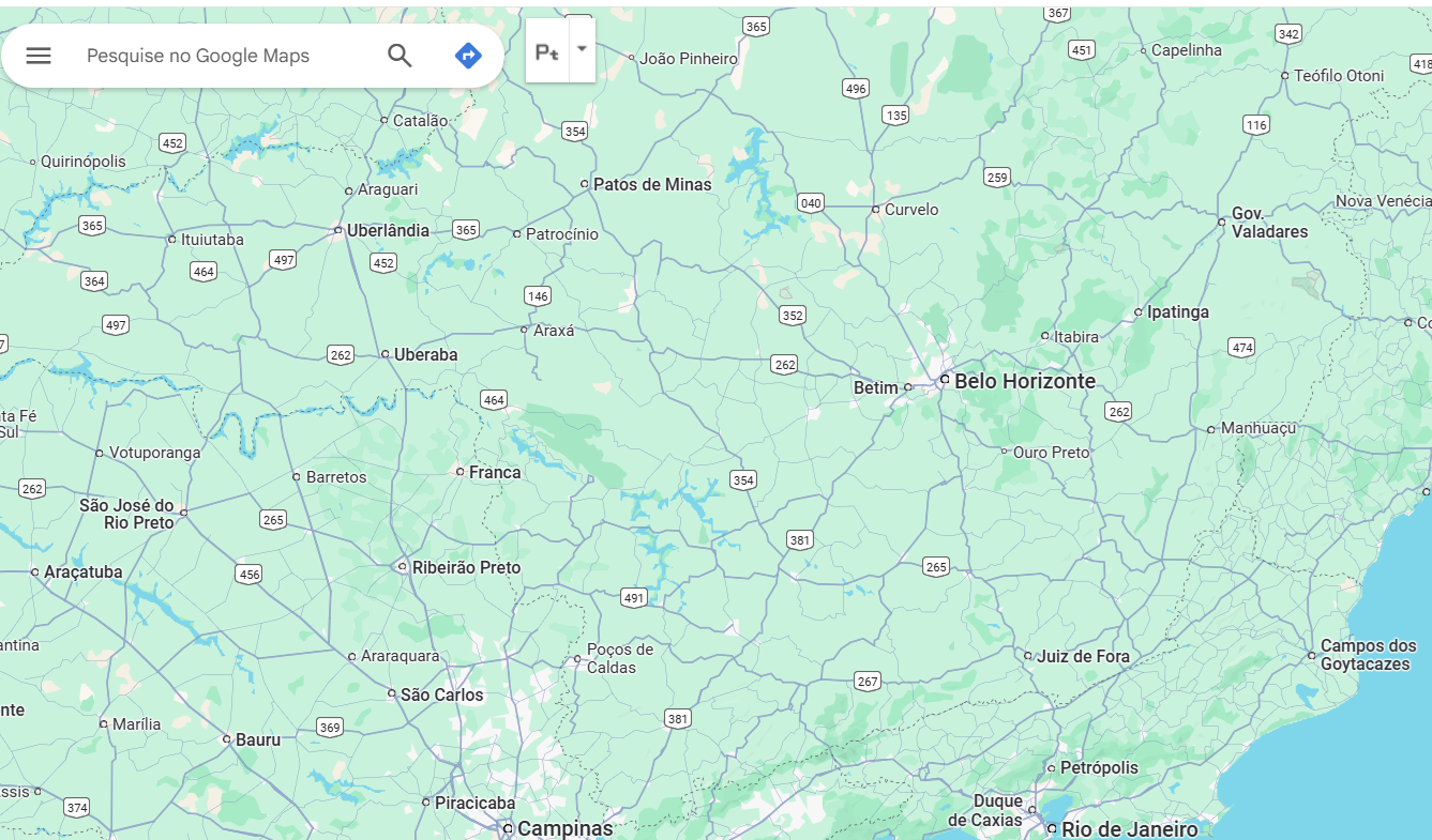 367 365 342 Pesquise no Google Maps Pt 451 João Pinheiro Capelinha 418 Teófilo Otoni 496 Catalão 135 116 354 452 Quirinópolis 259 Araguari Patos de Minas 040 Nova Venécia Curvelo Gov. 365 Uberlândia 365 Ituiutaba Patrocínio Valadares 497 452 464 364 146 352 Ipatinga 497 Araxa 474 262 Uberaba 262 Betim Belo Horizonte 464 ta Fé 262 Sul Manhuacu Votuporanga Ouro Preto Barretos Franca 354 262 São José do Rio Preto 265 381 Ribeirão Preto 265 456 491 ntina Araraquara Poços de Campos dos de Fora Caldas Goytacazes 267 Carlos nte Marília 381 369 Bauru ssis 374 Piracicaba de Caxias Campinas Rio de Janeiro