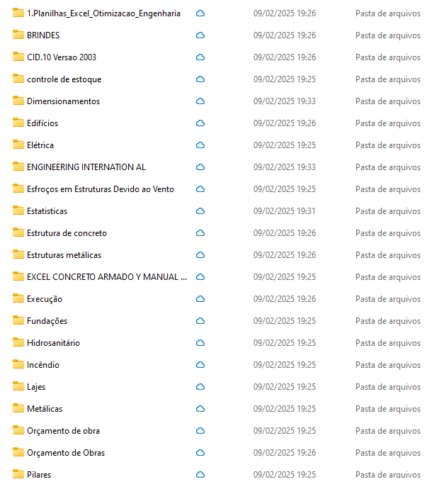 09/02/2025 19:26 Pasta de arquivos BRINDES 09/02/2025 19:26 Pasta de arquivos CID. 10 Versao 2003 09/02/2025 19:26 Pasta de arquivos controle de estoque 09/02/2025 19:25 Pasta de arquivos Dimensionamentos 09/02/2025 19:33 Pasta de arquivos Edifícios 09/02/2025 19:26 Pasta de arquivos Elétrica 09/02/2025 19:25 Pasta de arquivos ENGINEERING INTERNATION AL 09/02/2025 19:33 Pasta de arquivos Esfroços em Estruturas Devido ao Vento 09/02/2025 19:25 Pasta de arquivos Estatisticas 09/02/2025 19:31 Pasta de arquivos Estrutura de concreto 09/02/2025 19:26 Pasta de arquivos Estruturas metálicas 09/02/2025 19:26 Pasta de arquivos EXCEL CONCRETO ARMADO Y MANUAL 09/02/2025 19:25 Pasta de arquivos Execução 09/02/2025 19:26 Pasta de arquivos Fundações 09/02/2025 19:25 Pasta de arquivos Hidrosanitário 09/02/2025 19:25 Pasta de arquivos Incêndio 09/02/2025 19:25 Pasta de arquivos Lajes 09/02/2025 19:25 Pasta de arquivos 09/02/2025 19:25 Pasta de arquivos Orçamento de obra 09/02/2025 19:25 Pasta de arquivos Orçamento de Obras 09/02/2025 19:26 Pasta de arquivos Pilares 09/02/2025 19:25 Pasta de arquivos