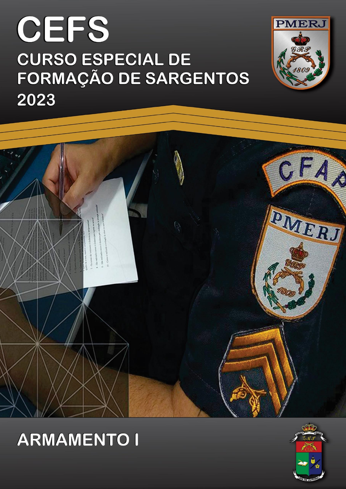 ARMAMENTO I - CEFS 0 ARMAMENTO I - CEFS 1 AUTORIDADES Governador do Estado do Rio de Janeiro Exmº. Sr. Cláudio Bomfim de Castro e Silva Secretário de Estado de Polícia Militar Exmº. Sr. Coronel PM Luiz Henrique Marinho Pires Subsecretário de Estado de Polícia Militar Ilmº. Sr. Coronel PM Carlos Eduardo Sarmento da Costa Diretor-Geral de Ensino e Instrução Ilmº. Sr. Coronel PM Marcelo André Teixeira da Silva Comandante do CFAP 31 de Voluntários Ilmª. Sra. Coronel PM Simone Duque Romeu Comandante do Centro de Educação a Distância da Polícia Militar Ilmº. Sr. Tenente-Coronel PM Alexandre Moreira Soares ARMAMENTO I - CEFS 2 APRESENTAÇÃO Prezados alunos, ao longo de sua carreira e de atuação enquanto agente de segurança pública, o Policial Militar tem a oportunidade de colocar em prática seus conhecimentos profissionais. Deste modo, o Curso Especial de Formação de Sargentos - CEFS é um curso de aperfeiçoamento profissional do Praça Policial Militar, tendo em vista que o Sargento PM possui uma posição específica e responsabilidades próprias que deverão ser observadas no exercício de sua função. Nesta direção, sendo o Policial Militar elemento fundamental na execução da política de segurança pública do nosso Estado, o CEFS apresenta-se como um momento interessante para a retomada da sua qualificação, agora podendo compartilhar e aperfeiçoar sua experiência profissional ao longo dos anos de atução policial na corporação. Não obstante, sendo o CEFS na modalidade de ensino a distância, o Sgt PM consegue usufruir da flexibilidade oferecida por essa modalidade, podendo adequar sua rotina ao cronograma do curso. Assim, é fundamental o seu empenho, prezado aluno, pois na modalidade de ensino a distância, será necessário disciplina e dedicação para o êxito dessa jornada, pois alcançar o sucesso depende do seu esforço individual. Convém destacar que na era da informação e da tecnologia, é necessário aprimoramento constante a fim de garantir uma tropa consciente, respeitosa, pautada em valores morais e institucionais, permitindo assim o cumprimento de suas funções com dignidade e excelência. Esperamos que nossos policiais sejam cada vez mais qualificados, bem treinados e especializados, para cumprirmos nossa missão, buscando cada vez mais a excelência de nossas ações. Por fim, desejamos que você aproveite ao máximo os conhecimentos construídos ao longo do curso e busque uma reflexão acerca de suas funções diante da sociedade e seus companheiros de profissão e seu papel e lugar estratégico dentro da estrutura hierárquica da Secretaria de Estado de Polícia Militar. Que seja um momento de repensar as práticas e fortalecer seu vínculo profissional, ampliando cada vez mais seus conhecimentos para lidar com as particularidades de ser um Policial Militar no Estado do Rio de Janeiro. Bons estudos! Marcelo André Teixeira da Silva – Coronel PM Diretor-Geral de Ensino e Instrução Simone Duque Romeu – Coronel PM Comandante do CFAP ARMAMENTO I - CEFS 3 DESENVOLVEDORES CFAP Supervisão e Coordenação Pedagógica CAP PM Ped Priscila Medeiros Moura de Lima CB PM Cíntia Andrade de Araújo CB PM Fernanda Belísio Oliveira dos Santos CB PM Layla Simões da Silva CB PM Eduarda Vasconcellos Dias de Oliveira Conteudistas 1º SGT PM Andre Jardim da Silva 1º SGT PM Ricardo Saldanha Viana dos Santos 2º SGT PM Fabio de Almeida Silva CEADPM Supervisão Geral EAD TEN CEL PM Rodrigo Fernandes Ferreira Equipe Técnica SUBTEN PM Willian Jardim de Souza 1º SGT PM Edson dos Santos Vasconcelos CB PM Lucas Almeida de Oliveira CB PM Diogo Ramalho Pereira Diagramação 1º SGT PM Alan dos Santos Oliveira SD PM Daniel Moreira de Azevedo Júnior SD PM Alexandre Leite da Silva SD PM David Wilson Côrtes da Silva Design Instrucional CAP PM Ped Vânia Pereira Matos da Silva Designer Gráfico SD PM Alexandre Leite da Silva Filmagem e Edição de Vídeo CB PM Renan Campos Barbosa SD PM Alexandre dos Reis Bispo Suporte ao Aluno 3º SGT PM Tainá Pereira de Pereira ARMAMENTO I - CEFS 4 SUMÁRIO INTRODUÇÃO ............................................................................................................................................................ 6 TIRO TÁTICO POLICIAL MILITAR I .......................................................................................................................... 7 PRINCÍPIOS E SEGURANÇA.................................................................................................................. 7 FUNDAMENTOS DO TIRO TÁTICO ........................................................................................................ 7 POSIÇÃO ESTÁVEL .............................................................................................................................. 8 CONTROLE DA RESPIRAÇÃO ............................................................................................................. 11 PONTARIA .......................................................................................................................................... 12 OLHO DO ATIRADOR .......................................................................................................................... 12 ALVO .................................................................................................................................................. 13 SAQUE DA ARMA ............................................................................................................................... 13 COLDRES ........................................................................................................................................... 13 FORMAS DE RETENÇÃO DOS COLDRES ............................................................................................................. 16 COLDRE/CORPO .................................................................................................