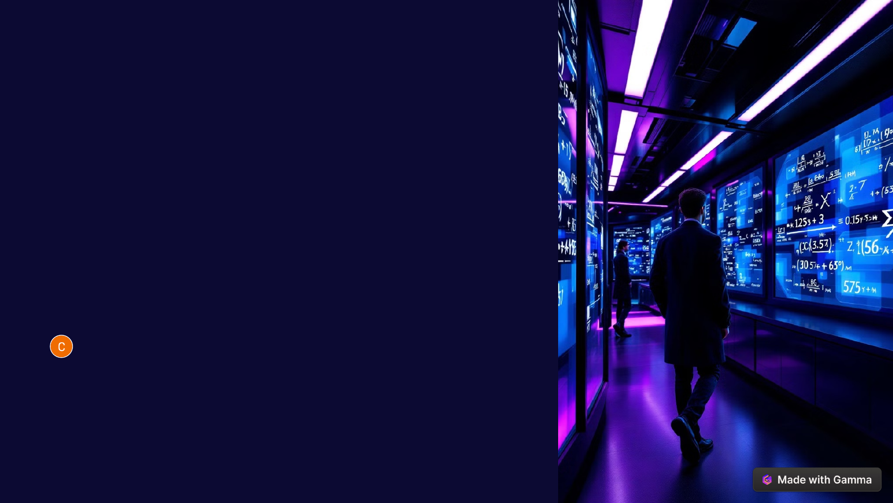 Cálculo Diferencial e Integral O Cálculo Diferencial e Integral é fundamental na matemática. Ele estuda as mudanças e acumulações de grandezas. Essencial para física, engenharia, economia e biologia. por Cefas Souza https://gamma.app/?utm_source=made-with-gamma Introdução ao Cálculo 1 Cálculo Diferencial Estuda as taxas de variação e as derivadas. 2 Cálculo Integral Estuda a acumulação de quantidades e as integrais. 3 Relevância Essencial em física, engenharia, economia e biologia. https://gamma.app/?utm_source=made-with-gamma Cálculo Diferencial Definição Taxa de variação da função em um ponto. Notação Representada por f'(x) ou dy/dx. Interpretação Inclinação da reta tangente à curva. https://gamma.app/?utm_source=made-with-gamma Cálculo Integral Definição Usada para calcular a acumulação de uma quantidade. Notação Representada por ∫ f(x) dx. Teorema Fundamental Conecta diferenciação e integração. https://gamma.app/?utm_source=made-with-gamma Exemplos Práticos 1 Derivada Se f(x) = x² + 3x, então f'(x) = 2x + 3. 2 Integral Definida Área sob a curva y = x² entre x = 0 e x = 1 é 1/3. https://gamma.app/?utm_source=made-with-gamma Teoremas Importantes 1 Teorema de Rolle Existe um ponto c onde f'(c) = 0. 2 Teorema de Lagrange Relaciona a derivada com a variação média. 3 Teorema Fundamental Conecta integral e antiderivada. https://gamma.app/?utm_source=made-with-gamma Conclusão Derivada Taxa de variação. Integral Acumulação ou área. Teorema Conecta os dois. https://gamma.app/?utm_source=made-with-gamma Sessão de Perguntas Abrir para discussões e dúvidas dos participantes. https://gamma.app/?utm_source=made-with-gamma Direções Futuras 1 2 O cálculo é uma ferramenta poderosa. Usado para modelar e resolver problemas. Sem o cálculo, inovações seriam impossíveis. Cálculo Multivariado Equações Diferenciais https://gamma.app/?utm_source=made-with-gamma