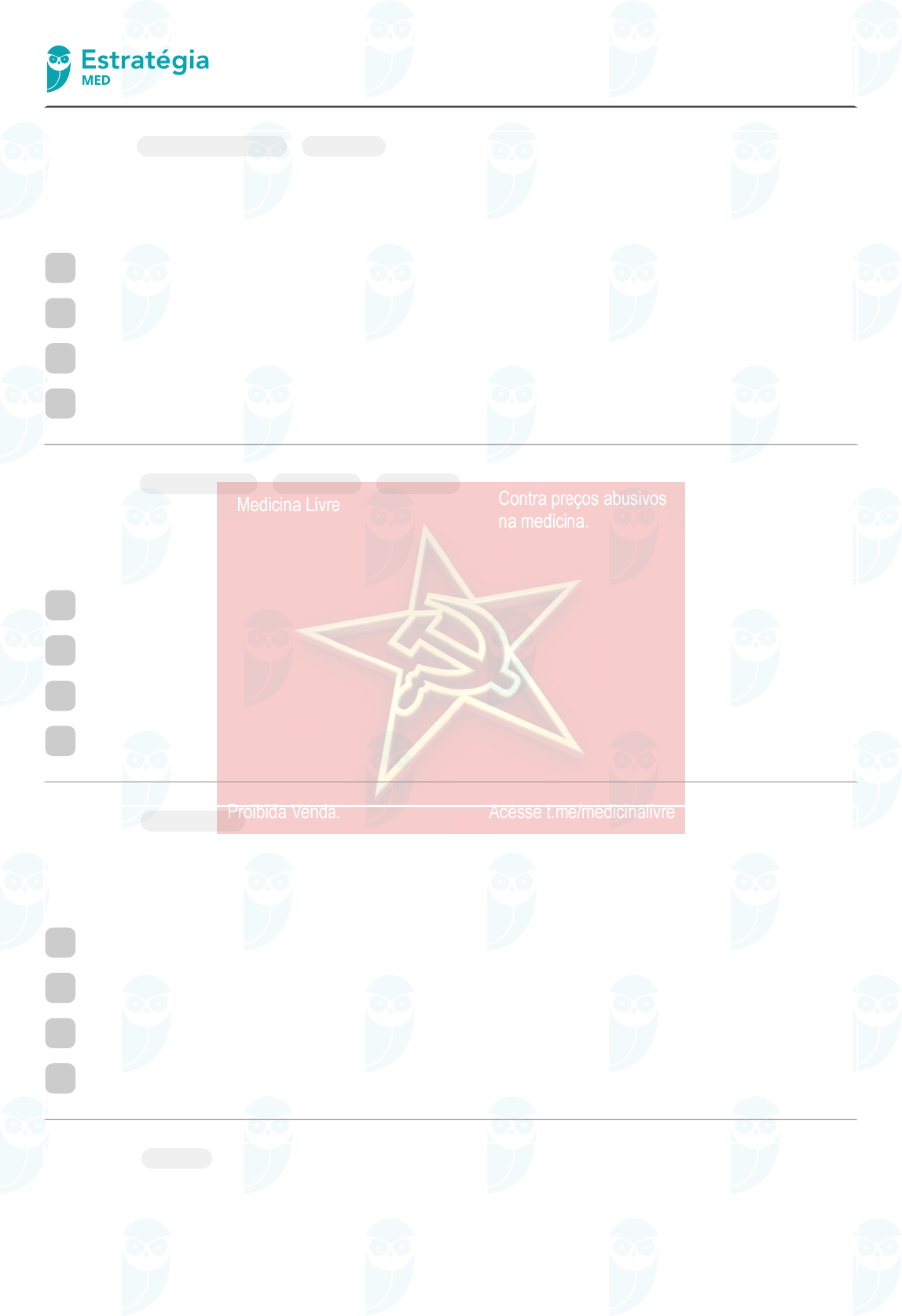 UNIFESP 2023 At.me/medicinalivre cessar Lista Questão 1 Cardioversão elétrica Cardiologia Mulher, 45 anos de idade, é admitida no PS com palpitações há 2 horas. Sem outras queixas. Exame físico: PA = 110/70 mmHg; FC = 148 bpm. ECG com flutter atrial com resposta ventricular 2:1. Qual é a conduta mais adequada para a reversão da arritmia? A Desfibrilação elétrica. B Metoprolol intravenoso. C Cardioversão elétrica. D Adenosina intravenosa. 4000183199 Questão 2 Sopros sistólicos Exame f ísico Cardiologia Homem, 65 anos de idade, apresenta cansaço, falta de ar e edema de membros inferiores há 2 meses. Exame físico: sopro sistólico em crescendo-decrescendo na borda esternal superior esquerda, como paciente sentado e inclinado para frente. Qual é a doença valvar mais provável? A Estenose aórtica. B Dupla lesão aórtica. C Dupla lesão mitral. D Insuficiência mitral grave. Essa questão possui comentário do professor no site 4000183198 Questão 3 Endocrinologia Mulher, 35 anos de idade, comparece em consulta com exame de TSH solicitado por outro médico. A paciente não apresenta queixas. Exame físico: IMC = 29,5 kg/m², tiroide de difícil palpação; sem outras alterações. TSH = 6,5 mUI/L (VR 0,45-4,5). Qual é a conduta mais adequada? A Solicitar dosagem de TSH em 2 a 3 meses. B Solicitar dosagem de T4 livre, T3 e anticorpo antitiroperoxidase. C Iniciar o tratamento com 1,6 mcg/kg/dia de levotiroxina. D Prosseguir a investigação com ultrassonografia da tiroide. 4000183197 Questão 4 Vigilância Paciente com doença do re uxo gastroesofágico de longa data, assintómatico após 5 anos de uso de omeprazol. A endoscopia digestiva alta atual mostra permanência de lesão esofágica compatível com esôfago de Barrett, com biópsias revelando ausência de displasia. Quando deve ser realizada a próxima endoscopia? https://med.estrategia.com/cadernos-e-simulados/cadernos/ee621863-6773-400f-97d2-d6ac3fd0d8a0 A Entre 3 e 5 anos. B Em 6 meses. C Em 12 meses. D Somente se os sintomas retornarem. 4000183196 Questão 5 Hiperaldosteronismo Hiperaldosteronismo primário Cardiologia Mulher, 40 anos de idade, tem diagnóstico de hipertensão arterial há 5 anos e faz uso de losartana 100 mg/dia, hidroclorotiazida 25 mg/dia e amlodipina 5 mg/dia. Traz MRPA com médias de PA de 152/96 mmHg. Exame físico: PA 150/90 mmHg, FC 70 bpm; IMC 23 kg/m²; sem outras alterações. Exames laboratoriais: creatinina = 0,7 mg/dL (VR 0,6- 1,2), potássio = 3,0 mEq/L (VR 3,5-5,5), sódio = 138 mEq/L (VR 135-145). Qual é a investigação inicial mais adequada para estabelecer a etiologia da hipertensão arterial? A Dosagem de aldosterona plasmática e atividade da renina plasmática. B Dosagem de cortisol sérico após 1 mg de dexametasona. C Dosagem de cortisol em urina de 24 horas em 3 amostras. D Tomografia computadorizada de abdome com protocolo para feocromocitoma. Essa questão possui comentário do professor no site 4000183195 Questão 6 Colangite esclerosante primária CEP Retocolite Ulcerativa Homem, 45 anos de idade, apresenta icterícia de longa duração, sem sinais de insu ciência hepática ao exame físico. Exames laboratoriais mostram transaminases normais e fosfatase alcalina 4 vezes acima do limite superior da no rmalidade. Recentemente, iniciou quadro de diarreia muco sanguinolenta com 4 episódios ao dia e discreto emagrecimento. Quais são as hipóteses diagnósticas mais prováveis? A Cirrose hepática e amebíase. B Hepatite autoimune e doença de Crohn. C Colangite esclerosante primária e retocolite ulcerativa. D Câncer de cólon e metástases hepáticas. 4000183194 Questão 7 Quadro clínico da leucemia linf oide crônica LLC Diagnóstico da leucemia linf oide crônica LLC Homem, 82 anos de idade, assintomático, apresenta hemograma com 154.000 linfócitos maduros/mm³, Hb de 11,2 g/dL (padrão normocítico e normocrômico) e 210.000 plaquetas/mm³. Exame físico sem alterações. Qual é a hipótese diagnóstica mais provável e a conduta mais adequada para confirmá-la? A Linfoma linfocítico agudo; imunofenotipagem de sangue periférico. B Leucemia linfocítica aguda; PET-TC oncológico e cariótipo de medula óssea. C Leucemia linfocítica crônica agudizada; mielograma. D Leucemia linfocítica crônica; imunofenotipagem de sangue periférico. Essa questão possui comentário do professor no site 4000183193 Questão 8 Manejo inicial e pacotes Homem, 54 anos de idade, hipertenso, é trazido ao PS com quadro de febre e rebaixamento de nível de consciência. Apresenta dor em flanco direito, disúria e polaciúria há três dias. Exame físico: FC = 120 bpm; PA = 80/40 mmHg; T = 38 ºC; tempo de enchimento capilar = 5 segundos. Exames laboratoriais: hemograma com leucócitos = 19.000 cél/mm³ (desvio à esquerda), creatinina = 2,7mg/dL e lactato arterial = 36mg/dL; urina 1 com leucocitúria, hematúria e presença de nitrito. Considerando a hipótese diagnóstica mais provável e as orientações da Campanha de Sobrevivência a Sepse de 2021, qual é a conduta imediata mais adequada? A Iniciar ceftriaxona e manter por pelo menos 10 dias B Coletar hemoculturas e urocultura assim que houver estabilidade hemodinâmica. C Fazer expansão volêmica com cristaloides para atingir 30mL/Kg nas primeiras 3 horas. D Administrar noradrenalina em dose inicial 0,1 mcg/kg/min. 4000183192 Questão 9 Dermatologia Tratamento Apresentação clínica Mulher, 56 anos de idade, refere crescimento progressivo de lesão na face há 3 anos. Ao exame dermatológico, apresenta pápula da cor da pele de 5 milímetros e superfície perlácea na região malar direita com telangiectasia na porção inferior. Qual é o diagnóstico mais provável e a conduta mais adequada? A Carcinoma espinocelular; radioterapia local. B Melanoma extensivo superficial; exérese com margem de 10 milímetros. C Queratoacantoma; criocirurgia com halo de 5 milímetros. D Carcinoma basocelular; exérese com margem d