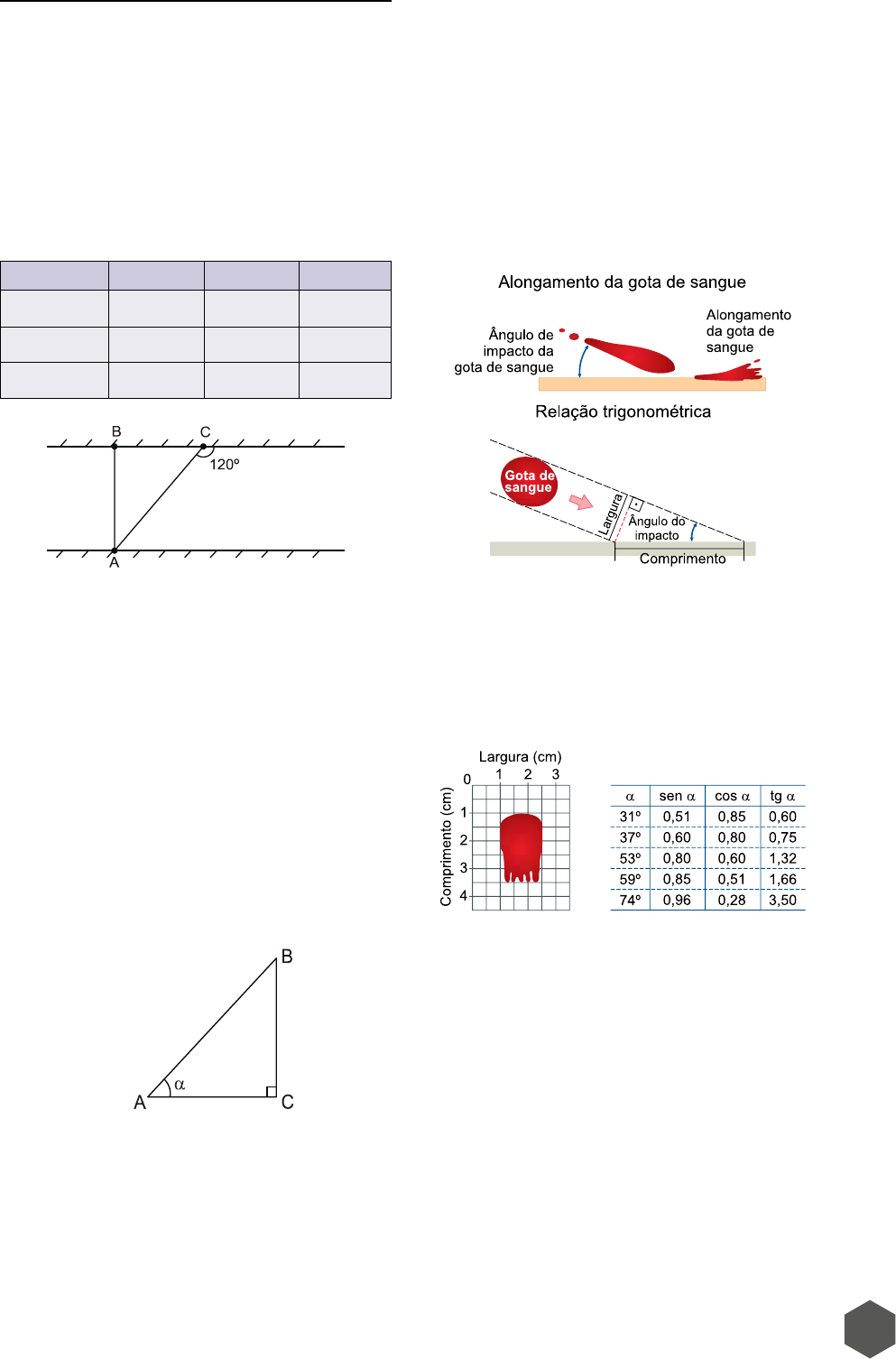 363363 exeRcícios 1. (CFT-MG) O percurso reto de um rio, cuja cor- renteza aponta para a direita, encontra-se representado pela figura abaixo. Um nadador deseja determinar a largura do rio nesse tre- cho e propõe-se a nadar do ponto A ao B, con- duzindo uma corda, a qual tem uma de suas extremidades retida no ponto A. Um obser- vador localizado em A verifica que o nadador levou a corda até o ponto C. Dados: a 30º 45º 60º sena 1 __ 2 √ __ 2 ___ 2 √ __ 3 ___ 2 cosa √ __ 3 ___ 2 √ __ 2 ___ 2 1 __ 2 tga √ __ 3 ___ 3 1 √ __ 3 Nessas condições, a largura do rio, no trecho considerado, é expressa por: a) 1 __ 3 —— AC . b) 1 __ 2 —— AC . c) √ __ 3 ___ 2 —— AC . d) 3 √ __ 3 ____ 3 —— AC . 2. (UFJF) Considere um triângulo A ̂ BC retângu- lo em C e a o ângulo BAC. Sendo —— AC = 1 e sen(a) = 1 __ 3 , quanto vale a medida da hipote- nusa desse triângulo? a) 3 b) 2 √ __ 2 ____ 3 c) √ ___ 10 d) 3 √ __ 2 ____ 4 e) 3 __ 2 3. (Unesp 2020) Uma das finalidades da Ciência Forense é auxiliar nas investigações relativas à justiça civil ou criminal. Observe uma ideia que pode ser empregada na análise de uma cena de crime. Uma gota de sangue que cai perfeitamente na vertical, formando um ângulo de 90º com a horizontal, deixa uma mancha redonda. À me- dida que o ângulo de impacto com a horizontal diminui, a mancha fica cada vez mais longa. As ilustrações mostram o alongamento da gota de sangue e a relação trigonométrica envol- vendo o ângulo de impacto e suas dimensões. (Ana Paula Sebastiany et al. “A utilização da Ciência Forense e da Investigação Criminal como estratégia didática na compreensão de conceitos científicos”. Didáctica de la Química, 2013. Adaptado.) Considere a coleta de uma amostra de gota de sangue e a tabela trigonométrica apre- sentadas a seguir. De acordo com as informações, o ângulo de impacto da gota de sangue coletada na amostra foi de a) 37º b) 74º c) 59º d) 53º e) 31º 4. (UFPB) Em parques infantis, é comum encon- trar um brinquedo, chamado escorrego, consti- tuído de uma superfície plana inclinada e lisa (rampa), por onde as crianças deslizam, e de uma escada que dá acesso à rampa. No parque de certa praça, há um escorrego, apoiado em 364364 um piso plano e horizontal, cuja escada tem 2 m de comprimento e forma um ângulo de 45º com o piso; e a rampa forma um ângulo de 30º com o piso, conforme ilustrado na figura a seguir. De acordo com essas informações, é correto afirmar que o comprimento (L) da rampa é de: a) √ __ 2 m. b) 2 √ __ 2 m. c) 3 √ __ 2 m. d) 4 √ __ 2 m. e) 5 √ __ 2 m. 5. (Unicamp 2020) A figura abaixo exibe o tri- ângulo ABC, em que AB = BC e —— AD é uma al- tura de comprimento h. A área do triângulo ABC é igual a a) ℎ2. b) √ __ 2 ℎ2. c) √ __ 3 ℎ2. d) 2ℎ2. 6. (UFPE) Considere os triângulos retângulos PQR e PQS da figura a seguir. Se RS = 100, quanto vale PQ? a) 100 √ __ 3 b) 50 √ __ 3 c) 50 d) (50 √ __ 3 ) _______ 3 e) 25 √ __ 3 365 PRONTUÁRIO PRodutos notáveis No cálculo algébrico, alguns produtos são frequentes, como: (x + y) · (x – y) = x2 – y2 Produto da soma pela diferença de dois termos (x + y) · (x + y) = (x + y)2 Quadrado da soma de dois termos (x – y) · (x – y) = (x – y)2 Quadrado da diferença de dois termos Quadrado da soma de dois termos (x + y)² = Exemplos: ProduTos noTáveis CompetênCia: 5 Habilidades: 19 e 21 AULAS 3 e 4