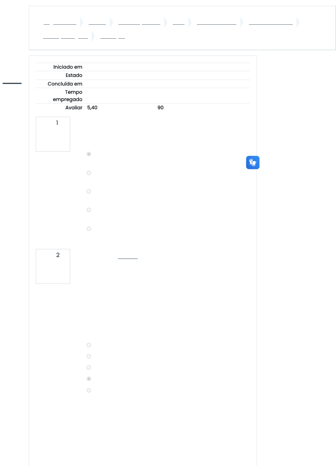 Página inicial Cursos GRADUAÇÃO EAD 2022 Módulo 4 - 2022 2022/4 - BIOÉTICA Avaliação Regular Avaliação Questão 1 Correto Atingiu 0,60 de 0,60 Questão 2 Correto Atingiu 0,60 de 0,60 Iniciado em quarta, 7 dez 2022, 20:44 Estado Finalizada Concluída em quarta, 7 dez 2022, 21:37 Tempo empregado 52 minutos 32 segundos Avaliar 5,40 de um máximo de 6,00(90%) No início do século 20, já sob regime republicano, foram criadas as duas primeiras instituições de ensino de Medicina Veterinária, quais eram essas instituições? Marque a alternativa correta. a. Escola de Veterinária do Exército e Escola Superior de Agricultura e Medicina Veterinária. b. Escolha Superior de Veterinária de Salvador e Escola Superior de Agricultura e Medicina Veterinária. c. Escola Superior de Agricultura e Medicina Veterinária e Escola de Veterinária da Marinha. d. Escola de Veterinária do Exército e Escola de Veterinária da Marinha. e. Todas estão corretas. A respeito da Bioética, leia atentamente as alternativas abaixo: I – Tem como objetivo indicar os limites e as finalidades da intervenção do homem sobre a vida. II – Contribui para que as pessoas determinem uma ponte entre o conhecimento científico e o conhecimento humano. III – Identificar os valores de referência racionalmente praticável, denunciar os riscos das possíveis aplicações. IV – Tem o intuito de evitar impactos negativos que a evolução tecnológica pode trazer sobre a vida.Estão corretas apenas as alternativas: a. I e III. b. Nenhuma das anteriores. c. II e IV. d. Todas as anteriores. e. I, II e III. https://ambienteonline.uninga.br/ https://ambienteonline.uninga.br/course/index.php https://ambienteonline.uninga.br/course/index.php?categoryid=1 https://ambienteonline.uninga.br/course/index.php?categoryid=851 https://ambienteonline.uninga.br/course/index.php?categoryid=857 https://ambienteonline.uninga.br/course/view.php?id=15619 https://ambienteonline.uninga.br/course/view.php?id=15619§ion=9 https://ambienteonline.uninga.br/mod/quiz/view.php?id=428215 https://ambienteonline.uninga.br/mod/resource/view.php?id=428191 javascript:void(0); https://ambienteonline.uninga.br/user/index.php?id=15619 https://ambienteonline.uninga.br/grade/report/index.php?id=15619 https://ambienteonline.uninga.br/course/view.php?id=15619&stopjsnav=1 https://ambienteonline.uninga.br/course/view.php?id=15619&datapref=1 https://ambienteonline.uninga.br/ https://ambienteonline.uninga.br/my/ https://ambienteonline.uninga.br/calendar/view.php?view=month&course=15619 javascript:void(0); https://ambienteonline.uninga.br/user/files.php https://ambienteonline.uninga.br/my/ Questão 3 Correto Atingiu 0,60 de 0,60 Questão 4 Correto Atingiu 0,60 de 0,60 Questão 5 Correto Atingiu 0,60 de 0,60 Qual conceito melhor define a palavra Bioética? a. Ciência da vida. b. Ética da ciência. c. Ciência dos bons e maus. d. Ciência da sobrevivência. e. Ética da vida. A Lei 5.550 publicada em 4 de dezembro de 1.968 trata: a. Registro do exercício da zootecnia a cargo do ministério da agricultura e fiscalização a cargo do conselho de medicina veterinária b. Registro e fiscalização da zootecnia a cargo do conselho de medicina veterinária. c. Todas estão corretas. d. Registro e fiscalização da medicina veterinária a cargo do ministério da agricultura. e. Registro e fiscalização da zootecnia a cargo do ministério da agricultura. Infrações cometidas ao código de ética serão classificadas em levíssimas, leves, sérias, graves e gravíssimas, de acordo com a análise dos fatos, causas do dano e suas consequências. Os infratores são julgados pelos Conselhos Regionais e as penalidades aplicadas de acordo com o grau de infração. Marque a alternativa que não corresponde a uma dessas penalidades. a. Suspensão do currículo lattes. b. Advertência confidencial. c. Suspensão do exercício profissional d. Censura pública. e. Censura confidencial. https://ambienteonline.uninga.br/mod/resource/view.php?id=428191 javascript:void(0); https://ambienteonline.uninga.br/user/index.php?id=15619 https://ambienteonline.uninga.br/grade/report/index.php?id=15619 https://ambienteonline.uninga.br/course/view.php?id=15619&stopjsnav=1 https://ambienteonline.uninga.br/course/view.php?id=15619&datapref=1 https://ambienteonline.uninga.br/ https://ambienteonline.uninga.br/my/ https://ambienteonline.uninga.br/calendar/view.php?view=month&course=15619 javascript:void(0); https://ambienteonline.uninga.br/user/files.php https://ambienteonline.uninga.br/my/ Questão 6 Correto Atingiu 0,60 de 0,60 Questão 7 Correto Atingiu 0,60 de 0,60 (Prefeitura de Itaiçaba/CE – 2012) É dever do médico veterinário: a. Aprimorar continuamente seus conhecimentos e usar o melhor do progresso científico somente em benefício dos animais; b. Relacionar-se com os demais profissionais, valorizando o respeito mútuo e a dependência profissional de cada um, buscando sempre o bem-estar próprio; c. Exercer a profissão aceitando em alguns casos a forma de mercantilismo; d. Exercer somente atividades que estejam no âmbito de seu conhecimento profissional. e. Denunciar pesquisas, testes, práticas de ensino ou quaisquer outras realizadas com animais que estejam em observância com os preceitos éticos e procedimentos adequados; Avalie a figura abaixo e marque a alternativa correta, que corresponde ao método de eutanásia aceito indicado pela figura. a. Método físico: deslocamento cervical. b. Método químico: decapitação. c. Método químico: deslocamento cervical. d. Método físico: decapitação. e. Método físico: exsanguinação. Comentário: Questão retificada! javascript:void(0); https://ambienteonline.uninga.br/user/index.php?id=15619 https://ambienteonline.uninga.br/grade/report/index.php?id=15619 https://ambienteonline.uninga.br/course/view.php?id=15619&stopjsnav=1 https://ambienteonline.uninga.br/course/view.php?id=15619&datapref=1 https://ambienteonline.uninga.