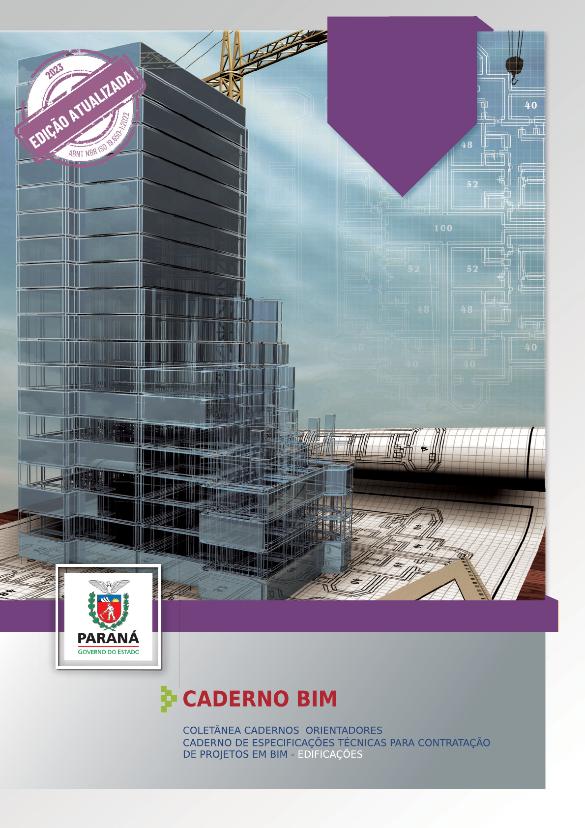 SECRETARIA DE INFRAESTRUTURA E LOGÍSTICA DEPARTAMENTO DE GESTÃO DA INOVAÇÃO PARA PLANOS, PROJETOS E OBRAS CADERNO 11 CURITIBA - 2023 2 Governador do Estado do Paraná Carlos Roberto Massa Júnior Secretário de Infraestrutura e Logística Sandro Alex Departamento de Gestão da Inovação DGI/SEIL Chefe de Departamento Lorreine Santos Vaccari Coordenadora Técnica Lucimara Ferreira de Lima Equipe Técnica Débora Fonseca Guimarães Nicolle de Souza Residentes Técnicos Eduardo Giangarelli Miyazaki Leonardo da Silva Azevedo Pamella Carolina de Souza Neves Theo Marcello Moro Zanardo Yago dos Santos Martins Estagiários Matheus Henrique Marcel Garcia de Souza Sarah Sipert Hennig 3 APRESENTAÇÃO A adesão ao BIM por parte de muitos países em âmbito global tem se dado, fundamentalmente, em função do enorme potencial que essa metodologia possui em proporcionar soluções para grandes desafios enfrentados pela construção civil, tais como: as dificuldades de compatibilização entre as diversas disciplinas de projetos; as falhas na comunicação e coordenação entre todos os envolvidos nos processos de execução de projetos e obras; os frequentes aditivos de prazo e valor nas contratações derivados de incompletude ou conflitos entre disciplinas de projetos; a ausência de elementos técnicos instrutores ou de detalhamento em nível adequado; o déficit de inovação tecnológica e/ou de métodos de gestão, organização e operação dos fluxos de trabalho dos envolvidos nos serviços de Arquitetura, Engenharia e Construção (AEC), fatos que somados, muitas vezes, levam à paralização de obras públicas. No Brasil, os problemas enunciados acima são, em parte, consequências de um processo tardio e lento de industrialização e padronização do setor da construção civil, justificado pela grande disponibilidade local de mão de obra de baixo custo, mas pouco especializada, o que contribuiu para a manutenção histórica da construção civil em padrões praticamente artesanais. As incertezas colocadas para as empresas do ramo da construção civil no Brasil a partir da recessão econômica inaugurada em 2015, agravada pela pandemia da covid- 19, tem levado muitos gestores a investir mais em tecnologias, inovações e engenharia de valor, visando obter maior eficiência e produtividade com o objetivo de se tornarem mais competitivos para um momento de retomada do crescimento econômico. Nesse contexto, surgiram novos adeptos ao uso da metodologia Building Information Modeling, como uma inovação disruptiva. O BIM ou Modelagem da Informação da Construção é definido como uma metodologia de trabalho baseada em processos colaborativos, multi e interdisciplinares que envolve profissionais de diversas áreas, como Arquitetura e Urbanismo, Engenharias, Tecnologia da Informação e Comunicação, entre outros, por meio do uso de diferentes plataformas tecnológicas que possibilitam a construção virtual e a simulação de empreendimentos. 4 Considerando que o BIM permeia todo ciclo de vida do empreendimento, desde o estudo de viabilidade até os processos de manutenção e gerenciamento de ativos, é possível afirmar que a adoção do BIM é uma forma de garantir maior transparência aos processos licitatórios e otimizar os procedimentos de fiscalização de projetos e obras, bem como, de gestão de ativos. Os ganhos com o uso do BIM são inúmeros e isso se comprova pelo fato de muitos países tornarem a utilização da metodologia uma obrigatoriedade, a exemplo do Chile, Singapura, Reino Unido, Estados Unidos, entre outros. Conforme Bonatto (2019), o BIM vem recebendo a atenção de um grande número de governos nacionais em todo o mundo, evidenciando que a utilização dessa metodologia é um caminho sem volta, cabendo a cada país e a cada entidade pertencente a eles, decidir se vai implementá-la antes ou depois dos demais. Convicto de que o BIM é um instrumento positivo para o setor da construção civil no Brasil, o Governo Federal vem editando decretos, desde 2017, com a clara intenção de criar um ambiente adequado para o investimento e a difusão do BIM como ferramenta relevante para a inovação do setor. Cumpre destacar o Decreto Federal nº 9.377/2018, responsável por instituir a Estratégia Nacional de Disseminação do Building Information Modelling, conhecida como Estratégia BIM BR, e por definir as finalidades da política pública criada, e também o Decreto Federal nº 10.306/2020, que estrutura uma das ramificações da Estratégia BIM BR ao dispor sobre o dever de utilização do BIM na execução de obras e serviços de engenharia e arquitetura realizados pela Administração Pública Federal. Nesse contexto, por iniciativa da Secretaria de Infraestrutura e Logística (SEIL), o Governo do Estado do Paraná instituiu, por meio do Decreto Estadual nº 3.080/2019, a Estratégia BIM PR: “PARANÁ RUMO À INOVAÇÃO DIGITAL NAS OBRAS PÚBLICAS” para o fomento e implantação BIM no Estado do Paraná até 2022, com a finalidade de promover a inovação tecnológica para melhoria da qualidade de projetos e obras públicas. Importante ressaltar que, desde 2015, com a criação do Laboratório BIM PR, a Secretaria de Estado de Infraestrutura e Logística (SEIL), por meio do Departamento de Gestão da Inovação para Planos, Projetos e Obras (DGI) têm buscado, a partir de pesquisa e desenvolvimento (P&D), favorecer e aprimorar os processos de gestão de 5 projetos e obras públicas com a adoção da metodologia BIM. Desde a sua criação, o DGI/LaBIM-PR tem promovido a capacitação e especialização de sua equipe técnica, dedicando-se ao estudo e desenvolvimento de padrões BIM para orientar as contratações públicas no Governo do Estado do Paraná. Nesse sentido, em 2018, a SEIL publicou o Caderno 11 - Especificações Técnicas para Contratação de Projetos em BIM, definindo as diretrizes para contratação e elaboração de projetos de edificaçõe