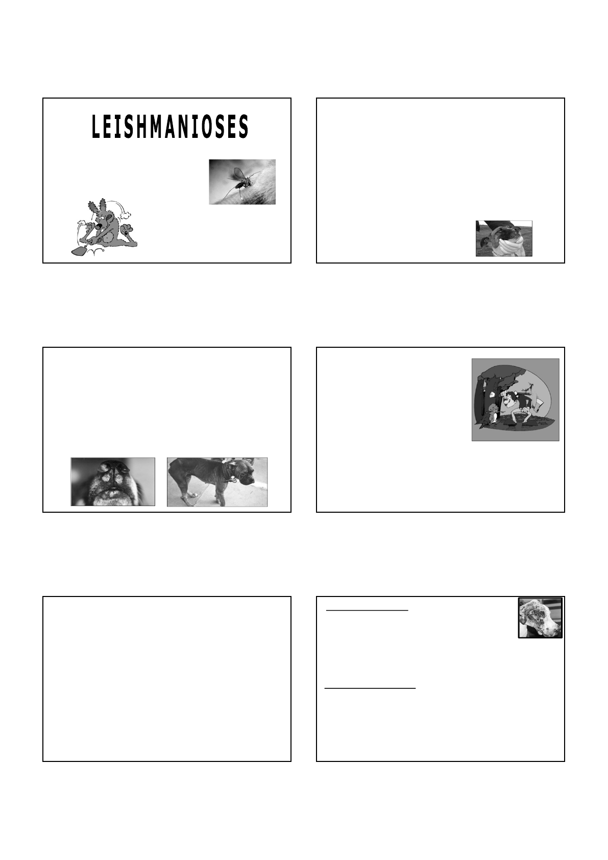 05/11/2019 1 Disciplina de Doenças Parasitárias Prof. Fernando Cristino Barbosa FAMEV - UFU LEISHMANIOSES FCB Causada por protozoário do Gênero Leishmania, transmitida por insetos vetores, os flebotomíneos, que afeta tanto seres humanos como animais domésticos e silvestres LEISHMANIOSES FCB FORMAS CLÍNICAS: Leishmaniose Tegumentar Canina – úlceras cutâneas e cutâneo-mucosa Leishmaniose Visceral Canina (LVC) – sinais sistêmicos FCB IMPORTÂNCIA: ZOONOSE – estão entre as mais importantes endemias do planeta LV: Constitui grave problema de saúde pública e é usualmente fatal quando não tratada FCB ETIOLOGIA: • Quadros clínicos variam de acordo com a espécie de Leishmania • Apesar da semelhança morfológica espécies diferentes casos clínicos distintos diferem quanto à bioquímica e componentes da membrana. • Parasitas intracelulares obrigatórios (macrófagos). • Espécies do gênero Leishmania divididem em complexos de acordo com a sintomatologia que causam (Mexicana, Braziliensis e Donovani). • Há dois sub-gêneros: Leishmania e Viannia. FCB Complexo Mexicana: sub-gênero: Leishmania - Leishmania (L.) amazonensis * - Leishmania (L.) mexicana * L. (L.) amazonensis - leishmaniose cutânea difusa no Brasil Complexo Braziliensis: sub-gênero: Viannia - Leishmania (Viannia) braziliensis * - L. (V.) guyanensis - L. (V.) lainsoni - L. (V.) shawi * Causam lesões cutânea-mucosa:Leishmaniose Cutânea 1 2 3 4 5 6 05/11/2019 2 FCB Complexo Donovani - Leishmania (L.) chagasi (Leishmania infantum) - Leishmania (L.) donovani (África e Ásia) Visceral (calazar canino) LEISHMANIOSE VISCERAL CANINA FCB Estágios de desenvolvimento • (a) – Promastigota – o flagelo emerge da parte anterior da célula • (d) – Amastigota – somente o cinetoplasto é visível. Não há flagelo. FCB Amastigota: • Geralmente encontrados em grupos no interior de macrófagos ou livres após rompimento destas células. • Também observados em células do sistema fagocítico mononuclear que estão presentes na pele, baço, fígado, medula óssea, linfonodos, mucosa etc... Promastigota: • Formas extracelulares encontradas no intestino dos insetos Promastigota penetrando um macrófago FCB • Flebotomíneos: Lutzomyia e Phlebotomus denominados de mosquito palha. Vivem em solo úmido em áreas de matas ou florestas. • A fêmea se alimenta de sangue de animais silvestres e/ou domésticos e de humanos. • Saliva do inseto tem atividade anti-inflamatória, anticoagulante, vasodilatadora e imunossupressora (interfere com a atividade microbicida dos macrófagos) auxilia na disseminação do parasita. • Gênero Lutzomyia (América Central e do Sul) • Gênero Phlebotomus (Europa, Ásia e norte da África) VETORES: FCB VETORES: LEISHMANIOSE CUTÂNEA - Lutzomyia whitmani - L. pessoai - L. intermedia LEISHMANIOSE VISCERAL - Lutzomyia longipalpis - Lutzomyia cruzi No Brasil: gênero Lutzomya (mosquito palha, cangalhinha ou birigui) - Hábito: Crepuscular/noturno - Durante o dia: local úmido e sombreado - Voo silencioso FCB LEISHMANIOSE CUTÂNEA - Cão LEISHMANIOSE VISCERAL - Cão, gato RESERVATÓRIOS DOMÉSTICOS: 7 8 9 10 11 12 05/11/2019 3 FCB LEISHMANIOSE CUTÂNEA - Roedores silvestres - Marsupiais - Tamanduá-mirim LEISHMANIOSE VISCERAL - Canídeos - Marsupiais RESERVATÓRIOS SILVESTRES: rato gambá tatu preguiça tamanduá FCB BIOLOGIA: FCB https://encrypted-tbn0.gstatic.com/images?q=tbn:ANd9GcTygw6e1HKDQQbACv2X21l7gs8cbLBoWeGImdpSesmX_GBiFUrl FCB EPIDEMIOLOGIA: Distribuição Geográfica: Cosmopolita LC - Regiões Tropicais e Subtropicais do mundo. * Reportada em 88 países: 90% concentra-se em 6 países (Afeganistão, Brasil, Irã, Peru, Arábia Saldita e Síria). LV – Ampla distribuição geográfica: Velho Mundo como no Novo Mundo (Américas) Brasil – esta entre os países que apresentam cerca de 90% de casos novos anuais FCB EPIDEMIOLOGIA: Fatores Epidemiológicos: Era considerada doença de áreas rurais Mudança do ciclo silvestre para urbano e periurbano. * Ação do homem no meio ambiente destruição dos ecótopos silvestres os vetores e hospedeiros silvestres migram para o peridomicílio. * Adaptação do parasita aos cães, equinos e roedores LV: Reemergente Urbanização FCB PATOGENIA: • Estado imune, genético e nutricional do hospedeiro pode alterar o curso da infecção. Ag T CD4: Th1 e Th2 • Diferenças quanto à virulência de Leishmania relacionada à componentes da membrana: lipofosfoglicanas (LPG) • auxilia na ligação da promastigota ao macrófago fagocitose colonização. • Funções imunomodulatórias diminuindo a atividade microbicida do macrófago. 13 14 15 16 17 18 05/11/2019 4 FCB • Facilita ligação da promastigota ao intestino do vetor parasita não é eliminado. • Proteção do parasita no intestino do vetor inibição da atividade proteolítica das enzimas. • Interfere na produção de citocinas pelas células do sistema imune (a resposta celular é a mais importante). • Inibe a apresentação de antígenos. • Modula negativamente a ativação e o reconhecimento do parasita por linfócitos T FCB PATOGENIA: LEISHMANIOSE TEGUMENTAR P. I. – 2 a 3 meses - Inoculação do parasita na derme multiplicação dos parasitas nos macrófagos da pele nódulos inflamatórios - Úlceras com bordas elevadas em moldura, fundo granulomatoso - Lesões cutâneas e cutâneo-mucosas, envolvendo cartilagens FCB LEISHMANIOSE VISCERAL P. I. – 3 a 7 meses, até anos - Multiplicação nos macrófagos da pele - Visceralização: Infecção das células do SMF, MO, baço, fígado, linfonodos - Inflamação com disfunção e aumento de volume dos órgãos acometidos Doença com componente imunomediado FCB Ag T CD4: Th1 e Th2 - Th1 INF gama e alfa, ITL2 e ITL12 ativação dos macrófagos controlando a infecção - Th2 ITL4 inibe receptores ITL2 e INF gama - R. Humoral não protetora e baixa R. Celular - hipergamaglobulinemia formação e deposição d