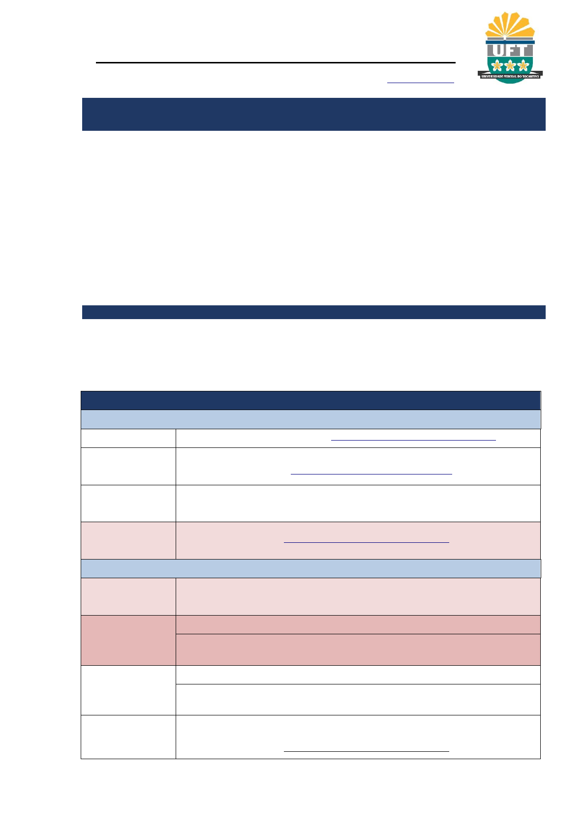 UNIVERSIDADE FEDERAL DO TOCANTINS PRÓ-REITORIA DE GRADUAÇÃO COORDENAÇÃO DE DESENVOLVIMENTO ESTRATÉGICO COMISSÃO DE PROCESSOS SELETIVOS Av. NS 15, 109 Norte, Plano Diretor Norte | 77001-090 | Palmas/TO (63) 3229-4445 | www.copese.uft.edu.br | copese@uft.edu.br Retificado pelo Edital Nº 105/2024, de 19 de agosto de 2024. 1 EDITAL N° 100/2024 – CDE/PROGRAD, DE 06 DE AGOSTO DE 2024 CONCURSO SELETIVO VESTIBULAR UFT 2025.1 O Pró-reitor Graduação da Fundação Universidade Federal do Tocantins – UFT, no uso de suas atribuições, e em consonância com o disposto na Resolução do Conselho Universitário (Consuni) nº 38, de 23 de abril de 2021, item 2.3 do Desafio II, itens 2.2.31 e 3.1.24 do Anexo I e item 2.3 do Anexo II torna público, pelo presente Edital, aprovado pela REITORIA, PROGRAD e CDE que estarão abertas as inscrições do Concurso Seletivo Vestibular UFT 2025.1 para o preenchimento de vagas dos cursos de graduação oferecidos por ambas Universidades, aos portadores de Certificado de Conclusão do Ensino Médio ou que tenham obtido certificado de conclusão no âmbito da modalidade de Educação de Jovens e Adultos; ou tenham obtido certificado de conclusão com base no resultado do Exame Nacional do Ensino Médio – ENEM; do Exame Nacional para Certificação de Competências de Jovens e Adultos – ENCCEJA ou de exames de certificação de competência ou de avaliação de jovens e adultos realizados pelos sistemas estaduais de ensino. 1. DAS DISPOSIÇÕES PRELIMINARES E DA VALIDADE 1.1. O Concurso Seletivo Vestibular UFT 2025.1, selecionará candidatos cujo ingresso será somente para o 1º semestre letivo de 2025. 1.2. As datas previstas para a execução das atividades deste concurso seletivo estão dispostas no cronograma do QUADRO I abaixo: QUADRO I – CRONOGRAMA DE ATIVIDADES 2024 – AGOSTO Dia 07 Publicação do Edital de Abertura (www.uft.edu.br/concursos-e-selecoes) Dia 08 (das 9h às 17h) Prazo para interposição de recurso (impugnação) contra o edital. Somente através de link específico no site www.uft.edu.br/concursos-e-selecoes Dia 16 (a partir das 17h) Divulgação da resposta aos recursos contra o edital de abertura (impugnação) (conforme item 14) Dia 20 (a partir das 9h) Início das Inscrições (www.uft.edu.br/concursos-e-selecoes) 2024 – SETEMBRO Dia 19 (até as 17h) Término das inscrições Dia 20 (até as 17h) Último dia para pagamento da taxa de inscrição Último dia para anexar os documentos referentes à solicitação de Atendimento Especial (conforme item 6) Dia 27 (a partir das 17h) Divulgação da relação preliminar das inscrições confirmadas Divulgação da relação preliminar às solicitações de Atendimento Especial (conforme item 6) Dia 30 (das 9h às 17h) Prazo para interposição de recursos contra a relação preliminar das inscrições confirmadas e contra o indeferimento da solicitação de atendimento especial (www.uft.edu.br/concursos-e-selecoes) mailto:copese@uft.edu.br http://www.copese.uft.edu.br/ http://www.copese.uft.edu.br/ http://www.copese.uft.edu.br/ http://www.copese.uft.edu.br/ UNIVERSIDADE FEDERAL DO TOCANTINS PRÓ-REITORIA DE GRADUAÇÃO COORDENAÇÃO DE DESENVOLVIMENTO ESTRATÉGICO COMISSÃO DE PROCESSOS SELETIVOS Av. NS 15, 109 Norte, Plano Diretor Norte | 77001-090 | Palmas/TO (63) 3229-4445 | www.copese.uft.edu.br | copese@uft.edu.br Retificado pelo Edital Nº 105/2024, de 19 de agosto de 2024. 2 2024 – OUTUBRO Dia 11 (a partir das 17h) Divulgação da Homologação das Inscrições (www.copese.uft.edu.br) Divulgação da resposta aos recursos contra o indeferimento da solicitação de Atendimento Especial – 17h (conforme item 6) Dia 18 (a partir das 17h) Divulgação dos Locais de Provas (data provável) Divulgação da Concorrência 2024 – NOVEMBRO Dia 17 Aplicação da Prova de Conhecimentos e da Prova de Redação (conforme Quadro III do subitem 8.8) Dia 18 (a partir das 17h) Publicação das provas e dos gabaritos provisórios (www.uft.edu.br/concursos-e-selecoes) Dia 19 (das 9h às 17h) Prazo para interposição de recursos contra as questões e gabarito provisório da prova de conhecimentos (www.uft.edu.br/concursos-e-selecoes) Dia 27 (a partir das 17h) Divulgação da resposta aos recursos contra as questões e gabarito provisório da prova de conhecimentos (data provável) Divulgação dos gabaritos definitivos (data provável) 2024 – DEZEMBRO Dia 09 (das 9h às 17h) Prazo para justificativa de ausência no dia da prova do Vestibular UFT 2025.1 – somente candidatos que tiveram a solicitação de isenção deferida e não compareceram para a realização da prova. Somente através de link específico disponibilizado no site www.uft.edu.br/concursos-e-selecoes (VER EDITAL DE ISENÇÃO) Dia 12 (a partir das 17h) Publicação do resultado provisório da análise das justificativas de ausência no dia da prova do Vestibular UFT 2025.1 (www.uft.edu.br/concursos-e-selecoes). (VER EDITAL DE ISENÇÃO) Dia 13 (das 9h às 17h) Prazo para interposição de recursos contra o indeferimento da justificativa de ausência no dia da prova do Vestibular UFT 2025.1 Somente através de link específico disponibilizado no site www.uft.edu.br/concursos-e-selecoes. (VER EDITAL DE ISENÇÃO) Dia 17 (a partir das 17h) Publicação do resultado final da análise das justificativas de ausência no dia da prova do Vestibular UFT 2025.1 (www.uft.edu.br/concursos-e-selecoes). (VER EDITAL DE ISENÇÃO) Dia 19 (a partir das 17h) Publicação do Resultado Final – (data provável) Divulgação do desempenho individual – (data provável) 2025 – JANEIRO Dia 22 Divulgação da convocação para cadastros e Matrículas em 1ª Chamada (data provável) Dias 27, 28 e 29 Cadastros e Matrículas em 1ª Chamada (data provável) Dia 31 Divulgação da convocação para cadastros e matrículas em 2ª Chamada (data provável) 2025 – FEVEREIRO mailto:copese@uft.edu.br http://www.copese.uft.edu.br/ http://www