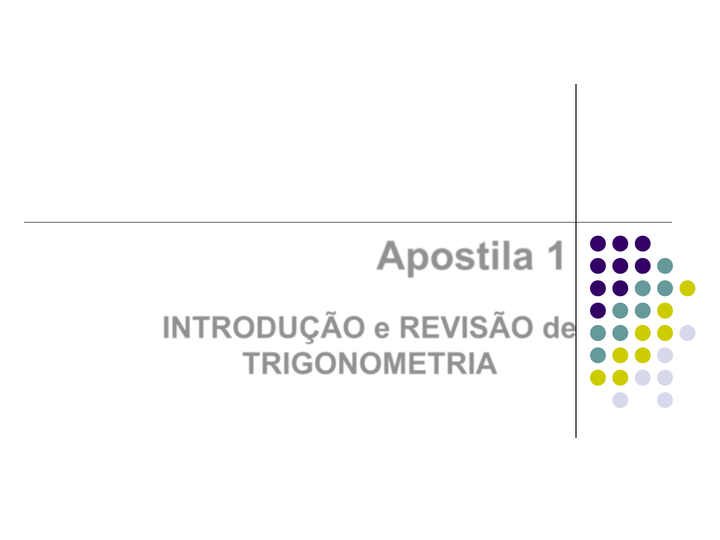 TOPOGRAFIA Prof. Antonio Estanislau Sanches Engenheiro Cartógrafo Apostila 1 INTRODUÇÃO e REVISÃO de TRIGONOMETRIA INTRODUÇÃO Topografia-Planimetria: definição, histórico, divisão, instrumentos utilizados, medição de ângulos e distâncias, orientação e georreferenciamento de plantas, métodos de levantamento topográfico planimétrico, cálculos, desenho topográfico, determinação de áreas. Topografia-Altimetria: difinições, métodos de levantamentos altimétricos, nivelamento geométrico, noções sobre cálculo de volumes. Topografia-GNSS: emprego do GNSS, metodolgias, pós- processamento. Topografia-Drones: emprego dos drones e da fotogrametria nos levantamentos topográficos. EMENTA INTRODUÇÃO CONTEÚDO PROGRAMÁTICO UNIDADE TÍTULO ASSUNTO C.H. 1 INTRODUÇÃO Noções da Forma da Terra, projeções cartográficas, sistemas de coordenadas, projeção UTM, cálculo de azimutes, distâncias, perímetro e área e determinação de coordenadas em cartas topográficas. Introdução ao estudo da topografia, seus objetivos e limitações. Modelos da forma da terra (esfera, elipsóide, geóide), conceito de vertical do lugar e desvio da vertical. Características dos documentos cartográficos e diferença entre cartas e mapas; Conceito de DATUM, noções de projeções cartográficas e suas propriedades, sistemas de coordenadas planas e geográficas, escalas, exercícios de transformação de escalas, noções sobre erro de graficismo e precisão de escala; Projeção UTM e carta ao milionésimo, índice de nomenclatura e articulação das folhas topográficas, noções de leitura de cartas e obtenção de coordenadas planas e geográficas em uma carta topográfica; Locação de pontos na carta a partir de suas coordenadas planas ou geográficas, procedimentos para determinação do azimute e distância entre dois pontos numa carta; Determinação do perímetro e área de um polígono locado numa carta topográfica, através da metodologia de Gauss, exercícios. 18 INTRODUÇÃO CONTEÚDO PROGRAMÁTICO UNIDADE TÍTULO ASSUNTO C.H. 2 POLIGONAÇÃO Estacionamento e leitura angular no teodolito, prática de estacionamento, determinação de leituras angulares e taqueometria, poligonação e irradiamento, prática de poligonação, cálculo da poligonal e ajustamento das coordenadas obtidas. Procedimentos básicos no estacionamento de um equipamento de topografia, centragem, nivelamento e focalização do instrumento. Leituras angulares horizontais e verticais usando a técnica de leitura PD (posição direta) e PI (posição inversa), cálculo das leituras angulares com a determinação do ângulo interno de uma visada; Exercícios práticos no estacionamento de um instrumento de topografia e realização de leituras angulares horizontais e verticais através da técnica de leitura PD e PI; Conceito de taqueometria na determinação de distâncias através dos fios estadimétricos dos teodolitos e com emprego de uma régua graduada (mira centimétrica). Exercícios em sala Conceito de transporte de coordenadas através da técnica de poligonação. Cálculo, fechamento e distribuição de erros lineares e angulares de uma poligonal; Conceito de irradiamento de pontos e cálculo das coordenadas dos pontos irradiados a partir da poligonal de apoio realizada através de exercício prático no levantamento de uma poligonal fechada, a partir de um ponto de coordenadas conhecidas e de um azimute inicial, utilizando a técnica da taqueometria na determinação das distâncias; Prática em sala de aula no cálculo e fechamento angular e linear da poligonal levantada no exercício prático, com o cálculo das coordenadas ajustadass. 24 INTRODUÇÃO CONTEÚDO PROGRAMÁTICO UNIDADE TÍTULO ASSUNTO C.H. 3 NIVELAMENTO Conceitos sobre nivelamento; Prática de nivelamento; cálculo dos desníveis e volumes obtidos pelo nivelamento. Noções sobre nivelamento, métodos de nivelamento e teoria utilizada nos nivelamentos empregados em obras de modo geral; Exercício prático sobre nivelamento utilizando o método das visadas extremas em um terreno do campus universitário; Prática no cálculo dos desníveis dos pontos nivelados, obtenção das curvas de nível através de interpolação e cálculo do volume de aterro ou corte; Cálculo e locação de uma cota de passagem. 18 INTRODUÇÃO BIBLIOGRAFIA BÁSICA US Navy - Construção Civil: Teoria E Prática. Topografia. Volume 1, Edit. Hemus 2005. MCCORMAC, J - Topografia livros técnicos e científicos 2007. BORGES, ALBERTO DE CAMPOS. Exercícios de Topografia. Edit. Edgard Blucher. 3 edição. 1975. 192p. JOLY, FERNADO. A Cartografia. Editora Papirus. 4 edição. 2001. 136p. INTRODUÇÃO BIBLIOGRAFIA COMPLEMENTAR GUERRA, A. J. T. 2006. Geomorfologia ambiental Bertrand Brasil. ZUQUETTE, LAZARO V. Cartografia: geotécnica. Editora Oficina de textos. 2004. BORGES, ALBERTO DE CAMPOS. Topografia. Volume 1 e Volume 2. Edit. Edgard Blucher. 2ª edição 1977.Casaca, João M. TOPOGRAFIA GERAL. São Paulo, LTC, 2007. CASACA, JOÃO. Topografia Geral. Editora LTC. Rio de Janeiro. 2007 . JACK MCCORMAC, Topografia. São Paulo, LTC, 2007. GONÇALVES, JOSÉ ALBERTO; MADEIRA, SÉRGIO. TOPOGRAFIA, Portugal, Lidel, 2008. LOCH, CARLOS; CORDINI, JUCILEI. Topografia Contemporânea. São Carlos, UFSC, 2007. ANTAS; VIEIRA; GONÇALO E LOPES. Estradas - Projeto Geométrico e de Terraplanagem. São Paulo, Interciência, 2010. Associação Brasileira de Normas Técnicas. NBR 13133: execução de levantamento topográfico. Rio de Janeiro: ABNT, 2010. 35 p. AVALIAÇÃO AP-1 Teremos 3 tarefas para a nota parcial da AP-1; Também 1 tarefa valendo p/ nota institucional AP-1. AP-2 Teremos 2 tarefas para a nota parcial da AP-2; Também 1 tarefa valendo p/ nota institucional AP-2. Observação As tarefas referente às notas PARCIAIS devem ser resolvidas e restituídas em formato PDF nas pastas das atividades correspondente à essa tarefa; Não serão aceitos trabalhos enviad