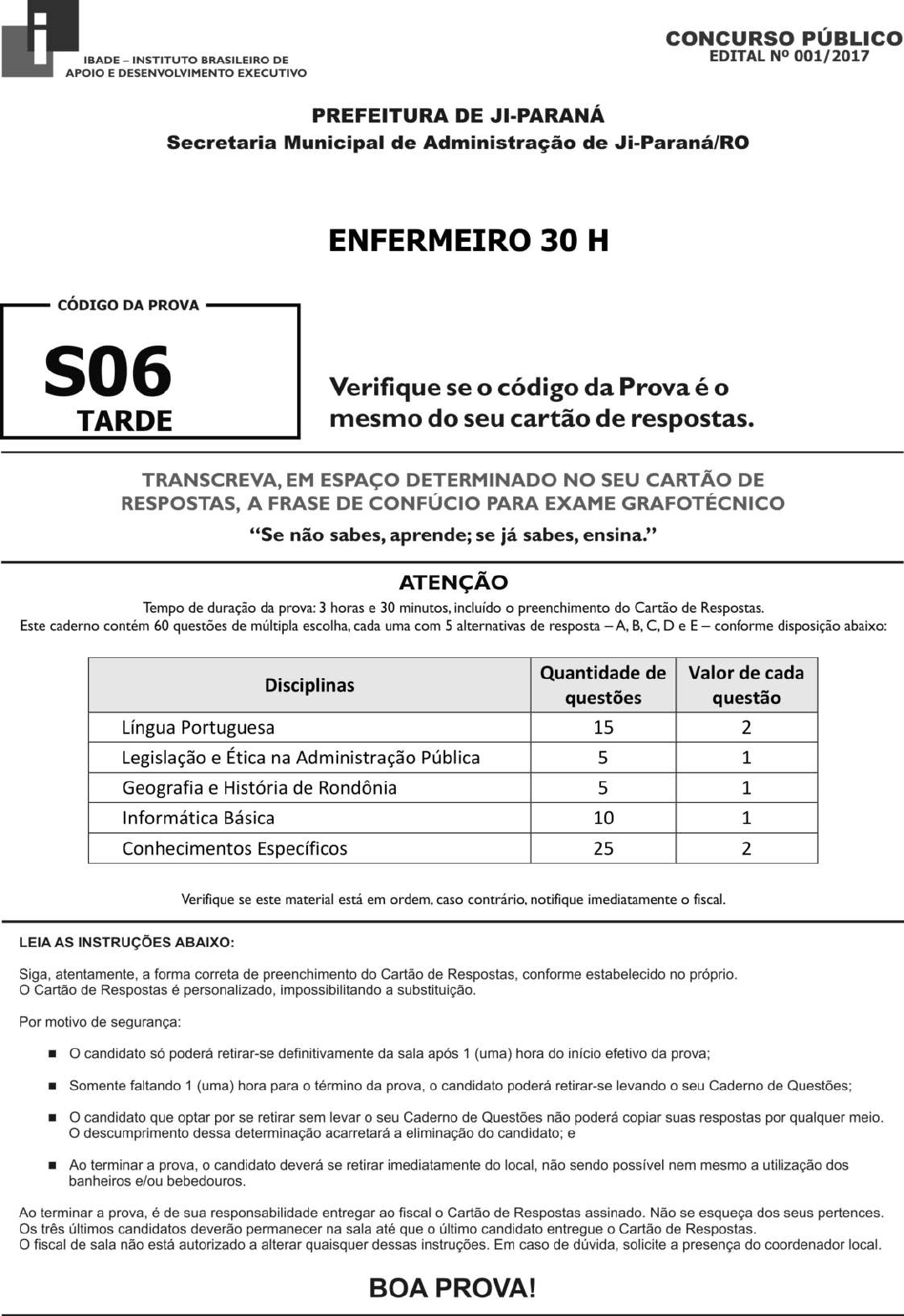 V 02 LÍNGUA PORTUGUESA 03 Questão 01 A) B) C) D) E) Questão 02 A) B) C) D) E) Questão 03 A) B) C) D) E) Questão 04 A) B) C) D) E) 04 Questão 05 A) B) C) D) E) Questão 06 A) B) C) D) E) Questão 07 A) B) C) D) E) Questão 08 A) B) C) D) E) Questão 09 A) B) C) D) E) Questão 10 A) B) C) D) E) 05 Questão 11 A) B) C) D) E) Questão 12 A) B) C) D) E) Questão 13 A) B) C) D) E) Questão 14 A) B) C) D) E) Questão 15 A) B) C) D) E) 06 LEGISLAÇÃO E ÉTICA NA ADMINISTRAÇÃO PÚBLICA Questão 16 A) B) C) D) E) Questão 17 A) B) C) D) E) Questão 18 A) B) C) D) E) Questão 19 A) B) C) D) E) 07 Questão 20 A) B) C) D) E) GEOGRAFIA E HISTÓRIA DE RONDÔNIA Questão 21 A) B) C) D) E) Questão 22 A) B) C) D) E) Questão 23 A) B) C) D) E) Questão 24 A) B) C) D) E) 08 Questão 25 A) B) C) D) E) INFORMÁTICA BÁSICA Questão 26 A) B) C) D) E) Questão 27 A) B) C) D) E) Questão 28 A) B) C) D) E) Questão 29 A) B) C) D) E) 09 Questão 30 A) B) C) D) E) Questão 31 A) B) C) D) E) Questão 32 A) B) C) D) E) Questão 33 A) B) C) D) E) Questão 34 A) B) C) D) E) Questão 35 A) B) C) D) E) 10 CONHECIMENTOS ESPECÍFICOS Questão 36 A) B) C) D) E) Questão 37 A) B) C) D) E) Questão 38 A) B) C) D) E) Questão 39 A) B) C) D) E) Questão 40 A) B) C) D) E) 11 Questão 41 A) B) C) D) E) Questão 42 A) B) C) D) E) Questão 43 A) B) C) D) E) Questão 44 A) B) C) D) E) Questão 45 A) B) C) D) E) 12 Questão 46 A) B) C) D) E) Questão 47 A) B) C) D) E) Questão 48 A) B) C) D) E) Questão 49 A) B) C) D) E) Questão 50 A) B) C) D) E) 13 Questão 51 A) B) C) D) E) Questão 52 A) B) C) D) E) Questão 53 A) B) C) D) E) Questão 54 A) B) C) D) E) Questão 55 A) B) C) D) E) Questão 56 A) B) C) D) E) Questão 57 A) B) C) D) E) 14 Questão 58 A) B) C) D) E) Questão 59 A) B) C) D) E) Questão 60 A) B) C) D) E)