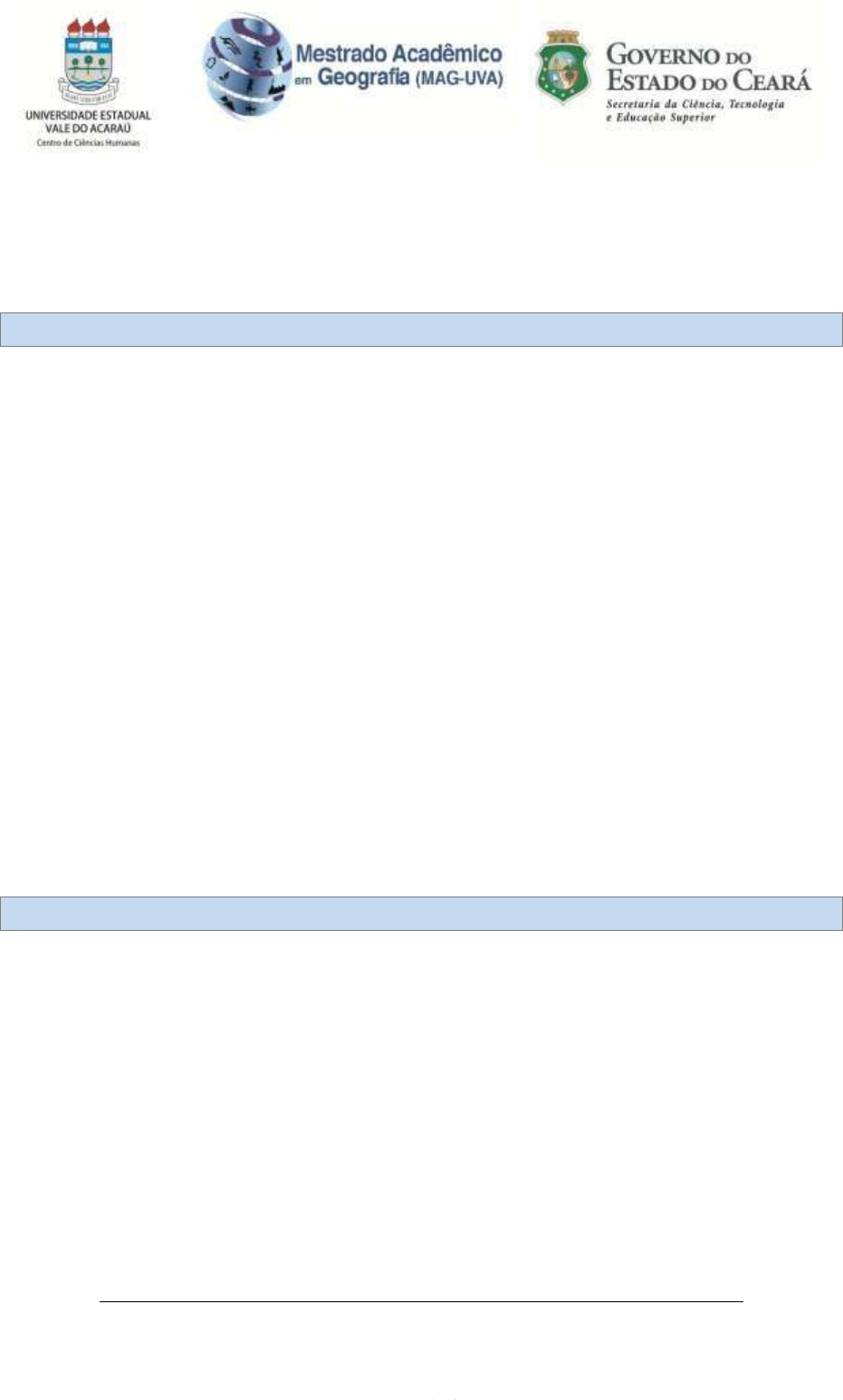 Recomendado pela CAPES – Ofício Nº 003-10/2012 e homologado pelo CNE (Port. MEC 11, de 04/01/2013, D.O.U de 08/02/2013, sec. 1, p.4) Av. Jonh Sanford, 1845 – Campus Junco – CEP.: 62.030-975 (88) 3611-6887 – Sobral (CE) Mestradogeografia@uvanet.br REGIMENTO INTERNO Art 1. O Programa de Pós-Graduação em Geografia – Mestrado Acadêmico (PROPGEO/UVA), vinculado ao Centro de Ciências Humanas, é regido pelo Estatuto e Regimento da Universidade Estadual Vale do Acaraú e por este Regimento Interno. Art 2. O PROPGEO/UVA caracteriza-se como Curso de Pós-Graduação Stricto Sensu no nível de mestrado e tem como área de concentração: Organização, Produção e Gestão do Território no Semiárido. Art 3. O PROPGEO/UVA tem como meta geral o fortalecimento acadêmico-científico das atividades de pesquisa e formação de profissional na área da Geografia, que será alcançada por meio dos seguintes objetivos específicos: I. Promover pesquisas que levem à ampliação do conhecimento geográfico e subsidiem as atividades de políticas públicas, planejamento e gestão territorial e ambiental na região do semiárido brasileiro e formação de professores; II. Formar profissionais críticos e especializados, capazes de contribuir, em termos científicos e tecnológicos, para o desenvolvimento social, ambiental e econômico da região; III. Contribuir com a melhoria da formação profissional dos Cursos de Geografia da UVA, em nível de mestrado e graduação, por meio da integração/articulação das ações de pesquisa, da Extensão e Ensino e demais atividades acadêmicas nacionais e internacionais desenvolvidas pelo PROPGEO/UVA. Art. 4 – O PROPGEO/UVA é vinculado ao Centro de Ciências Humanas - CCH. Art. 5 – A estrutura organizacional do PROPGEO/UVA tem a seguinte composição: a) Colegiado do Curso b) Coordenação c) Conselho do Curso d) Comissão de Bolsas e) Secretaria Art. 6 – O PROPGEO/UVA é administrado por três órgãos: um Colegiado, uma Coordenação e um Conselho. Art. 7 – O Colegiado é composto por todos os professores efetivos dos quadros docentes do PROPGEO/UVA, pesquisadores e colaboradores associados e uma representação discente, escolhida pelos seus pares. Capítulo I – DA NATUREZA E OBJETIVOS Capítulo II – DA ESTRUTURA ADMINISTRATIVA mailto:Mestradogeografia@uvanet.br Recomendado pela CAPES – Ofício Nº 003-10/2012 e homologado pelo CNE (Port. MEC 11, de 04/01/2013, D.O.U de 08/02/2013, sec. 1, p.4) Av. Jonh Sanford, 1845 – Campus Junco – CEP.: 62.030-975 (88) 3611-6887 – Sobral (CE) Mestradogeografia@uvanet.br Art. 8 – A Coordenação do PROPGEO/UVA é constituída pelos seguintes membros: a) Coordenador b) Coordenador Adjunto Art 9. A gestão administrativa do PROPGEO/UVA será executada pela Coordenação do Curso, composta por um Coordenador e Coordenador Adjunto, que terão autonomia de gerir em consonância com o presente regimento e deliberações aprovadas em colegiado e no Conselho do Mestrado Acadêmico em Geografia (CPROPGEO/UVA). § 1º. O Coordenador e Coordenador-Adjunto do PROPGEO/UVA serão escolhidos pelo colegiado em reunião especifica convocada por meio de Edital de eleição e seguirá o Regimento da UVA e normas da pós-graduação o Regimento da UVA e normas da pós-graduação § 2º. O coordenador e o coordenador-Ajunto serão eleitos pela maioria simples do colegiado do PROPGEO/UVA, obdecendo o quorum minimino de 50% de seus membros. § 3º A duração do tempo de exercício da coordenação será de dois anos, podendo ser prorrogada através de eleição. A prorrogação poderá ser realizada a cada dois anos, conforme decisão do colegiado e mantendo a eleição. Art 10. Cabe ao Coordenador do PROPGEO/UVA: I. Gerir administrativamente o que determina o Regimento do Curso, promovendo e viabilizando os mecanismos e trâmites burocráticos pertinentes ao cumprimento das atividades acadêmicas e letivas do mestrado; II. Presidir o CPROPGEO/UVA, no qual também tem o voto de qualidade; III. Representar o CPROPGEO/UVA no Conselho do Centro de Ciências Humanas, nas demais instâncias internas da Universidade Estadual Vale do Acaraú e fóruns externos relacionados com a pós-graduação em Geografia; IV. Fazer os encaminhamentos das deliberações do CPROPGEO/UVA, bem como da documentação de interesse da vida escolar dos alunos para apreciação dos órgãos competentes da Universidade Estadual Vale do Acaraú para registro; V. Preparar, com o auxílio do corpo docente, o calendário de atividades do PROPGEO/UVA e encaminhá-lo ao Conselho PROPGEO/UVA para aprovação final; VI. Zelar pelo cumprimento do calendário do PROPGEO/UVA; VII. Preparar a documentação relativa ao PROPGEO/UVA que possa vir a ser solicitada para fins de avaliação, financiamento, divulgação ou equivalente. Art.11. Da vacância da coordenação ocorrerá quando o Coordenador: a) Concluir o prazo de gestão; b) Aposentar; c) Renunciar; d) For declarada a sua incapacidade absoluta (jurídica); mailto:Mestradogeografia@uvanet.br Recomendado pela CAPES – Ofício Nº 003-10/2012 e homologado pelo CNE (Port. MEC 11, de 04/01/2013, D.O.U de 08/02/2013, sec. 1, p.4) Av. Jonh Sanford, 1845 – Campus Junco – CEP.: 62.030-975 (88) 3611-6887 – Sobral (CE) Mestradogeografia@uvanet.br e) For demitido; f) Falecer. Art. 12. A gestão político-acadêmica do PROPGEO/UVA será exercida pelo CPROPGEO/UVA que será assim composto: a) Cinco docentes permanentes do CPROPGEO/UVA, sendo que o Coordenador e o coordenador adjunto são membros natos. A eleição/indicação dos outros 3 membros, dar-se- á pelo conjunto dos docentes, com mandato de dois anos e possibilidade de uma recondução consecutiva por mais uma vez; b) Um representante discente eleito, juntamente com seu suplente, pelos seus pares, com mandato de um ano. Art. 13. São atribuições do CPROPGEO/UVA: I. Tomar ciência e acompanhar os processos relacionados a parcerias, con
