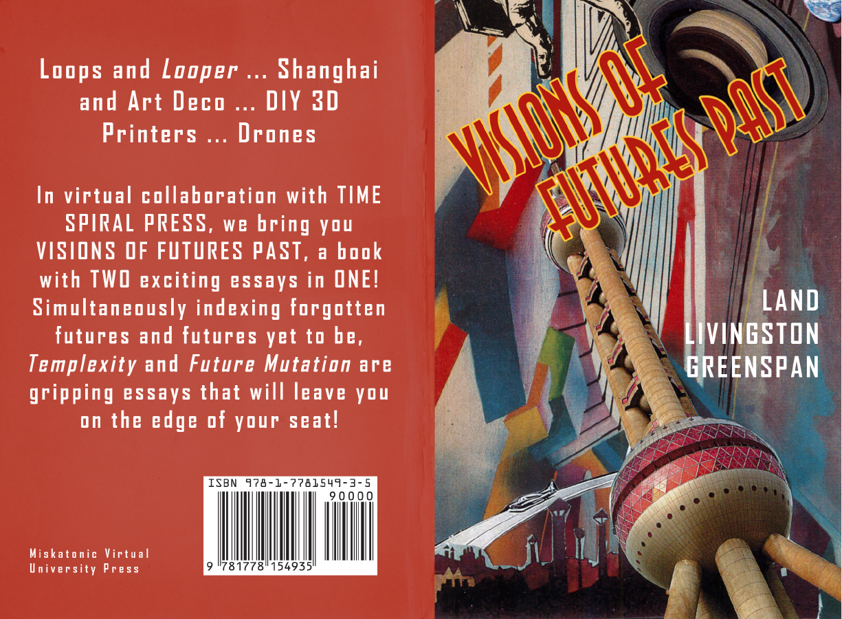 Visions of Futures Past Visions of Futures Past: Templexity and Future Mutation Edited by Peter Heft Texts by Nick Land, Suzanne Livingston, and Anna Greenspan Miskatonic Virtual University Press Arkham • London A virtual collaboration between Time Spiral Press + Miskatonic Virtual University Press. Templexity: Disordered Loops through Shanghai Time, originally published in 2014 and Future Mutation: Technology, Shanzai, and the Evolution of Species, originally published in 2015. Visions of Futures Past: Templexity and Future Mutation published by Miskatonic Virtual University Press, 2024 Arkham, Massachusetts and London, Ontario mvupress.net ISBN: 978-1-7781549-3-5 Text © respective authors Cover art: Peter Heft Formatting: Peter Heft & Contents: Templexity: Disordered Loops through Shanghai Time [-57–0] Editor’s Introduction [i–iv] Future Mutation: Technology, Shanzai, and the Evolution of Species [01–31] Wiener, Norbert. Cybernetics: Or Control and Communication in the Animal and the Machine. Cambridge, MA: MIT Press, 1985. Wasserstrom, Jeffrey. Global Shanghai, 1850–2010. Abingdon-on-Thames, UK: Routledge, 2009. Thorne, Kip. “Closed Timelike Curves.” In Proceedings of the 13th International Conference on General Relativity and Gravitation: Cordoba, Argentina, June 28–July 4, 1992. Edited by Reinaldo J. Gleiser, Carlos Kozameh, and Osvaldo Moreschi, 295–315. Bristol, UK: Bristol Institute of Physics, 1993. -57 [To stave off insanity—if only temporarily—flip to page i (Editor’s Introduction).] “Sphinx.” On Wikipedia. n.d. https://en.wikipedia.org/ wiki/Sphinx Science Fiction Studies Vol. 40, No. 1 (March 2013). https:// www.depauw.edu/sfs/covers/cov119.html Rye, Justin B. “A Guide to SF Chronophysics.” http:// jbr.me.uk/chrono.html Rimbaud, Arthur. “Rimbaud to Georges Izambard – Charleville May 13, 1871.” In Arthur Rimbaud: Complete Works. Translated by Paul Schmidt, 113–114. New York, NY: Harper Perennial, 2008. Powers, Tim. The Anubis Gates. New York, NY: Ace Books, 1983. Popnik, Barry. “History doesn’t repeat itself, but it does rhyme.” On The Big Apple. Published June 5, 2010. https://www.barrypopik.com/index.php/ new_york_city/entry/ history_doesnt_repeat_itself_but_it_does_rhyme Obias, Rudie. “Time Travel Movie Looper Will Be Longer In China.” On Giant Freakin Robot. Published June 25, 2012. http://www.giantfreakinrobot.com/scifi/time- travel-movie-looper-longer-china.html Newitz, Annalee. “Why Looper Could be the Most Well Thought-Out Time Travel Movie in Years.” On io9. Published July 18, 2012. https://io9.gizmodo.com/ why-looper-could-be-the-most-well-thought-out-time- trav-5926757 Musser, George. “Time Machines Would Run Afoul of the Second Law of Thermodynamics.” On Scientific American. Published May 23, 2014. https:// blogs.scientificamerican.com/critical-opalescence/time- machines-would-run-afoul-of-the-second-law-of- thermodynamics/ Moravec, Hans. “Time Travel and Computing.” On Carnegie Mellon University. Published 1991. https:// web.archive.org/web/20110717195721/https:// frc.ri.cmu.edu/users/hpm/project.archive/ general.articles/1991/TempComp.html Maruyama, Magoroh. “The Second Cybernetics: Deviation- Amplifying Mutual Causal Processes.” American Scientist -56 Vol. 5, No. 2 (1963): 164–179. Lussier, Germain. “Ten Mysteries in ‘Looper’ Explained by Director Rian Johnson.” On SlashFilm. Published September 28, 2012. https://www.slashfilm.com/ten- mysteries-in-looper-explained-by-director-rian- johnson/ Lu, Hanchao. Beyond the Neon Lights: Everyday Shanghai in the Early Twentieth Century. Oakland, CA: University of California Press, 2004. Lovecraft, H.P. “#440 To Clark Ashton Smith.” In Selected Letters III: 1929–1931. Edited by August Derleth and Donald Wandrei, 216–217. Sauk City, WI: Arkham House Publishers Inc., 1971. Lloyd, Seth, Lorenzo Maccone, Raul Garcia-Patron, Vittorio Giovannetti, and Yutaka Shikano. “The quantum mechanics of time travel through post-selected teleportation.” Physical Review D, Vol. 84, No. 2 (July 2011): 1–11. Kit, Borys. “‘Looper’ Director Rian Johnson on Reuniting With Joseph Gordon-Levitt, Tackling Time Travel and His Love of ‘Inception’ (Q&A).” On The Hollywood Reporter. Published September 28, 2012. https:// www.hollywoodreporter.com/heat-vision/looper-rian- johnson-joseph-gordon-levitt-bruce-willis-368902 Kanagaratnam, Tina. “Tess Johnston & Deke Erh: Shanghai’s Art Deco Pioneers.” On Shanghai Art Deco. Published June 25, 2014. http:// www.shanghaiartdeco.net/deke-erh-tess-johnston- shanghais-art-deco-pioneers/ Hitchcock, Henry-Russell and Philip Johnson. The International Style. New York, NY: W. W. Norton & Co., 1997. Hanson, Robin. “Tag Archives: Ems.” On Overcoming Bias. n.d. (http://www.overcomingbias.com/tag/ems) Gray, Richard. “Lecture Notes: Freud, ‘The Uncanny’ (1919).” On University of Washington. n.d. http:// courses.washington.edu/freudlit/Uncanny.Notes.html Friedman, John, Michael S. Morris, Igor D. Novikov, Fernando Echeverria, Gunnar Klinkhammer, Kip S. -55 Thorne, and Ulvi Yurtsever. “Cauchy problem in spacetimes with closed timelike curves.” Physical Review D, Vol. 42, No. 6 (September 1990): 1915–1930. Dickison, Mike. “Nine Problems with Looper (that Aren’t Brain-Melting Time Paradoxes).” On Giant Flightless Bird. Published October 14, 2012. https:// web.archive.org/web/20201127052324/http:// www.giantflightlessbirds.com/2012/10/nine-problems- with-looper-that-arent-brain-melting-time-paradoxes/ Brevet, Brad. “Got a Problem with ‘Looper’s Time Traveling Plot Holes? Let’s Talk about That…” On Coming Soon. Published October 1, 2012. https:// www.comingsoon.net/movies/news/570460-can-you- overlook-loopers-time-traveling-plot-holes-and-one- question-i-have-about-the-film “Bootstrap Paradox.” On Academic. n.d. https://en- academic.com/dic.nsf/enwiki/11857105 Billings, Lee. “Ti