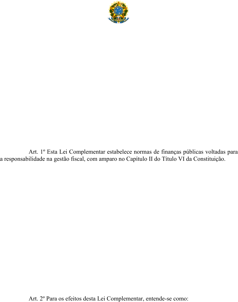 Art. 1º Esta Lei Complementar estabelece normas de finanças públicas voltadas para