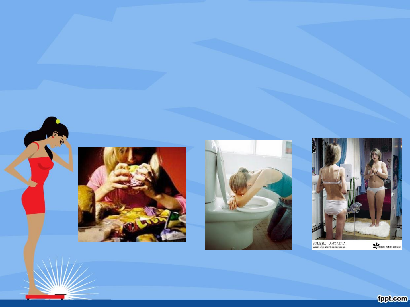 Transtornos Alimentares Professora: Mikaella Moura Disciplina: Endocrinologia Fonte: Escala de Figuras de Stunkard (EFS). Morgado; Ferreira, 2011) Imagem Corporal Construção multidimensional que representa como os indivíduos pensam, sentem e se comportam a respeito de seus atributos físicos. Insatisfação com o tamanho, a forma e os contornos do corpo predispõe à distorção da IC, onde este é apresentado como um dos fatores relacionados com desenvolvimento desses transtornos. (César et al, 2011) Definição do TA “Doenças psiquiátricas caracterizadas e insatisfação e distúrbios da imagem corporal e por graves alterações do comportamento alimentar e que afetam, na sua maioria, adolescentes e adultos jovens do sexo feminino, podendo originar prejuízos biológicos, psicológicos e aumento da morbidade e mortalidade.” Borges et al., 2006; Oliveira et al., 2003 • Alteração da consciência da forma corporal - visão distorcida do corpo; • Preocupação excessiva com peso; • Medo patológico de engordar Como reconhecer um transtorno alimentar ? TRANSTORNOS ALIMENTARES TRANSTORNOS ALIMENTARES - Atividades que privilegiam e enfatizam o estado de magreza do corpo (atores, modelos, bailarinas e desportistas); - Ex-obesas ou com excesso de peso que se tornam obsessivas por práticas frequentes de dietas e atividade física; População de Risco - História familiar de transtornos mentais: depressão, abuso de álcool e substâncias; - Baixa auto-estima, perfeccionismo, insegurança no relacionamento social, dificuldade em identificar e expressar sentimentos; TRANSTORNOS ALIMENTARES População de Risco TRANSTORNOS ALIMENTARES Causas de transtornos alimentares 1) FATORES BIOLÓGICOS: • Genética: • Herança familiar: 7 a 12x em parentes com TA; • Alterações endócrinas; • Disfunção serotonina, dopamina e norepinefrina (envolvidos na regulação do comportamento alimentar); TRANSTORNOS ALIMENTARES 2) FATORES SOCIAIS: • Ênfase social na estética da beleza; • Maior pressão sobre as mulheres: peso ideal magro; • Medida de sucesso e de bom desempenho depende da capacidade do indivíduo de manter peso ideal; Causas de transtornos alimentares Anorexia Nervosa “Transtorno alimentar caracterizado por uma restrição alimentar auto- imposta com um padrão bizarro, acentuada perda de peso, induzida e mantida pela pessoa, associada a um medo intenso de engordar”. Cordás, 2004 TRANSTORNOS ALIMENTARES 1- ANOREXIA NERVOSA - PREOCUPAÇÃO OBSESSIVA COM A PERDA DE PESO - RECEIO FÓBICO DO ALIMENTO - RESTRIÇÃO ALIMENTAR DRÁSTICA - PERDA CONSTANTE DE PESO - EXERCÍCIOS FÍSICOS COMPULSIVOS -PROVOCAÇÃO DE VÔMITOS, USO DE DIURÉTICOS E LAXANTES - USO DE INIBIDORES DE APETITE Características • Prevalência 0,3% a 1,0% mulheres e 0,1% homens; • Percepção da imagem corporal fortemente distorcida; • peso - conquista notável e sinal de extraordinária disciplina; • peso - inaceitável fracasso do autocontrole; • + comum na adolescência (13 a 17 anos); • ↑ mortalidade: 0-21% das anoréxicas , 57% dos casos suicídios. Cordás, 2004, Machado, 2009 1- ANOREXIA NERVOSA - DISTORÇÃO DA IMAGEM CORPORAL - FORMA DE OBTER SENSAÇÃO DE CONTROLE - RELAÇÕES FAMILIARES E IDENTIDADE - INFLUÊNCIAS SÓCIO-CULTURAIS Classificação Restritiva (300-700Kcal) Purgativa Cordás, 2004 TRANSTORNOS ALIMENTARES Anorexia nervosa • ANOREXIA TIPO RESTRITIVO: - o indivíduo utiliza jejum, dieta e exercício extenuante; - não apresenta episódio de ingestão excessiva de alimentos e/ou outro comportamento compensatório; • ANOREXIA TIPO PURGATIVO: – apresenta episódios de ingestão excessiva de alimentos e comportamentos compensatórios: vômitos auto- induzido, laxantes, diuréticos ou enemas. Diagnóstico da Anorexia Nervosa DSM-IV (Diagnostic and Stastistical Manual of Mental Disorders) ou CID-10 • Perda de peso ou recusa a manter o peso corporal acima do mínimo Considerado eutrófico para idade e estatura; • Medo intenso do ganho de peso e de se tornar obeso, apesar da subnutrição; •Perturbação na forma de vivenciar o baixo peso, influencia indevida do peso sobre a auto-avaliaçao e negação do baixo peso; •Nas mulheres presença de amenorréia por três ciclos consecutivos. Cordás, 2004 TRANSTORNOS ALIMENTARES •Traços personalidade: obsessividade, perfeccionismo, passividade, introversão •Baixa autoestima •Dificuldade de autonomia e identidade; •Reação às mudanças da adolescência Anorexia nervosa CARACTERÍSTICAS PSICOLÓGICAS TRANSTORNOS ALIMENTARES • Mulheres: parada da menstruação; • Homens: perda de interesse e potência sexual; • Início antes da puberdade: seios não se desenvolvem, genitais masculinos permanecem juvenis; • Risco futuro de osteoporose, infertilidade e baixa estatura na idade adulta; Anorexia nervosa Como ele se vê... Distorção da imagem corporal e o comportamento irracional de emagrecimento O comportamento é introvertido; Isolamento social com tendências a depressão, exagero nas atividades físicas mania de perfeição na escola e no trabalho grande cobrança em relação aos cuidados com o corpo. ANOREXIA NERVOSA COMPLICAÇÕES - Carências vitamínicas -Perda de elementos essenciais ( Potássio, sódio, cálcio, magnésio...) - Carências hormonais (com amenorréia em mulheres) - Consumo de massa muscular Tratamento • FOCO INICIAL: Recuperação do estado nutricional; • EQUIPE MULTIDISCIPLINAR: medico (clínico), medico psiquiatra, psicólogo e nutricionista; • Conscientização da família; • Avaliação semanal (peso, avaliação cardiovascular e exames laboratoriais); • Tratamento ambulatorial ou hospitalar; Machado, 2009 Critérios de internação Alterações clinicas: • bradicardia, • hipotensão arterial (impulsividade, instabilidade afetiva, sociabilidade, comportamentos de risco; • Associação frequente com abuso de substâncias; • Disfunção familiar: pais in