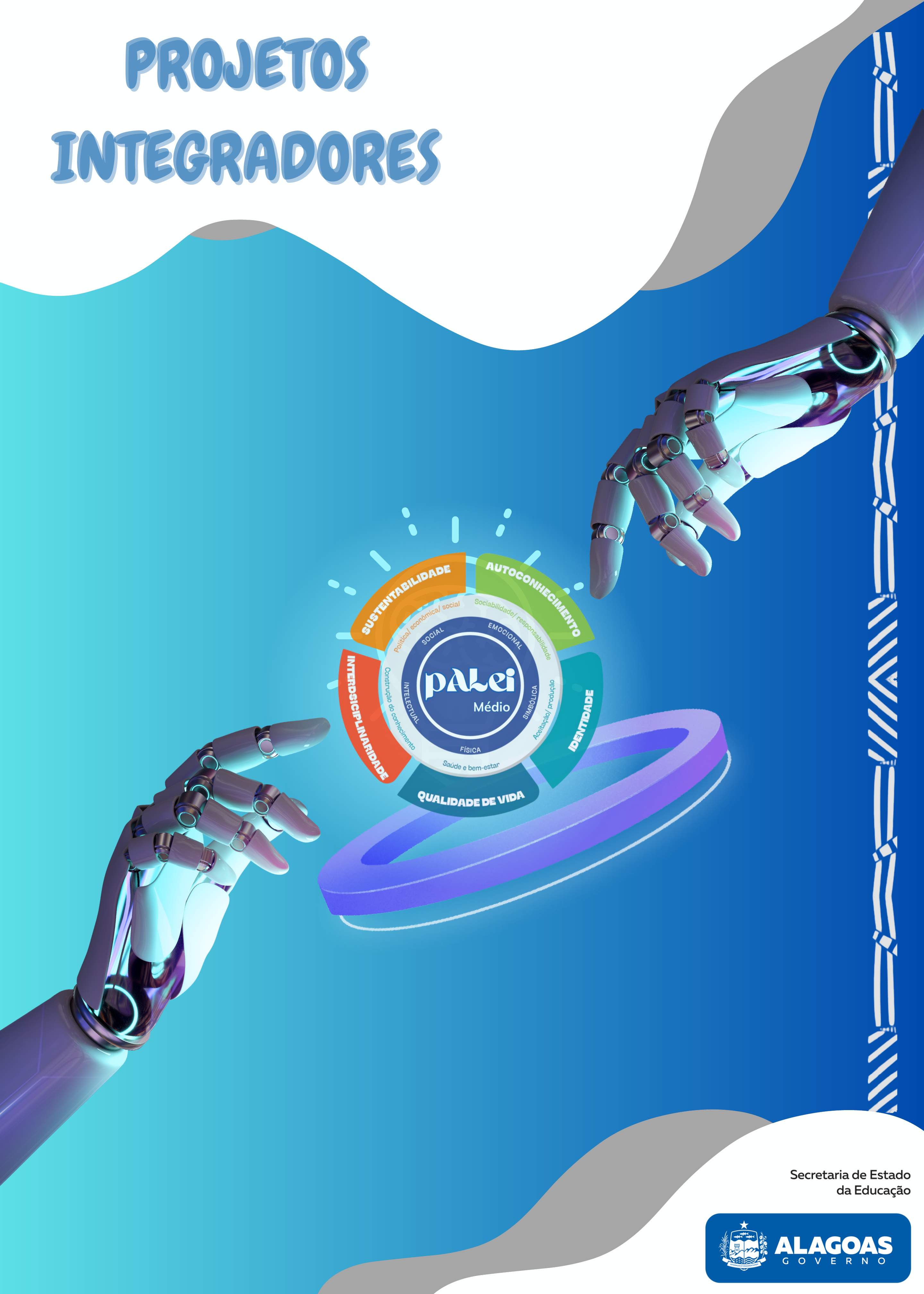 PROJETOSPROJETOSPROJETOS INTEGRADORESINTEGRADORESINTEGRADORES Paulo Suruagy do Amaral Dantas Governador do Estado de Alagoas Roseane Ferreira Vasconcelos Secretária de Estado da Educação de Alagoas Sueleide Barbosa Duarte Secretária Executivo do Desenvolvimento da Educação e Cooperação com os Municípios - SEDECOM Sandra Vitorino do Nascimento Secretária Executiva de Gestão de Rede Estadual de Ensino - SEGRE Ricardo Lisboa Martins Superintendente do Desenvolvimento do Ensino Médio e Políticas Educacionais - SUDEMPE Erivaldo Valério da Silva Gerente Especial de Fortalecimento da Educação em Tempo Integral e Complementar do Ensino Médio - GEFETI Equipe Técnica Adriana Maria da Silva Cássio Costa Donizete Medeiros de Melo Manoel Aniel dos Santos Neto 1ª Edição: Elaboração GEFETI Diagramação Adriana Maria da Silva Este documento visa orientar as Unidades de Ensino da Rede Pública Estadual de Educação no processo de implementação da Oferta de Projetos Integradores do pALei, presentes na flexibilização curricular para o Ensino Médio da Educação Integral de Tempo Integral. Esperamos que o mesmo ajude na construção de projetos que atendam às necessidades da comunidade escolar, bem como, e principalmente, dos estudantes, que são nossa maior missão, desenvolvendo e potencializando ainda mais sua criatividade, protagonismo e iniciativas em pesquisas científicas, beneficiando, valorizando e cultivando um senso de pertencimento ao lugar onde vivem Gerência Especial de Fortalecimento da Educação em Tempo Integral e Complementar do Ensino Médio - GEFETI Prezado/a Professor/a, PROJETOS INTEGRADORES Trabalhar com projetos de pesquisa junto aos estudantes possibilita estimular sua curiosidade pelo desenvolvimento da ciência, além de ensiná-los a buscar, analisar e gerar conhecimento científico, muitas vezes percebido por eles como algo já pronto. No contexto da educação básica, especialmente no Ensino Médio Integral, essa prática ganha ainda mais relevância, pois atende às diretrizes da Base Nacional Comum Curricular (BNCC) e às propostas do Programa Alagoano de Ensino Integral (pALei). O Ensino Médio Integral oferece uma formação abrangente, com a ampliação da carga horária, permitindo que os estudantes tenham mais tempo para desenvolver projetos inter, intra e transdisciplinares e aplicá-los em contextos reais. Nesse modelo, o currículo é organizado para integrar o conhecimento acadêmico com áreas como ciências, artes e cidadania, possibilitando que o estudante tenha uma educação mais significativa e alinhada às suas realidades. Por meio dos projetos de pesquisa, os alunos do Ensino Médio Integral são incentivados a se tornarem protagonistas de sua própria aprendizagem. Eles são desafiados a identificar problemas em seus territórios – como questões ambientais, culturais ou sociais – e a buscar soluções criativas e fundamentadas em metodologias científicas. Esse processo prepara-os tanto para a vida acadêmica quanto para o mercado de trabalho, desenvolvendo novos saberes como pensamento crítico, autonomia e resolução de problemas. Além disso, ao trabalhar com projetos de pesquisa, os estudantes vivenciam uma experiência educativa que promove o desenvolvimento de competências socioemocionais (soft skills) e cognitivas, reforçando o papel da escola como um espaço que articula o saber com a prática, fundamental para a formação integral proposta pelo Novo Ensino Médio. Trabalhando o projeto integrador No caso do Projeto Integrador (PI), a pesquisa será desenvolvida pelos estudantes com orientação de um professor orientador que irá acompanhar a turma em parceria de mais dois docentes colaboradores, de outras áreas do conhecimento (com formação em componente curricular diferente do docente orientador), estes agregarão na condução da pesquisa com a turma ampliando os saberes da temática ao qual a turma escolheu para ser orientada à realização da pesquisa. É imprescindível a presença dos docentes colaboradores para que se estabeleça a garantia da proposta inter, intra e transdisciplinar do Projeto Integrador, pois a ausência dos mesmo invalida o sucesso do projeto. O Projeto Integrador tem como objetivo identificar problemas no território em que a escola está inserida. Isso significa reconhecer situações que afetam negativamente a comunidade, como violações dos direitos humanos ou danos ao meio ambiente, e que possam ser resolvidas por meio de estratégias educacionais. O termo "território" se refere ao espaço geográfico, social e histórico com o qual a escola interage. Esse espaço pode ser entendido de forma ampla, incluindo desde uma turma específica da escola até o bairro ou município onde ela está localizada, toda a comunidade. PROJETOS INTEGRADORES Por meio dos projetos de pesquisa, promovemos o desenvolvimento de saberes essenciais, criando novas oportunidades de aprendizagem e incentivando a participação ativa dos alunos na construção do próprio conhecimento. O sucesso de uma pesquisa depende, em grande parte, de características do pesquisador, como curiosidade, capacidade de autocrítica, perseverança e paciência (Gil, 2002). PROJETOS INTEGRADORES Nesse sentido, o território é o local onde a escola realiza sua intervenção pedagógica e se constituirá como uma agente transformadora, e os projetos podem abranger os campos científico, cultural ou social. A ideia é que os projetos sejam relacionados ao contexto dos estudantes, incentivando-os a investigar um tema e buscar soluções para os problemas identificados em sua comunidade. Para que um projeto seja bem elaborado, se faz necessário entender conceitos básicos para o desenvolvimento de uma pesquisa tais como a diferença entre o problema e a hipótese. Problema, para Kerlinger (1980, p.35), “é uma questão que mostra uma situação necessitada de discussão, investigação, decisão ou solução”. J