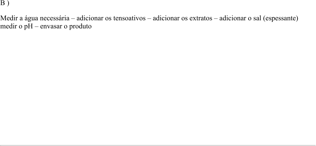 Avaliação II - Individual (Cod.:1024998) Código da prova: 94209609 Disciplina: Farmacotécnica II (20289) Período para responder: 03/03/2025 - 17/03/2025 Peso: 2,00 1 - [Laboratório Virtual – prática • Desenvolvendo um Xampu] O desenvolvimento de shampoos em farmácias de manipulação é uma prática comum. Os pacientes podem solicitar shampoos personalizados para atender necessidades específicas. Sobre o desenvolvimento de shampoos, assinale a alternativa CORRETA que apresenta o passo a passo que você desenvolveu nessa prática: A ) Adicionar o sal e o extratos na água – adicionar os tensoativos - medir o pH da mistura – completar com água necessária – envasar o produto. B ) Medir a água necessária – adicionar os tensoativos – adicionar os extratos – adicionar o sal (espessante) – medir o pH – envasar o produto. C ) Aquecer a água - adicionar o sal e o extratos na água – adicionar os tensoativos - medir o pH da mistura – envasar o produto. D ) Medir a água necessária – adicionar o sal (espessante) – adicionar os tensoativos – adicionar os extratos – envasar o produto. E ) Medir o pH dos ingredientes – medir a água – adicionar o sal – adicionar os extratos – envasar o produto. 2 - O cabelo é uma estrutura anexa da pele, seus fios são produzidos pelos folículos pilossebáceos, também chamados de folículo piloso. FONTE: HALAL, John. Tricologia e a química cosmética capilar: tradução. 5. ed. São Paulo: Cengage Learning, 2014. Sobre a fisiologia do cabelo, assinale a alternativa CORRETA: A ) As glândulas sebáceas e sudoríparas são responsáveis pela manutenção do pH e produção de sebo, respectivamente. 03/03/2025, 17:23 about:blank about:blank 1/6 B ) As células germinativas são responsáveis pelo crescimento do cabelo, enquanto os queratinócitos são responsáveis pela cor do cabelo. C ) Alguns folículos pilosos podem estar associados a glândulas sudorípras. D ) As células germinativas são responsáveis pelo crescimento do cabelo, enquanto os melanócitos são responsáveis pela cor do cabelo. E ) Não há vasos sanguíneos no folículo piloso sendo a sua nutrição feita por difusão 3 - O folículo pilossebáceo gera o cabelo, que pode ter diferentes formatos, que se encontram entre os extremos: reto e encaracolado. As fibras capilares são os principais constituintes do cabelo, proteínas ricas em enxofre, lipídios, água e melanina. FONTE: MANCILLA M., M. G. Cosmetología y patologías de la piel. Bogotá D.C., Fundación Universitaria del Área Andina. 100 p. 2017. Sobre a fisiologia do cabelo, analise as sentenças a seguir: I- A medula é a parte central do cabelo, não sofre ação dos produtos químicos. II- O córtex é a menor parte do cabelo. Nessa porção, encontram-se os melanina, responsável pela coloração. III- A cutícula é responsável pela força, flexibilidade e elasticidade do cabelo. Assinale a alternativa CORRETA: A ) II e III, apenas. B ) I, II e III. C ) I, apenas. D ) III, apenas. E ) I e II, apenas. 4 - Com base na natureza física e química do ativo existem estratégias de formulação que podem ser projetadas para melhorar a entrega de substâncias ativas, dentre as quais destaca-se a escolha adequada para veicular os 03/03/2025, 17:23 about:blank about:blank 2/6 IFAs. Em meio às formas semissólidas, encontramos os géis, as emulsões óleo em água e água em óleo, emulgéis ou géis creme, pomadas e as pastas. Sobre o exposto, avalie as asserções a seguir e a relação proposta entre elas: I- Dentre as diferentes bases utilizadas para veicular os princípios ativos, as emulsões são as mais convenientes. PORQUE II- São de natureza bifásica, o que permite a adição de ativos com base na solubilidade e estabilidade, permitindo ao formulador incorporar ativos lipofílicos e hidrofílicos na forma farmacêutica, mantendo a perfil de estabilidade otimizado. Assinale a alternativa CORRETA: A ) A asserção I é uma proposição verdadeira e a II é uma proposição falsa. B ) As asserções I e II são falsas. C ) A asserção I é uma proposição falsa e a II é uma proposição verdadeira. D ) As asserções I e II são verdadeiras, mas a II não é uma justificativa correta da I. E ) As asserções I e II são verdadeiras, e a II é uma justificativa correta da I. 5 - Os antigos egípcios faziam uso de substâncias, tais como o azeite de oliva, na intenção de fotoproteger sua pele, no entanto, seu comércio ocorreu apenas em 1928, e sua popularização deu-se na Segunda Guerra Mundial. FONTE: AZULAY, R.D. Dermatologia. 7. ed. Rio de Janeiro: Guanabara Koogan, 2080. p. 2017. Sobre os fotoprotetores solares, assinale a alternativa CORRETA: A ) Os filtros solares químicos são ideais pois não apresentam toxicidade ao organismo. B ) As substâncias orgânicas, também chamadas de bloqueadores solares, absorvem os fótons da radiação UV e dissipam a energia UV forma de energia térmica, o mais usual é o PABA. 03/03/2025, 17:23 about:blank about:blank 3/6 C ) O protetor solar ideal deve proteger contra as radiações UVA, UVB, UVC, infravermelha e luz visível, além de ter toque agradável e não manchar a roupa. D ) As substâncias inorgânicas são partículas minerais fotoestabilizadas que protegem a pele, inicialmente, pela reflexão e dispersão de fótons, criando uma barreira física na pele. E ) Os protetores são classificados em agentes inorgânicos (químicos) e orgânicos (físicos), conforme o mecanismo de ação para atenuar a radiação incidente. 6 - Para uma questão de regulamentação e segurançda, a ANVISA classificou os produtos cosméticos em dois graus (I e II). Esta classificação considera o seu uso e risco potencial. Sobre a classificação dos produtos cosméticos, assinale a alternativa CORRETA: A ) A classificação grau 1 trata-se de um produtos de risco potencial. B ) Protetor solar é cosmético grau 1. C ) A classificação gr