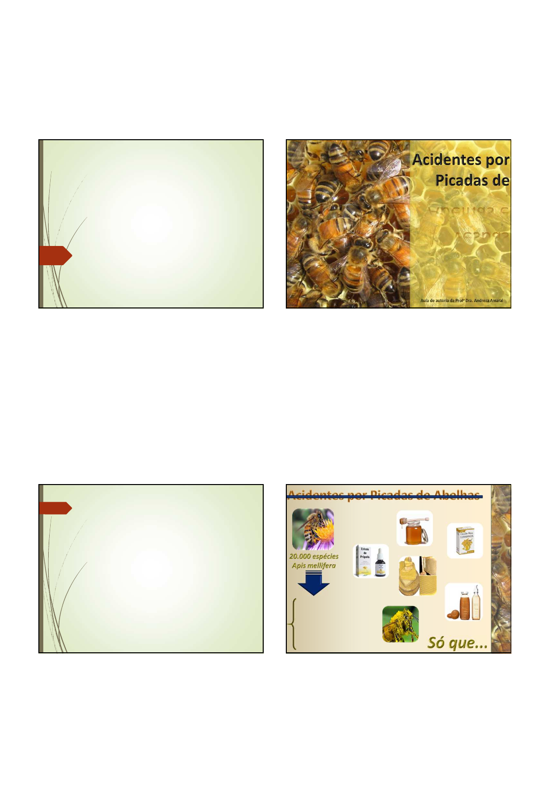 08/03/2020 1 Intoxicação por zootoxinas em animais domésticos: Abelhas, formigas, sapo Profa. Dra. Claudia D Monteiro Toma Toxicologia Veterinária Apidismo Abelhas e Vespas � Insetos himenópteros (2 pares de asas membranosas) � 2mm a 4 cm � Grande importância econômica 08/03/2020 2 � Imigrantes europeus – Sul do Brasil � Dóceis � � mel � Agressivas � � mel 08/03/2020 3 � São mais rápidas, mais excitáveis e mais nervosas que as européias � Não tende a picar quando retiram néctar e pólen das flores • Picam – defesa se são provocadas � Respondem rapidamente e atacam em enxames (15 a 20 segundos do ataque = + de 200 voando) � Se sentem ameaçadas por pessoas e animais a menos de 15 m da colméia • Vibrações - 30 m da colméia • Perseguem - 400 m ou mais � Colméias: cavidades pequenas em áreas protegidas (caixas, latas e baldes vazios, carros abandonados, madeira empilhada, moirões de cercas, galhos e ocos de árvores, garagens, muros e telhados) �Insetos com ferrões verdadeiros: • Família Apidae (Abelhas) • Família Vespidae (Vespas e Marimbondos) • Família Formicidae (Formigas) � Dividido em 2 partes: 1. Estrutura muscular e quitinosa: introdução do ferrão e injeção do veneno 2. Porção glandular: produção e armazenamento do veneno 08/03/2020 4 � Hemolítica � Cardiotóxica � Citotóxica � Neurotóxica Ação do Veneno Composição do Veneno � Melitina (50% ): maioria dos efeitos deletérios � Fosfolipase A2 (12%): principalmente efeito hemolítico � Fosfatase ácida: alergênica moderada � Histamina, hialuronidase, apamina e um fator degranuladores de mastócitos Rápida absorção e dispersão do veneno Substâncias vasoativas - � permeabilidade vascular Mecanismo de Ação do Veneno Hemólise Indireta 08/03/2020 5 Mecanismo de Ação do Veneno Sinais Clínicos � Áreas mais afetadas: ocular, nasal e oral � Cães mais acometidos (humanos): • Comportamento – latido e movimentação frequente � Cores escuras atraem mais abelhas: • Acidentes - � animais pelagem escuras � Três tipos de acidente: • Animais recebem uma ou poucas picadas • Animal sensível ou sensibilizado - reação de hipersensibilidade tipo I ou choque anafilático • Múltiplas picadas � Mais frequente � Reação inflamatória local Uma ou poucas Picadas Reação de hipersensibilidade ou Choque � Animal sensível (até picada única) � Dor, eritema, prurido e edema � Choque (aminas vasoativas): • Clínica da hipersensibilidade I • Hipotensão (relativa), taquicardia • Estresse respiratório (edema e broncoespasmo) Múltiplas Picadas � Mais grave � Ação sistêmica - toxinas veneno � Ferrões pelo corpo � Agitação � Náusea, êmese � Prostração � Hipotensão e taquicardia � Taquipnéia e edema pulmonar � Mialgia generalizada � Incoordenação, tremores e espasmos musculares � Nistagmos, convulsões e coma � Hematúria � Hemoglobinúria � Hematomas � Rabdomiólise � IRA 08/03/2020 6 Achados Laboratoriais � Hemograma: • � Ht, Hb e plaquetas • Leucocitose com neutrofilia, desvio à esquerda, linfopenia e eosinopenia � Urinálise: • Proteinúria, hemoglobinúria e hematúria • Leucócitos • Descamação celular � Bioquímico: • � ALT, CK, uréia e creatinina � Hemogasometria: • Acidose metabólica 08/03/2020 7 Tratamento � Não existe Anti-Veneno específico (Veterinária) � Tratamento – sintomático e de suporte � Fluidoterapia • Volemia e rim � Oxigenoterapia � Adrenalina 1:1000 (choque - 0,01 a 0,05mg/kg) � Anti-histamínicos • Cimetidina 5 a 10 mg/kg, IM ou IV, 8/8h • Cloridrato de prometazina 0,2 a 1 mg/Kg, SC Tratamento �Corticóides • Succinato de prednisolona sódica ou hidrocortisona: 50 a 150 mg/kg IV, repetir em 3 a 4 horas se necessário � Antibioticoterapia (imunossupressão) � Rabdomiólise – bicarbonato � Retirada dos ferrões • 2/3 do veneno permanecem no ferrão!! Tratamento �MONITORAR O ANIMAL!!! • Urinálise e monitorar a quantidade de urina produzida • Concentrações séricas de eletrólitos • Uréia e creatinina • Volemia – fluído ou sangue PROGNÓSTICO – Nº Picadas/ Kg de PV 14 picadas/Kg Bom 14 a 24 picadas/Kg Reservado � 24 picadas/Kg Mau (óbito) � 400 espécies de “vespas sociais” � Todas da subfamília Polistinae � Acidentes - 3 espécies 08/03/2020 8 �Insetos com ferrões verdadeiros: • Família Apidae (Abelhas) • Família Vespidae (Vespas e Marimbondos) • Família Formicidae (Formigas) TóraxCabeça Abdômen Pedículo Composição do Veneno � Mastoparanos: degranulam mastócitos e liberam catecolaminas � Fosfolipase A2: principalmente efeito hemolítico � Peptídeos quimiotáticos: quimiotaxia de neutrófilos e monócitos � Cininas: histamina e bradicininas (inflamação) � Hialuronidase: absorção e dispersão do veneno Tratamento Diagnóstico Diferencial?? � Esquema terapêutico: • Idêntico ao adotado para envenenamento por picada de Abelhas Formigas 08/03/2020 9 � Insetos sociais � Estrutura social complexa: • Inúmeras operárias e guerreiras • Rainhas e machos alados (reprodução) � Algumas espécies - aguilhão abdominal (Glândula de veneno) � Picada pode ser muito dolorosa • Complicações: anafilaxia, necrose e infecção secundária Sub família Myrmicinae � Formigas do Gênero Solenopsis � Formigas-de-fogo ou lava-pés � Agressivas e atacam em grande nº - formigueiro for perturbado � Formigueiro do gênero: • Inúmeras aberturas e a grama próxima não é atacada �Ferroada extremamente dolorosa • 10-12 vezes - Pequena lesão dupla no centro de várias lesões pustulosas � Formigas do Gênero Atta � Saúvas � Comuns em todo o Brasil � Produzir cortes na pele animal com as potentes mandíbulas � 90 % alcalóides oleosos - Solenopsin A (efeito citotóxico) � 10% proteí