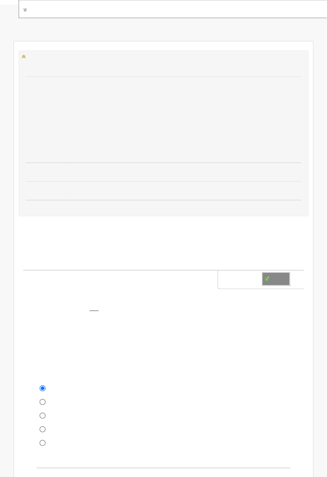 Fazer teste: Semana 3 - Atividade Avaliativa Informações do teste Descrição Instruções Olá, estudante! 1. Para responder a esta atividade, selecione a(s) alternativa(s) que você considerar correta(s); 2. Após selecionar a resposta correta em todas as questões, vá até o fim da página e pressione “Enviar teste”. 3. A cada tentativa, você receberá um novo conjunto de questões diferentes para que você responda e tente alcançar melhores resultados. Pronto! Sua atividade já está registrada no AVA. Várias tentativas Este teste permite 3 tentativas. Esta é a tentativa número 1. Forçar conclusão Este teste pode ser salvo e retomado posteriormente. Suas respostas foram salvas automaticamente. A derivada de uma função y = f (x ) é representada por f ' (x ) ou, ainda, por dy dx , que significa derivada da função y em relação a x . Há várias regras que são aplicadas como estratégias para a resolução do cálculo da derivada de uma função, como a regra da cadeia. Verifique o tipo de função em que é aplicada a regra da cadeia e assinale a alternativa correspondente. a. Função composta. b. Função modular. c. Função quociente. d. Função produto. e. Função exponencial. PERGUNTA 1 1,25 pontos Salva Estado de Conclusão da Pergunta: 23/02/25, 19:17 Fazer teste: Semana 3 - Atividade Avaliativa – Cálculo I... https://ava.univesp.br/webapps/assessment/take/launch.jsp?course_assessment_id=_200887_1&course_id=_13830_1&content_id=_1631297_1… 1/5 A função inversa de e x é ln x . Isso quer dizer que se f (x ) =e x , então, f −1(x ) = ln x . Ocorre que é conhecido que a derivada de f (x ) é d dx (e x ) =e x . E, quando a função é composta, como para g (x ) =e u com u a função u (x ) , temos que a derivada d dx (e u) =e u · u ' . Com u ' = du dx . Diga o resultado da derivada d dx ( ln u) assinalando a alternativa correspondente. a. 1 u du dx . b. u . c. − ux . d. 1 x . e. x . PERGUNTA 2 1,25 pontos Salva Quando falamos de regras de derivação, temos um caso particular da regra do quociente, que trata, especificamente, da derivada de 1 v com v , uma função da variável x . Observe a descrição da regra: seja a função v (x ) derivável e diferente de zero, então: d dx ( 1 v ) = − 1 v ² ⋅ dv dx . Rotule a regra de derivação descrita acima e assinale a alternativa correspondente. a. Regra derivação de inteiros negativos. b. Regra do produto. c. Regra da recíproca. d. Regra da fração. e R d d i PERGUNTA 3 1,25 pontos Salva 23/02/25, 19:17 Fazer teste: Semana 3 - Atividade Avaliativa – Cálculo I... https://ava.univesp.br/webapps/assessment/take/launch.jsp?course_assessment_id=_200887_1&course_id=_13830_1&content_id=_1631297_1… 2/5 e. Regra da cadeia. Funções trigonométricas possuem um papel importante e diversas aplicações na nossa vida. A sua periodicidade torna essas funções muito interessantes para descrever certos fenômenos que acontecem com regularidade. Seja n um número natural e f (x ) = sen n (x ) + sen (x n) . Assinale a alternativa que apresenta f'(x) a. nsen (x ) cos(x ) + ncos(x n) x n − 1 b. ncosn − 1(x ) sen (x ) + ncos(x n) x n − 1 c. nsen n − 1(x ) cos(x ) + ncos(x ) x n − 1 d. nsen n − 1(x ) cos(x ) + ncos(x n) x n − 1 e. nsen n − 1(x ) cos(x n) + ncos(x n) x n − 1 PERGUNTA 4 1,25 pontos Salva Há algumas regras sobre o cálculo de derivada, como a regra da potência. É importante reconhecer qual regra utilizar para calcular a derivada. Para isso, é importante reconhecer as características da função de que deseja calcular a derivada e, assim, aplicar a regra mais apropriada. Observe as informações sobre as regras abaixo. 1 . d dx (x n) = nx n − 1 . 2 . d dx ( 1 v ) = − 1 V ² ⋅ dv dx . 3 . d dx ( uv ) = u dv dx + v du dx . 4 . dy dx = dy du · du dx . PERGUNTA 5 1,25 pontos Salva 23/02/25, 19:17 Fazer teste: Semana 3 - Atividade Avaliativa – Cálculo I... https://ava.univesp.br/webapps/assessment/take/launch.jsp?course_assessment_id=_200887_1&course_id=_13830_1&content_id=_1631297_1… 3/5 I. Regra da cadeia. II . Regra do produto. III . Regra da recíproca. IV . Regra da potência . Categorize os grupos acima e assinale a alternativa que correlaciona, adequadamente, os dois grupos de informação. a. 1 - IV; 2 - III; 3 - II; 4 - I. b. 1 - II; 2 - IV; 3 - I; 4 - III. c. 1 - II; 2 - III; 3 - IV; 4 - I. d. 1 - III; 2 - IV; 3 - I; 4 - II. e. 1 - IV; 2 - II; 3 - III; 4 - I. Existem várias regras e técnicas que são utilizadas para encontrar as derivadas de funções. Também podemos mesclar as regras, utilizando duas ou mais delas em uma mesma função. Seja f (x ) =x 2(x + 5) 5. Assinale a alternativa que apresenta a expressão que determina corretamente f'(x). a. f ' (x ) = 0 b. f ' (x ) =x 2( 5(x + 5) 4) c. f ' (x ) = 2x (x + 5) 5− ( 5(x + 5) 4x 2 d. f ' (x ) = 2x (x + 5) 5+ ( 5(x + 5) 4) x 2 e. f ' (x ) = 2x (x + 5) 5+ 4(x + 5) 4x 2 PERGUNTA 6 1,25 pontos Salva Considere a função 𝑓(𝑥) = 2𝑥 3 + 3𝑥 2 + 10𝑥 + 8. Com respeito a segunda derivada da função 𝑓(𝑥), é correto afirmar que: a. 𝑓 ′′(𝑥) = 6𝑥 + 6 b.𝑓 ′′(𝑥) = 2𝑥 + 3 c. 10 PERGUNTA 7 1,25 pontos Salva 23/02/25, 19:17 Fazer teste: Semana 3 - Atividade Avaliativa – Cálculo I... https://ava.univesp.br/webapps/assessment/take/launch.jsp?course_assessment_id=_200887_1&course_id=_13830_1&content_id=_1631297_1… 4/5 Clique em Salvar e Enviar para salvar e enviar. Clique em Salvar todas as respostas para salvar todas as respostas. 𝑓 ′′(𝑥) = 6𝑥 + 6 + x d.𝑓 ′′(𝑥) = 12𝑥 + 6 e. 𝑓 ′′(𝑥) = 12 Considere que uma função f −1 é a função inversa de f . Assim, temos que a definição da derivada da função inversa é: Se f é ____________ em todo ponto de um intervalo I e df dx ___________ é zero em I , então, f __________ uma inversa f −1 que é diferenciável em ____________ ponto do intervalo I . Preencha as lacunas escolhend