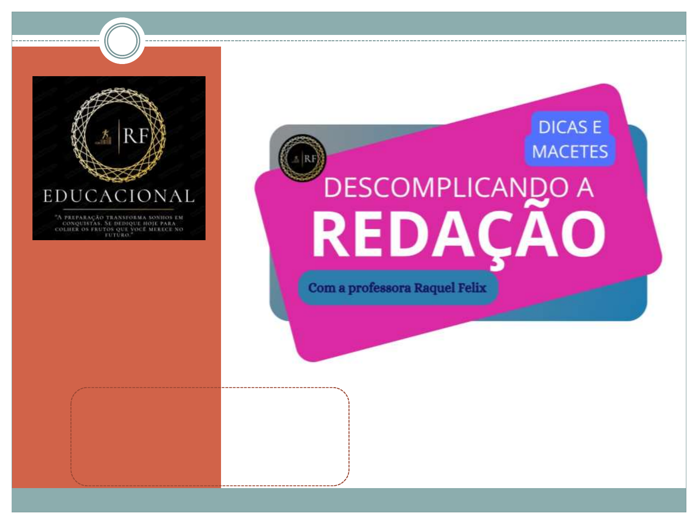 REDAÇÃO DO ZERO PROFESSORA RAQUEL FELIX AULA 02 – Bloco 02 REDAÇÃO – ERROS MAIS COMUNS Na hora de escrever uma redação, é comum cometer alguns erros. Aqui estão os mais comuns: Fuga do tema: Muitas vezes, o autor começa a desenvolver uma ideia interessante, mas acaba saindo do foco principal do tema proposto. Manter-se no tópico é essencial. Observação: Para evitar essa problemática, devemos primeiramente ler com atenção os textos motivadores e compreender a proposta. Manter o foco em torno do tema é o principal desafio, assim, sua abordagem deve ser bem clara. Exemplo: Se o “Eixo temático” é “Educação” e o tema é “Inclusão”, você irá se ater a essa esfera, pois tudo tem que ser voltado para o quê está se pedindo. REDAÇÃO – ERROS MAIS COMUNS Introdução vaga ou sem clareza: A introdução é o primeiro contato com o leitor, e, se não for clara e objetiva, pode prejudicar a compreensão do texto. É importante apresentar de maneira concisa a ideia principal. Observação: Introduções genéricas e vagas são um dos maiores erros ao iniciar uma redação, pois não conseguem prender a atenção do leitor nem demonstrar domínio sobre o tema. Exemplo: Na introdução deve-se conter: tema, repertório, síntese do assunto proposto expondo o que será abordado no D1 e D2. REDAÇÃO – ERROS MAIS COMUNS • Ausência de coesão e coerência: É fundamental que as ideias se conectem de maneira lógica. Quando não há uma sequência entre os parágrafos e as frases, a redação fica desconexa e difícil de entender. • Observação: A coesão é resultado da disposição e da correta utilização das palavras que propiciam a ligação entre frases, períodos e parágrafos de um texto. Exemplo: Utilizar outros elementos para evitar redundância (pronomes pessoais, pronomes demonstrativos e comparações) para evitar repetições. Referência pessoal: utilização de pronomes pessoais e possessivos, por exemplo: João e Maria casaram. ELES são pais de Ana e Beto. REDAÇÃO – ERROS MAIS COMUNS A coerência é a relação lógica das ideias de um texto que decorre da sua argumentação - resultado especialmente dos conhecimentos do transmissor da mensagem. Um texto contraditório e redundante, ou cujas ideias iniciadas não são concluídas, é um texto incoerente. A incoerência compromete a clareza do discurso, a sua fluência e a eficácia da leitura. Observação: A coerência é uma das características mais importantes de um texto bem apresentando. Ela está intimamente relacionada com o contexto e o universo interpretativo da pessoa uma vez que trabalha com a construção do sentido. REDAÇÃO – ERROS MAIS COMUNS Cometer erros de português Uma das principais competências dos estudantes que escrevem um texto deve ser o uso da língua padrão formal. Com isso, deve-se evitar desvios gramaticais, erros ortográficos, falta de acentuação e pontuação. É muito comum as redações apresentarem esses desvios, o que deixa o texto pobre e dificulta o entendimento. Portanto, a melhor maneira de contornar essa situação é ler e escrever bastante e ainda, praticar exercícios sobre o tema. REDAÇÃO – ERROS MAIS COMUNS Cuidado ao cair na “armadilha das generalizações” e do senso comum, pode ser fatal. Infelizmente esse é um dos erros mais frequentes, responsável por esvaziar os sentidos da redação e torná-la apenas mais uma entre tantas outras. Evite ou seja cuidadoso ao usar palavras como “único”, “sempre”, “todos”, “jamais”, “maioria”, “minoria”, entre outras que podem contribuir para a construção de generalizações indevidas. REDAÇÃO – ERROS MAIS COMUNS Usar linguagem informal O uso da linguagem informal ou coloquial é um erro muito grande que o candidato deve evitar. Como exemplo, podemos citar o uso de gírias e de expressões populares no meio do texto. Esse recurso só deverá ser utilizado se o foco for esse mesmo. REDAÇÃO – ERROS MAIS COMUNS Empregar frases ambíguas A ambiguidade é um problema recorrente nas redações e que surge por descuido de muitos estudantes. Trata-se de uma duplicação de sentidos a qual reúne mais de uma interpretação. Portanto, ela torna o texto confuso e dificulta o entendimento do leitor. Muito utilizada nos textos poéticos e publicitários como forma de aumentar a expressividade do texto, ela é considerada um vício de linguagem sendo inapropriada nos textos formais. REDAÇÃO – ERROS MAIS COMUNS Escrever na primeira pessoa do singular Um erro crasso cometido pelos estudantes é escrever a redação em primeira pessoa do singular. Pessoalizar o texto é um erro muito grande e que com certeza diminuirá sua nota final. Lembre-se que essa ação é condenada pela maior parte dos avaliadores. Sendo assim, o texto dissertativo-argumentativo deve ser feito na terceira pessoa do singular ou plural. Mesmo quando você for defender seu ponto de vista utilize os pronomes adequados. Você deve evitar o uso da primeira pessoa do singular, bem como marcas que identificam a segunda pessoa do singular e do plural (você, seu, sua, teu, tua, etc.).