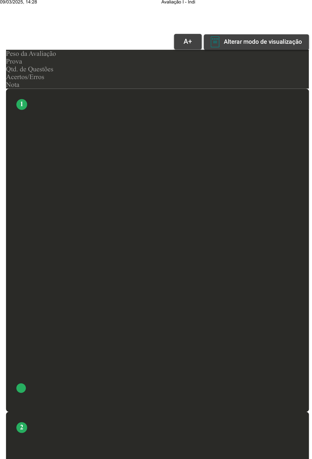 Prova Impressa GABARITO | Avaliação I - Individual (Cod.:989873) Peso da Avaliação 2,00 Prova 87311499 Qtd. de Questões 10 Acertos/Erros 8/2 Nota 8,00 As superfícies de projeção se classificam em: projeções planas, cônicas ou cilíndricas, quando forem empregadas as superfícies de um plano, cone ou cilindro como base para planificar a esfera terrestre. Sobre as superfícies de projeção cilíndrica, analise as sentenças a seguir: I- Quando o eixo do cilindro é inclinado em relação ao eixo da Terra é chamada de oblíqua. II- As superfícies equatoriais ou normais, transversas ou meridianas são tipos de classificações de projeções cilíndricas. III- As projeções cilíndricas incluem aquelas em que o eixo do cone é paralelo ao eixo terrestre. IV- As superfícies transversas ou meridianas são projeções cilíndricas, cujo eixo do cilindro é perpendicular ao eixo da terrestre. Assinale a alternativa CORRETA: A As sentenças III e IV estão corretas. B As sentenças II e III estão corretas. C As sentenças I e III estão corretas. D As sentenças I, II e IV estão corretas. Sabe-se que os gregos experimentaram um grande avanço na área cartográfica. Seus estudos e obras influenciaram cartógrafos, navegadores e astrônomos do século XV. Sobre a história da Cartografia, classifique V para as sentenças verdadeiras e F para as falsas: VOLTAR A+ Alterar modo de visualização 1 2 09/03/2025, 14:28 Avaliação I - Individual about:blank 1/6 ( ) O grande avanço da Cartografia se deu na África no período do Renascimento, período em que as relações capitalistas começaram a surgir. ( ) A intensificação do comércio entre o Oriente e o Ocidente exigiu o desenvolvimento da navegação e a necessidade de mapas e dos meios para a orientação. ( ) Na Idade Média, a Cartografia passou por uma fase de estagnação, na qual as conquistas científicas anteriores foram substituídas por uma representação de caráter religioso. ( ) Os romanos utilizavam uma forma de representação avançada, deixando um grande legado para os gregos prosseguirem com os estudos da ciência cartográfica, especialmente para Ptolomeu que tomou como base seus estudos. Assinale a alternativa que apresenta a sequência CORRETA: A V - V - F - F. B V - F - F - V. C F - V - V - F. D F - V - V - V. A elaboração de uma carta exige modelos empregados para representar sobre um plano horizontal a superfície total ou parcial da Terra. A escolha do sistema de projeção deve acontecer de modo que a carta venha a possuir as propriedades que satisfaçam os fins propostos para seu uso. Sobre as propriedades das projeções, classifique V para as sentenças verdadeiras e F para as falsas: ( ) A equivalência tem como característica a inalterabilidade das áreas. ( ) Na projeção conforme não há deformação dos ângulos em torno de quaisquer pontos. ( ) A projeção conforme é aquela que mantém a verdadeira forma das áreas a serem representadas. ( ) A equidistância mostra a constância das relações entre as distâncias dos pontos representados e as distâncias dos seus correspondentes. Assinale a alternativa que apresenta a sequência CORRETA: A V - V - V - V. B F - F - V - V. C V - F - V - V. D F - V - F - V. Os gregos experimentaram um grande avanço na área cartográfica. Contudo, o grande avanço da Cartografia se deu no período do Renascimento, período em que as relações capitalistas começaram a surgir. Com base onde elas começaram a surgir, assinale a alternativa CORRETA: A América do Norte. B Oceania. 3 Revisar Conteúdo do Livro 4 09/03/2025, 14:28 Avaliação I - Individual about:blank 2/6 C África. D Europa. A técnica utilizada para aquisição de informações acerca de um objeto, área ou fenômeno situado na superfície terrestre, sem que haja contato físico com ele é conhecida como Sensoriamento Remoto. Com base nessa técnica, analise as sentenças a seguir: I- As informações podem ser obtidas através de radiação eletromagnética ou por fontes artificiais. II- Atualmente, as informações mais utilizadas são aquelas captadas por sensores óticos orbitais localizados em satélites. III- O Sensoriamento Remoto ocupa lugar de destaque como complementação e, em certos casos, substituição aos métodos tradicionais de produção de mapas. IV- Os sensores são dispositivos que permitem a captação de energia refletida ou emitida por uma superfície, que podem ser armazenadas em formato analógico ou digital. Assinale a alternativa CORRETA: A Somente a sentença IV está correta. B Somente a sentença I está correta. C Somente a sentença III está correta. D As sentenças I, II, III e IV estão corretas. De acordo com Menezes e Fernandes (2013), a definição do termo mapa não é uma tarefa fácil, pois sua apresentação visual pode variar de uma forma precisa e estruturada, até algo e impressionista, como um esboço ou croqui. Com base nas diferentes definições de mapa, classifique V para as sentenças verdadeiras e F para as falsas: ( ) Mapa é uma representação gráfica de conjuntos geográficos. ( ) Mapa é um modelo matemático que mais se aproxima da forma geoide. ( ) Mapa pode ser definido como uma representação plana, dos fenômenos sociofísicos sobre a superfície terrestre. ( ) Mapa é uma representação sobre uma superfície plana, de toda ou de uma parte da superfície terrestre. Assinale a alternativa que apresenta a sequência CORRETA: FONTE: MENEZES, P. M. L; FERNANDES, M. C. Roteiro de Cartografia. São Paulo: Oficina de Textos, 2013. A V - F - V - V. B F - F - V - V. C V - V - V - F. 5 6 09/03/2025, 14:28 Avaliação I - Individual about:blank 3/6 D F - V - F - V. "A distribuição geográfica das folhas ao Milionésimo foi obtida com a divisão do planeta em 60 fusos de amplitude 6°. Numeradas a partir do antimeridiano -180°" e cada uma delas pode ser acessada por um conjunto de três caracteres. Sobre as cartas do mundo ao mil
