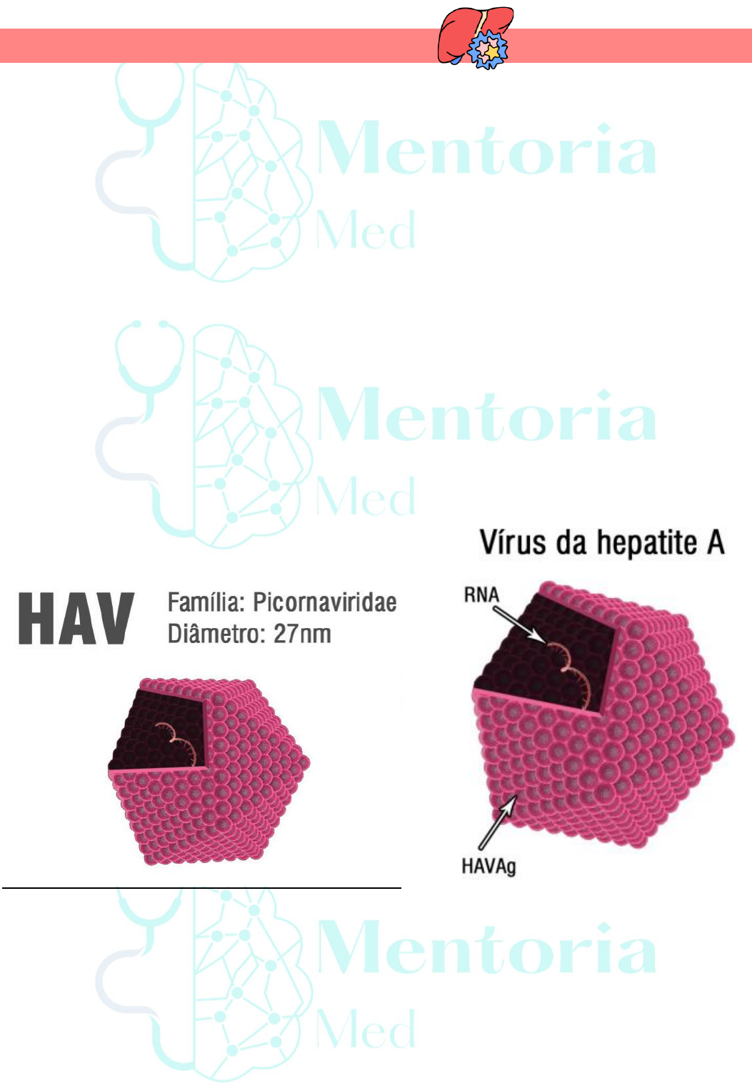 Hepatite a hepatite consiste em uma inflamação do parênquima hepático, resultando em um processo inflamatório e uma necrose hepatocelular uma grande distinção entre a hepatite é se ela é aguda ou crônica: -Hepatite aguda ocorre em menos de 6 meses, aumenta o TGO e TGP; O corpo por si só elimina o vírus -Hepatite crônica ocorre por mais de 6 meses, ocorre aumento de TGO, TGP e alterações histológicas. O corpo não consegue eliminar o vírus de forma espontânea -Hepatite fulminante é quando ocorre a falência hepática, normalmente na hepatite aguda, levando a um processo de coagulopatia (pela falta dos fatores de coagulação) e encefalopatia hepática (aumento de compostos nitrogenados que vão para o SNC) pode ser causada pelos vírus HAV, HBV, HCV, HDV e HEV existem outros vírus que podem atingir o fígado, devido ao seu hepatotropismo, como por exemplo: citomegalovírus, herpes simples, Epstein Barr, febre amarela e dengue, sarampo, rubéola, influenza e herpes genital Características dos vírus: -Hepatite A (RNA): inclui enterovírus e rinovírus, a sua viremia não ultrapassa 7 dias, com período de incubação de 2-6 dias. Não evolui para hepatite crônica. Transmissão é oral-fecal, seja pra água e consumo de alimentos contaminados, como também por via sexual -Hepatite B (DNA): leva a uma infecção aguda, todavia o vírus pode vir a levar sintomas por mais de 6 meses, ou seja, tanto leva a uma infecção aguda quanto crônica, pode chegar a ser assintomática. sua tramsnissão ocorre pelo sexo, sangue e flúidos e perinata. Possui período de incubação de 4 a 26 semanas. -Hepatite C (RNA): leva a uma hepatite "aguda" e crônica. É# assintomática na maioris dos casos. Pode ser transmitido por sexo, sangue e flúidos e perinatal. Sua forma de transmissão é por sexo, por sangue e flúidos e perinatal. Possui período de incubação de 15 a 150 dias -Hepatite D (RNA): leva a uma infecção crônica principalmente, mas que passa por sua fase aguda. OBS: para que ocorra sua infecção é necessário uma infecção prévia por HBV. A primeira forma é uma co-infecção, por HBV e HDV. A segunda forma é por uma superinfecção por HPV e posteriormente o HDV -Hepatite E (RNA): leva principalmente a infecção aguda. Se contato é oral- fecal. A doença no geral é benigna. O período de incubação é em torno de 6 semanas Fisiopatologia • Replicação de vírus de RNA: o os vírus entram na célula por endocitose e liberam seu material genético para dentro do citoplasma o no citoplasma ele vai em direação aos ribossomos e o utiliza para codificar proteínas para se replicarem o a produção de polimerazes dependentes de RNA faz com que a produção de mais RNA se torne cíclica o a combinação das variadas estruturas virais leva a formação de um novo vírus • Replicação de vírus de DNA: o O vírus entra em contato com a célula o O DNA entra no núcleo celular e com o auxílio de enzimas de reparo termina de concluir a sua fita dupla de DNA. o Logo depois com o auxílio das RNA polimerase quebra a fita de DNA. o O RNA por sua vez pode ser utilizado para a síntese de proteínas pelos ribossomos como também pode se tonar RNA genômico, esse RNA genômico possui uma proteína chamada de transcriptase reversa, que por sua vez tem a capacidade de transformar RNA em DNA o *como parte do DNA está dentro do núcleo celular ele acaba por continuar sua síntese, ou seja, um retrovírus Necrose A necrose pode ser explicada pela morte induzida pelo vírus, que ao "terminar de usar o maquinário celular" mata a célula hospedeira, levando consequentemente a morte dos hepatócitos, necrose e posteriormente fibrose Outra forma é a metabolização de antígenos (proteínas virais) e consequentemente levar um processo de " auto- opsonização" consequentemente ativando o sistema imune através da apresentação de moléculas de mhc- 1 A atividade imune mediada por linf, t citotóxicos (cd8), leva a liberação de perfurinas que quebrar a membrana celular dos hepatócitos, como também vão liberar granzimas, que induzem a apoptose Um quadro de hepatite crônica (b, c e d) aumenta o risco de desenvolver cirrose pela fibrose do fígado como também aumanta o rispco de desenvolver displasia (mediada por exemplo pela proteína X) e consequentemente um carcinoma hepatocelular Quadro clínico • fase de incubação, normalmente é assintomática • fase pré- ictérica/ prodrômica: dura de 2-3 semanas o a morte de hepatócitos leva a liberação de interleuina- 1, 6 e TNF alfa. A liberação desses fatores atua no SNC e induzem a liberação dfe PG- E2, F2, levando a febre o a alta concentração de hepatotoxinas leva a uma resposta do tronco cerebral que leva a uma hiperativação do TGI levando a um reflexo de retroperistaltismo, levando a náusea, vômito e diarreia. A desidratação e perda de eletrólitos causa um distúrbio eletrolítico • fase ictérica: Dura de 1 a 2 semanas • nesse caso, a hemoglobina é quebrada e um de seus produtos é a bilirrubina não conjugada, que no fígado normal é metabolizada em UGT que por sua vez conjuda a bilirrubina. Quando ocorre a morte doa hepatócitos leva a uma liberação de bilirrubina conjugada e não conjugada no sangue. • outro fato interessante é que a inflamação no fígado leva a uma inflamação das vias biliares, consequentemente pode levar a liberação de sais biliares para a corrente sanguínea • a elevada liberação desses produtos acaba culminando em sua deposição em tecidos do corpo, como por exemplo na esclera. Outros elementos dos hepatócitos vão para a corrente sanguínea, como fosfatases, fatores de coagulação, que serão liberados e não serão mais sintetizados. Logo, ocorre um problema na coagulação que estará dimuinuída. Somado a isso a infecção viral causa uma plaquetopenia, e uma anemia hemolótica, e neutropenia e linfocitose • nos rins acabam se sobrecarregando 