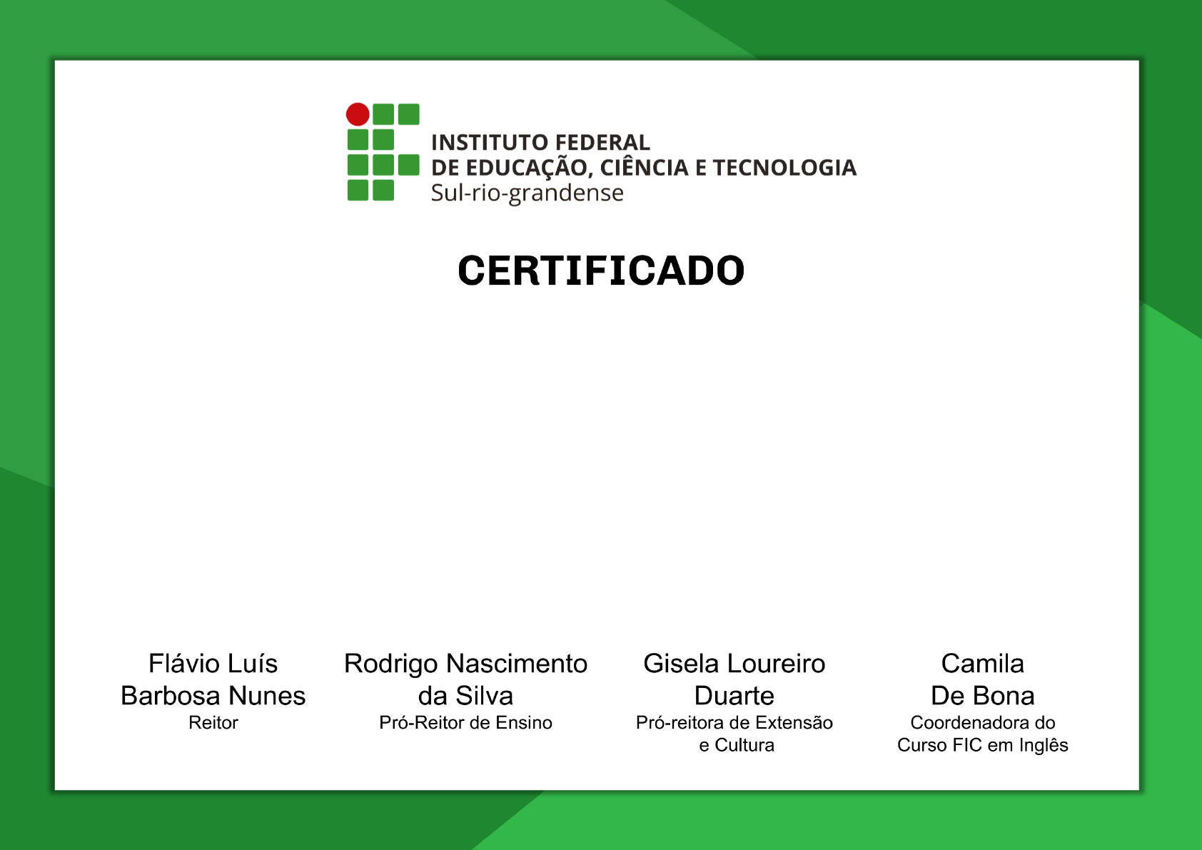 O Instituto Federal de Educação, Ciência e Tecnologia Sul-rio-grandense certifica que Luana Miranda Fernandes com CPF 03129521208 concluiu a segunda parte do curso de INGLÊS - MÓDULO 1, realizado no período de 04 de maio de 2023 a 07 de junho de 2023, com carga horária de 60 horas. Novo Hamburgo, 26 de junho de 2023. Verifique a validade deste certificado acessando http://bit.ly/certificadoeadifsulnh e digitando o código 64998609-b0a4-4cbd-97a6-60cc0a00c840 E-mail: if-idiomas@ifsul.edu.br 64998609-b0a4-4cbd-97a6-60cc0a00c840 Powered by TCPDF (www.tcpdf.org) http://www.tcpdf.org