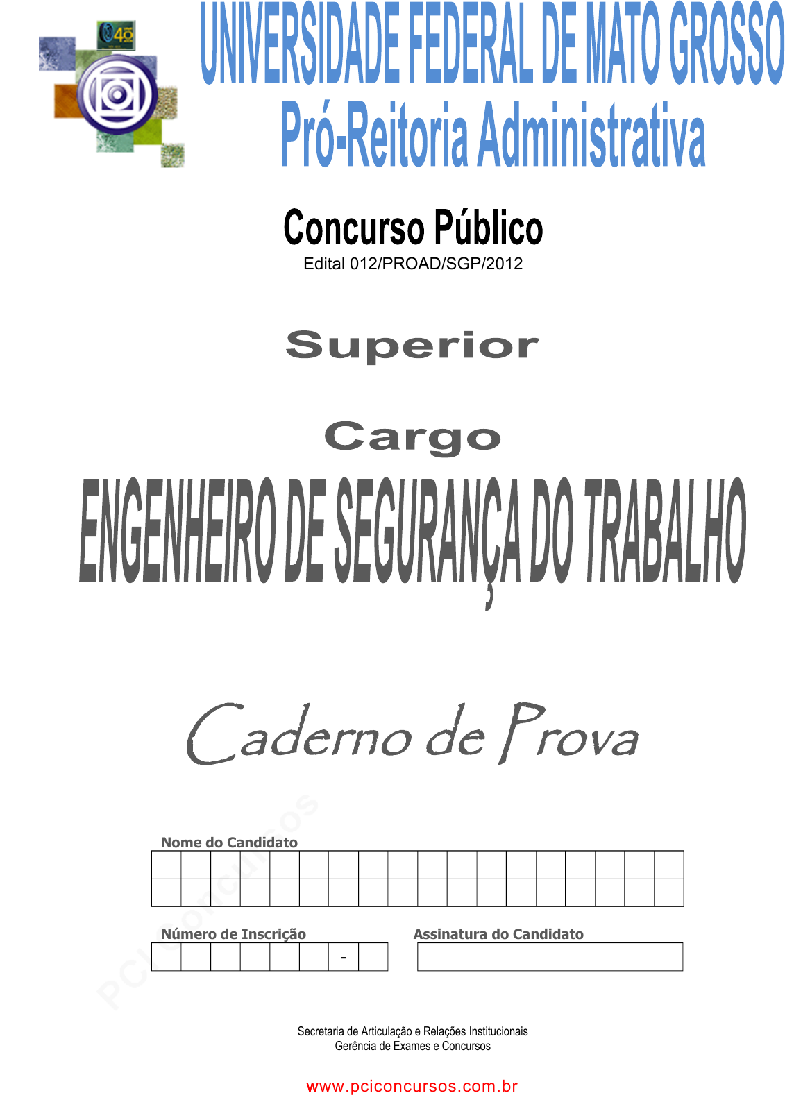 pcimarkpci MjgwNDowMjE0OjkwNjI6YjFiOTpmMGNkOjA5ZmY6ZmUxMjo0MzA4:VHVlLCAxMSBNYXIgMjAyNSAxNzoyNToyNCAtMDMwMA== www.pciconcursos.com.br Edital 012/PROAD/SGP/2012 Secretaria de Articulação e Relações Institucionais Gerência de Exames e Concursos Nome do Candidato Número de Inscrição Assinatura do Candidato - www.pciconcursos.com.br www.pciconcursos.com.br pcimarkpci MjgwNDowMjE0OjkwNjI6YjFiOTpmMGNkOjA5ZmY6ZmUxMjo0MzA4:VHVlLCAxMSBNYXIgMjAyNSAxNzoyNToyNCAtMDMwMA== www.pciconcursos.com.br I N S T R U Ç Õ E S LEIA COM ATENÇÃO 1. Este Caderno de Prova, com páginas numeradas de 1 a 15, é constituído de 40 (quarenta) questões objetivas, cada uma com quatro alternativas, assim distribuídas: 01 a 10 – Língua Portuguesa 11 a 20 – Informática Básica 21 a 40 – Conhecimentos Específicos 2. Caso o Caderno de Prova esteja incompleto ou tenha qualquer defeito de impressão, solicite ao fiscal que o substitua. 3. Sobre a Marcação do Cartão de Respostas As respostas deverão ser, obrigatoriamente, transcritas com caneta esferográfica de tinta preta não porosa para o Cartão de Respostas, que será o único documento válido para correção. Não haverá substituição do Cartão de Respostas por erro do candidato. 3.1. Para cada questão existe apenas uma alternativa que a responde acertadamente. Para a marcação da alternativa escolhida no CARTÃO DE RESPOSTAS, pinte completamente o campo correspondente. Exemplo: Suponha que para determinada questão a alternativa C seja a escolhida. N.º da Questão A B C D 3.2. Será invalidada a questão em que houver mais de uma marcação, marcação rasurada ou emendada, ou não houver marcação. 3.3. Não rasure nem amasse o CARTÃO DE RESPOSTAS. 4. A duração da prova é de quatro horas, já incluído o tempo destinado ao preenchimento do CARTÃO DE RESPOSTAS e a coleta de impressão digital de candidatos. 5. Todos os espaços em branco, neste caderno, podem ser utilizados para rascunho. 6. Será permitida a saída de candidatos da sala de prova somente após decorridas duas horas e trinta minutos do início da prova. Nesse caso, o candidato deverá entregar, obrigatoriamente, ao fiscal o Caderno de Prova e o Cartão de Respostas. 7. O candidato que insistir em sair da sala de prova antes de transcorridas duas horas e trinta minutos do início da prova deverá assinar Termo de Ocorrência declarando desistência do Concurso. 8. Será permitida a saída de candidatos levando o Caderno de Prova somente quando estiver faltando trinta minutos para o término da prova. 9. Na página 15 deste Caderno de Prova encontra-se a Folha de Anotação do Candidato, a qual poderá ser utilizada para a transcrição das respostas das questões objetivas, destacada e levada pelo candidato para posterior conferência com o gabarito. 10. Terminada a prova, o candidato deverá, obrigatoriamente, entregar ao fiscal o CARTÃO DE RESPOSTAS. www.pciconcursos.com.br www.pciconcursos.com.br pcimarkpci MjgwNDowMjE0OjkwNjI6YjFiOTpmMGNkOjA5ZmY6ZmUxMjo0MzA4:VHVlLCAxMSBNYXIgMjAyNSAxNzoyNToyNCAtMDMwMA== www.pciconcursos.com.br 1/15 Concurso Público para Técnico Administrativo em Educação da UFMT SUPERIOR LÍNGUA PORTUGUESA INSTRUÇÃO: Leia atentamente o artigo abaixo e responda às questões de 01 a 07. O instinto animal 1 5 10 15 20 25 Alguns traduzem por “instinto animal” o que o economista inglês John Maynard Keynes na década de 30 descreveu como “animal spirit”, isto é, espírito animal. Nesse artigo, tomo a expressão como nossa capacidade geral de sentir, pressentir algo, e agir conforme. [...] Não me parece muito apurado o espírito animal que, nas palavras de uma autoridade, declara que empregar 7% do PIB em educação (e 10% em mais alguns anos) vai “quebrar o país”. Educação não quebra nada: só constrói. Sendo bom esse instinto, o fator educação terá de ser visto como o mais importante de todos. Aquele, sólido e ótimo, sem o qual não há crescimento, não há economia saudável, não há felicidade. Uso sem medo o termo “felicidade”, pois não me refiro a uma cômoda alienação e ignorância dos problemas, mas ao mínimo de harmonia interna pessoal, e com o mundo que nos rodeia. Não precisar ter angústias extremas com relação ao essencial para a nossa dignidade: moradia, alimentação, saúde, trabalho. Como base para tudo isso, educação. Educação que pode consumir bem mais que 7% do PIB sem quebrar coisa alguma, exceto nossa miséria nascida da ignorância; nossas escolhas erradas nascidas da desinformação; nossa má qualidade de vida; e a falta de visão quanto àquilo que temos direito de receber ou de conquistar, com a plena consciência que nasce da educação. A verdadeira democracia só floresce no terreno da boa educação e ótima informação de seu povo. Pois não será governo de todos o comando dos poucos que estudaram bem, os informados, levando pela argola do nariz de bicho domesticado milhões e milhões de seres humanos cegos, aflitos ou alienados, que não sabem; e que, se quiserem boa educação desde as bases da infância, correm o risco de ser acusados de querer quebrar o país. Precisamos medir nossas palavras: cuidar do que dizemos, do que escrevemos, e também do que pensamos e não dizemos. Podem acusar quanto quiserem os empresários, os louros de olhos azuis, as elites, os ricos, os intelectuais, não importa; mas não acusem de querer o mal da nação aqueles que batalham pela mera sobrevivência ou por uma vida melhor, num orçamento que tenha a educação como prioridade. Pois não é certo que da treva sempre nasce a luz: dela brotam como flores fatídicas o sofrimento, a miséria, a subserviência. Na treva da ignorância nasce o atraso, de suas raízes se alimenta a pobreza em todos os sentidos, financeira, moral, intelectual. Uma educação bem cuidada e fomentada, com professores bem pagos, boas escolas desde a creche até a universidade, com orientação sadia e não ideol