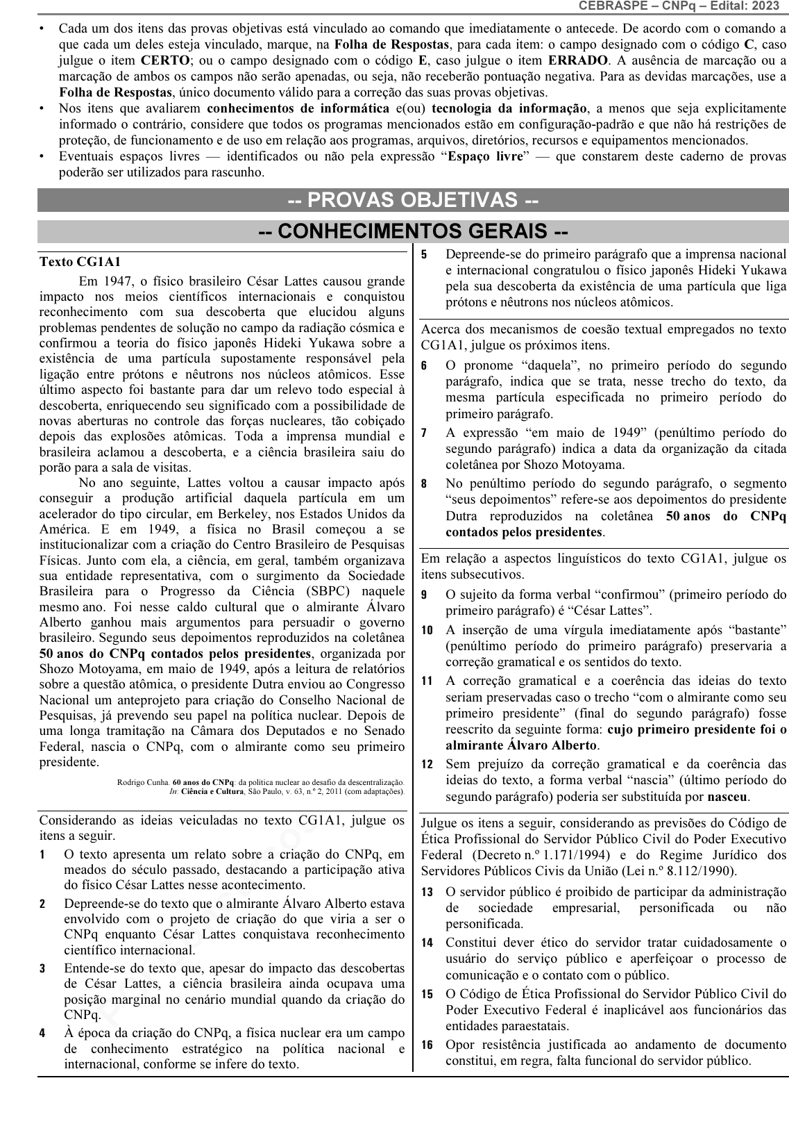 • Cada um dos itens das provas objetivas está vinculado ao comando que imediatamente o antecede. De acordo com o comando a