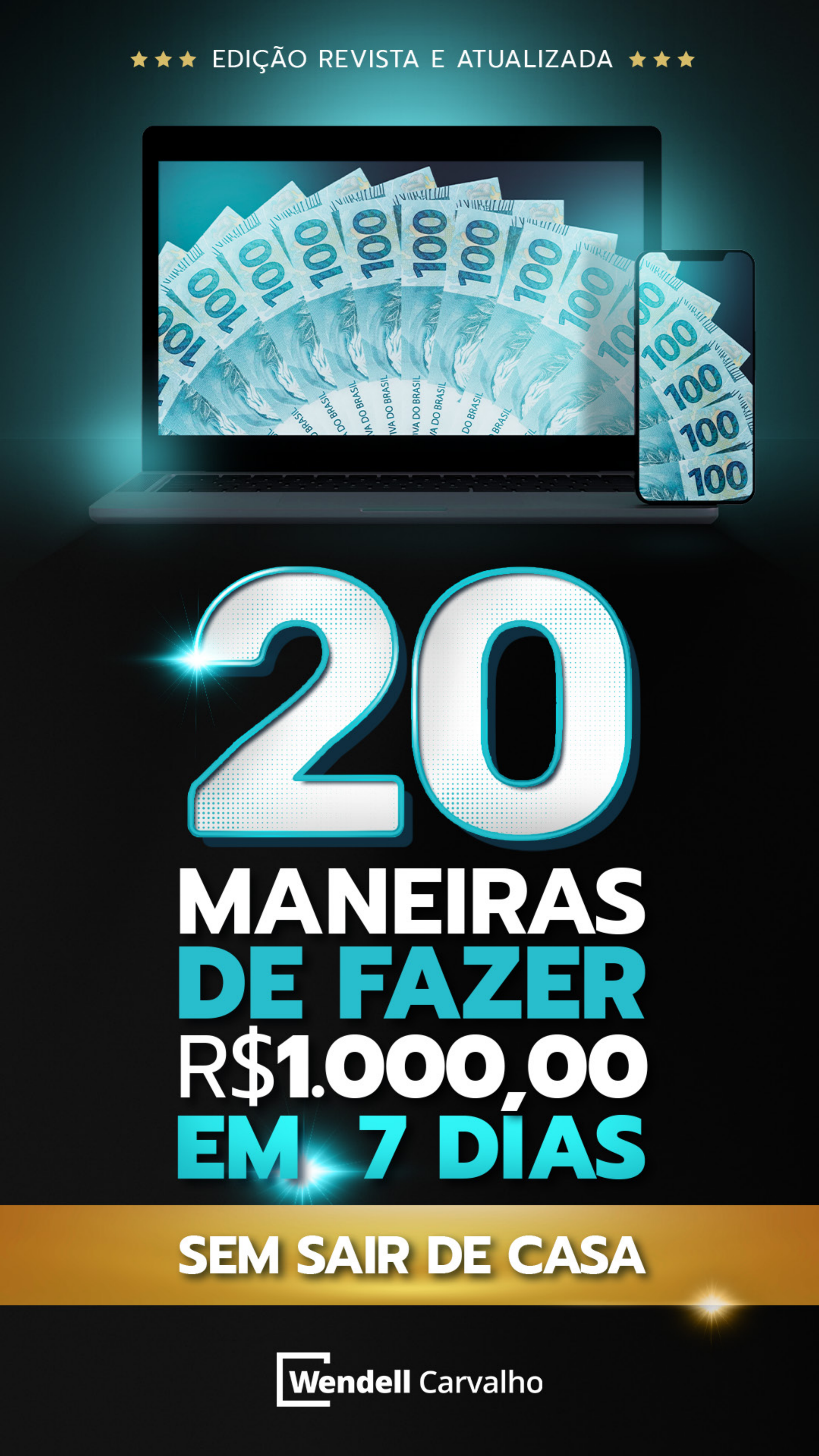 <p>1</p><p>02</p><p>Sumário</p><p>O único jeito para “imprimir” dinheiro sem</p><p>infringir as leis</p><p>“Não Conte Para Eles… Mantenha-os</p><p>Pobres.”</p><p>Esqueça Franquia, McDonalds ou Lojas</p><p>de Shopping: os novos ricos “estão” na</p><p>internet</p><p>As 5 Liberdades da Vida Épica, a vida dos</p><p>seus sonhos!</p><p>Agora, as torneiras da sua casa</p><p>estão prontas para jorrar dinheiro</p><p>– ou até estourarem os canos.</p><p>Maneira #1 - Infoproduto Próprio</p><p>Maneira #2 - PLR</p><p>Maneira #3 - Afiliado</p><p>Maneira #4 - Mercado Livre</p><p>Maneira #5 - Dropshipping</p><p>Maneira #6 - Loja Virtual</p><p>Maneira #7 - Google Meu Negócio</p><p>Maneira #8 - Artes no Canva</p><p>Maneira #9 - Edição de Vídeo no Celular</p><p>Maneira #10 - Criação de Página</p><p>Maneira #11 - Vendas pelo WhatsApp</p><p>Maneira #12 - Criação de E-book</p><p>Maneira #13 - Redator para Blog</p><p>Maneira #14 - Tradução de Texto</p><p>Maneira #15 - Gestão de Redes Sociais</p><p>03</p><p>Maneira #16 - Assistente Virtual</p><p>Maneira #17 - Vendedor Freelancer</p><p>Maneira #18 - Trader de Milhas</p><p>Maneira #19 - Serviços de Anúncio Para</p><p>Delivery</p><p>Maneira #20 - Revisor de Texto</p><p>Conclusão Inevitáveis</p><p>Bônus #01 - Como Ter Sucesso Na Internet</p><p>Se Você Não Pode Errar</p><p>Bônus #02 - Eu Vou Te Pagar Se Você Não</p><p>Fizer Dinheiro</p><p>04</p><p>O único jeito</p><p>para “imprimir”</p><p>dinheiro sem</p><p>infringir as leis</p><p>05</p><p>Imparável,</p><p>Se você chegou aqui à procura de como ficar rico</p><p>do dia para a noite, então quero deixar claro que</p><p>este E-book NÃO vai te deixar rico.</p><p>Então como vou te ajudar?</p><p>Dando direção, ou melhor, te entregando um Guia</p><p>com 20 maneiras comprovadas (até por pessoas</p><p>céticas) para fazer R$ 1.000 em 7 dias sem sair de</p><p>casa.</p><p>R$ 4.000 por mês a mais na sua conta – pelo resto</p><p>da sua vida.</p><p>Ou seja, você poderá “entrar” no Ciclo Infinito dos</p><p>52 Saques de Mil Reais.</p><p>É tão e somente isso.</p><p>Porque, verdade seja dita, você não vai conseguir</p><p>tomar champanhe num iate de dois andares em</p><p>águas caribenhas com esses ganhos.</p><p>Porém, posso te garantir um começo.</p><p>Um caminho para bancar um estilo de vida mais</p><p>confortável e seguro para você e sua família de</p><p>forma imediata.</p><p>E, depois, buscar ganhos maiores.</p><p>Essas 20 maneiras foram milimetricamente</p><p>pensadas para você atingir esse status de forma</p><p>rápida e sem perder tempo.</p><p>06</p><p>Quando falo isso, algumas pessoas até dão risada.</p><p>E se você falar, talvez também vão rir de você.</p><p>Pode ser, inclusive, que você seja essa pessoa</p><p>que está rindo… duvidando… você “tá pagando</p><p>para ver”.</p><p>Eu não tiro a sua razão.</p><p>A questão é:</p><p>Hipocrisia?</p><p>Com certeza seria… caso estivesse te ensinando</p><p>algo que NUNCA fiz.</p><p>Mas sinceramente? Eu também odeio e abomino</p><p>esse tipo de comportamento de vender algo que</p><p>a pessoa nunca executou na prática. É um hábito</p><p>de meninos e meninas – e não de homens e</p><p>mulheres.</p><p>Eu prefiro seguir por outro caminho. Eu coloco a</p><p>minha pele em jogo.</p><p>Caro aluno(a)... É ÓBVIO que fui o primeiro a fazer</p><p>muito dinheiro com as estratégias que vou te</p><p>contar nas próximas linhas.</p><p>Aliás, eu não quero esconder nada de você.</p><p>“Se esse conhecimento é tão bom…</p><p>então por que eu, Wendell Carvalho,</p><p>não faço dinheiro com ele?”</p><p>07</p><p>Então, “abrindo o jogo aqui”... só para você ter</p><p>uma ideia… apenas a Maneira #12, SOZINHA, foi</p><p>responsável por esse faturamento em 2022:</p><p>Além dessa estratégia, eu tenho outras 11 Fontes</p><p>de Renda Diferentes e também sou Dono e</p><p>Presidente do Grupo Wairua, o conglomerado</p><p>de empresas que faturaram R$ 250 milhões nos</p><p>últimos anos através da internet.</p><p>Eu não digo isso por arrogância ou ego.</p><p>Eu digo isso para te mostrar que, mesmo sem</p><p>berço de ouro… e mesmo sem trabalhar 24h por</p><p>dia… eu consegui chegar lá.</p><p>A verdade?</p><p>Eu estou nessa jornada há 18 anos.</p><p>E preparei este material para que você não leve</p><p>sequer uma fração desse tempo para começar a</p><p>obter ganhos expressivos em 7 dias.</p><p>Você não precisará “pagar” o preço do tempo.</p><p>Fonte: dados internos da minha empresa</p><p>08</p><p>Este e-book contém um conteúdo que a maioria</p><p>das pessoas demoraria UMA VIDA para encontrar…</p><p>mas que está nas suas mãos agora!</p><p>Estou te contando isso para te dar SEGURANÇA de</p><p>que não sou aquele garotinho de 18 anos que viaja</p><p>pelo mundo com uma máquina de imprimir dinheiro.</p><p>Eu sigo a Lei da Semeadura.</p><p>Você investe em você… o “terreno” mais próspero</p><p>da sua vida… e depois pode colher frutos</p><p>exponenciais a partir das suas habilidades.</p><p>Porque só o conhecimento é capaz de levar você</p><p>até o próximo nível. Afinal, se você já soubesse</p><p>como chegar lá… sua vida seria outra agora.</p><p>A leitura deste E-book pode desencadear o início</p><p>de um “Efeito Borboleta”.</p><p>O que é isso?</p><p>Uma reação em cadeia, originada por uma única</p><p>ação.</p><p>Pode ser que, em alguns anos, ambos morando</p><p>no metro quadrado mais caro do Brasil…</p><p>Pode ser que a gente se encontre em Paris,</p><p>junto de nossas famílias, e sente para comer um</p><p>croissant aos pés da Torre Eiffel…</p><p>09</p><p>Todos esses cenários são possíveis, totalmente</p><p>realizáveis e atingíveis, se você se permitir ouvir e</p><p>viver a experiência que vou transmitir neste E-book.</p><p>Valorize esse conhecimento…</p><p>Abra a sua cabeça!</p><p>Se fizer isso, você vai perceber o qu