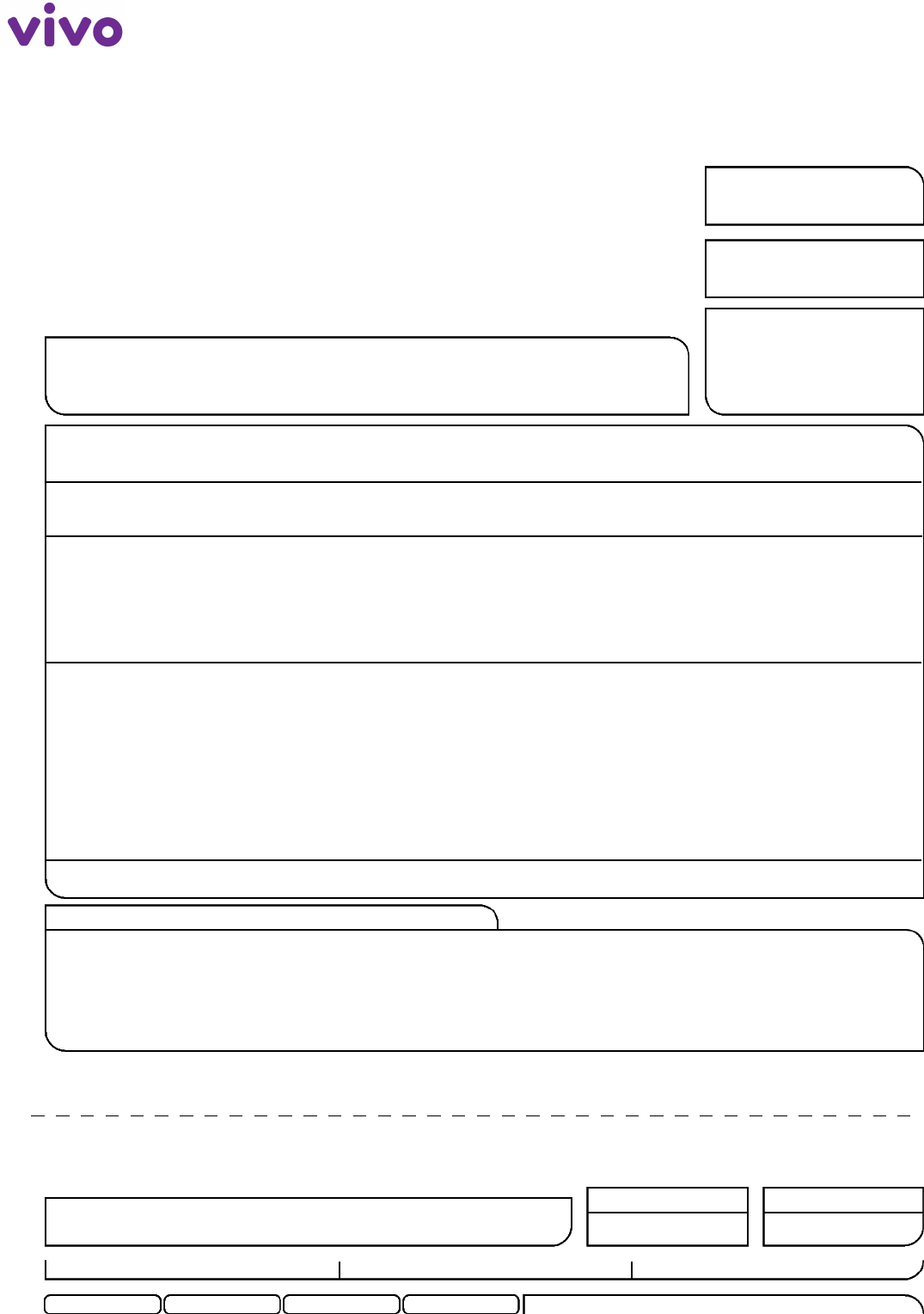 DINORA BORGES ARGOLLO RUA 225 45 QD 45 LT 17 MRO ENCANTADO 73790-000 CAVALCANTE - GO 2ª ViaNº da Conta: 00001125939314 Mês de referência: 04/2021 Período: 02/03/2021 a 01/04/2021 Data de emissão: 02/04/2021 Telefonica Brasil S.A. Rua 136 - C, 150 CEP: 74093-280 - Goiânia - GO I.E.: 103542051 CNPJ Matriz: 02.558.157/0001-62 CNPJ Filial: 02.558.157/0022-97 Vencimento 17/04/2021 Total a Pagar R$ 0,00 www.vivo.com.br/meuvivo Fale conosco: Central de Relacionamento *8486 ou www.vivo.com.br/faleconosco A conta detalhada está disponível em www.vivo.com.br/meuvivo e pode ser solicitada impressa, de forma permanente ou não. Mantenha o pagamento em dia e evite a suspensão parcial/total dos serviços e a inclusão nos orgãos de proteção ao crédito. Para pagamentos após o vencimento serão cobrados encargos de 2% e juros de 1% ao mês em conta futura. ANATEL 1331 e 1332 para deficientes auditivos. Recurso de atendimento Vivo: ligue com o protocolo em mãos para 1058 e 142 para pessoas com deficiência de fala/audição. Aguarde informações referentes ao Vivo ValorizaSeus Números Vivo 62-99963-9383 Caso você tenha mais linhas, consulte o detalhamento da sua conta. Planos Anatel 116/POS/SMP - VIVO CTRL DIGITAL_3GB_ Quantidade de Quantidade de Valor R$ Incluso Utilizado Valor TotalO que está sendo cobrado de 02/03/2021 a 01/04/2021 Plano/Pacote Números Vivo Plano/Pacote Plano/Pacote Minutos/Unidades R$ Serviços Contratados Vivo Ctrl Digital_3GB_ 1 1 36,99 - - 36,99 Vivo Controle Serv Digital I 1 1 0,00 - - - Bônus Conta Digital 1 1 0,00 500MB - 0,00 Subtotal Serviços Contratados 36,99 Outros Lançamentos -46,99Diversos (Crédito ou Débito) 10,00Serviço de Terceiros Móvel Subtotal -36,99 TOTAL A PAGAR 0,00 MENSAGEM PARA VOCÊ vivo Vencimento Total a Pagar - R$ Nome do Cliente DINORA BORGES ARGOLLO 17/04/2021 0,00 1125939314-8 00001125939314 04/2021N° da Conta Mês ReferênciaCód. Débito Automático Autenticação Mecânica www.vivo.com.br/meuvivo DINORA BORGES ARGOLLO CPF/CNPJ: 816.640.871-68 RUA 225 45 Inscrição Estadual: ISENTO QD 45 LT 17 Número da Conta: 00001125939314 MRO ENCANTADO 73790-000 CAVALCANTE - GO NOTA FISCAL DE SERVIÇOS DE TELECOMUNICAÇÕES Nome da Empresa: Telefonica Brasil S.A. Nº NFST: 6783643/04/2021 Nº Série: BT Sub-Série: 1 Endereço: Período: 02/03/2021 a 01/04/2021 Emissão: 05/04/2021Rua 136 - C, 150 - St. Sul CNPJ: 02.558.157/0022-97 Atende o convênio: 115/2003 CFOP: 5.307 Descrição: PF/PJ - OUTROSI.E.: 103542051 Seq. Cód. Serviço Descrição Quantidade ICMS Valor R$ 1 1570 Serviços Contratados Vivo Móvel 29%1 25,00 TOTAL NOTA FISCAL TELEFONICA BRASIL S.A. 25,00 Informações Complementares R$ 25,00ICMS 29,00% Base de Cálculo Valor ICMS R$ 7,25 Serv. Isentos/Não Tributável R$ 0,00 R$ 17,75PIS 0,65% Base de Cálculo Valor PIS R$ 0,12 Serv. Isentos/Não Tributável R$ 0,00 R$ 17,75COFINS 3,00% Base de Cálculo Valor COFINS R$ 0,53 Serv. Isentos/Não Tributável R$ 0,00 Contribuição para o Fust 1% = R$0,17 e Funtel 0,5% = R$0,09 do Valor dos Serviços - Não Repassados às Tarifas. Autenticação digital: 5f6d60f1fffcfcf2f5804879f3909b00 VEJA O USO DETALHADO DO VIVO MÓVEL 62-99963-9383 SERVIÇOS CONTRATADOS Período Incluso Plano/Pacote Utilizados Minutos/Unidades Valor R$ Vivo Ctrl Digital_3GB_ Serviços Telefônica Brasil 02/03/21 a 01/04/21 - 25,00- Subtotal 25,00 Período Incluso Plano/Pacote Utilizados Minutos/Unidades Valor R$ 02/03/21 a 01/04/21 500MB - 0,00Bônus Conta Digital Serviços TELEFONICA BRASIL 02.558.157/0135-74 Combo Digital Data Tipo Quantidade Valor R$Descrição 02/03/21 -Vivo Controle Serv Digital I 1 Babbel 2,49 Goread 9,50 Subtotal 1 11,99 VALOR DO VIVO MÓVEL 62-99963-9383 Valor R$ SERVIÇOS CONTRATADOS 25,00 Serviços TELEFONICA BRASIL 02.558.157/0135-74 11,99 36,99Total AUTORIZAÇÃO DE DÉBITO AUTOMÁTICO EM CONTA-CORRENTE Autorizo que o pagamento da minha conta telefônica seja efetuado de acordo com os valores informados pela Vivo através do serviço de débito automático em conta-corrente no banco, agência e conta-corrente por mim abaixo indicados. Fico ciente de que qualquer alteração nos mesmos poderá implicar na descontinuidade do serviço de débito automático, cabendo a mim realizar a solicitação de um novo cadastramento. No caso de insuficiência de saldo, estou ciente de que o débito ficará em aberto sendo da minha responsabilidade a sua quitação. Cód. Débito Automático: 1125939314-8 Nome do Cliente: Nome do Correntista: CPF/CNPJ: RG: Órgão Emissor: Banco: Agência: Conta Corrente: Assinatura do titular da conta correnteLocal e data Número da Conta: 00001125939314 Mês de Referência: 04/2021 Pág. 02/03 Caro Cliente, cadastre sua conta no Débito Automático e não se preocupe mais com a data de vencimento. Cliente correntista do Itaú, Santander e Bradesco: ligue do seu celular para *888# e selecione a "opção 1 - conta" ou acesse o Meu Vivo. Para Banco do Brasil e Caixa Econômica, entre em contato com seu banco e peça cadastro: www.vivo.com.br/dauto DETALHAMENTO TOTAL DA CONTA PARA OUTROS LANÇAMENTOS OUTROS LANÇAMENTOS SERVIÇOS DE TERCEIROS MÓVEL Doações Legião da Boa Vontade CNPJ: 33.915.604/0001-17 Descrição Parcela Número Referência Valor R$ - 62-99963-9383 10,00Abr/21LBV0000001 - DOACOES LBV MOVEL Subtotal 10,00 DIVERSOS (CRÉDITOS E DÉBITOS) Descrição Data de Pagamento Data do Crédito Referência Valor R$ - - Abr/21 -46,99Ajustes e Pagamentos Subtotal -46,99 TOTAL DE OUTROS LANÇAMENTOS -36,99 Número da Conta: 00001125939314 Mês de Referência: 04/2021 Pág. 03/03