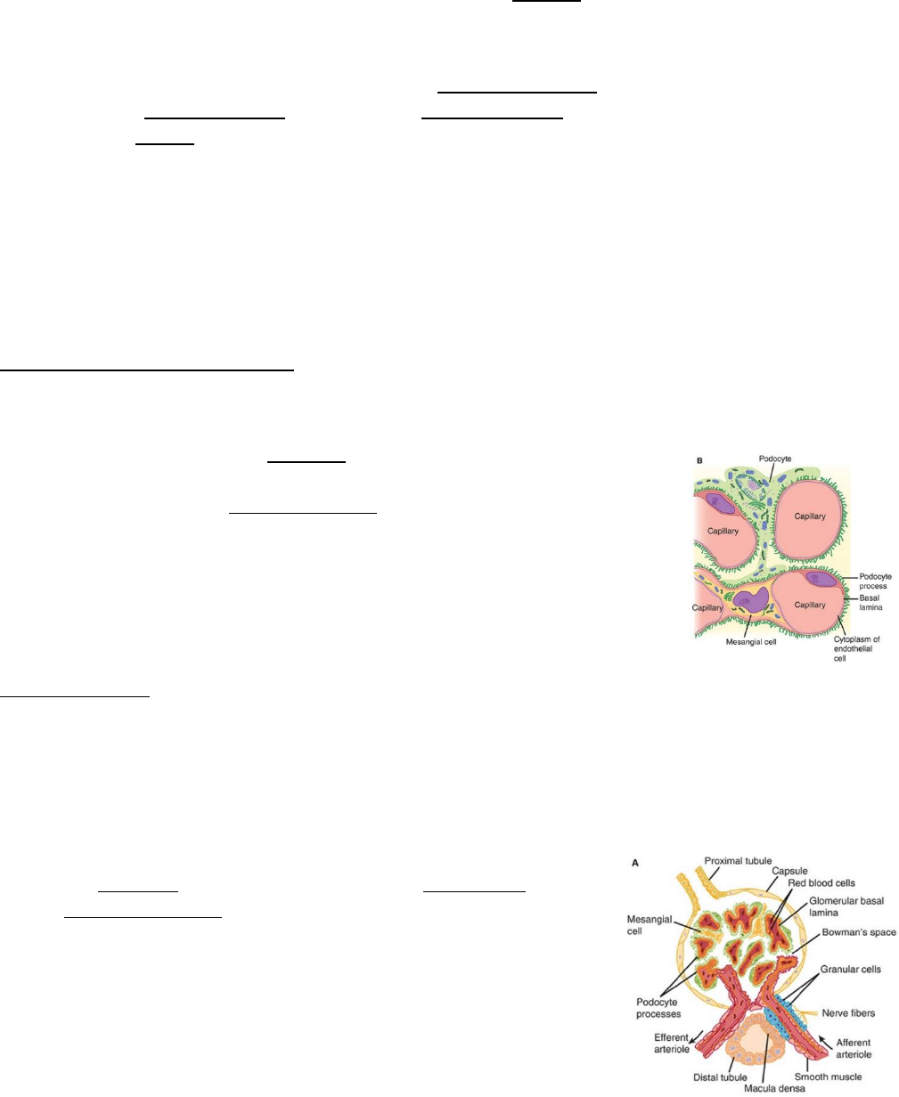 2º ano 1º semestre SOF III 1 Anatomia Funcional Nefrónio Cada túbulo renal individual e seu glomérulo é uma unidade – o nefrónio. Cada rim humano possui aproximadamente 1 milhão de nefrónios. O glomérulo, tem cerca de 200 µm de diâmetro, e é formado pela invaginação de um tufo de capilares na extremidade dilatada e cega do nefrónio - cápsula de Bowman. Os capilares são supridos por uma arteríola aferente e drenados pela arteríola eferente, e é a partir do glomérulo que o filtrado é formado. Duas camadas celulares separam o sangue do glomerular filtrado na cápsula de Bowman: Endotélio capilar Epitélio especializado da cápsula Endotélio dos capilares glomerulares É fenestrado, com poros de 70–90 nm de diâmetro. São completamente circundados pela membrana basal glomerular junto com células especializadas chamadas podócitos. o Os podócitos possuem vários pseudópodes que se interdigitam para formar fendas de filtração ao longo da parede capilar. o As fendas têm aproximadamente 25 nm de largura e cada uma é fechada por uma fina membrana. A membrana basal glomerular e a lâmina basal, não contém lacunas ou poros visíveis. Células mesangiais São células estreladas localizadas entre a lâmina basal e no endotélio. Eles são semelhantes às células chamadas pericitos, que são encontradas nas paredes dos capilares em outras partes do corpo. As células mesangiais são especialmente comuns entre dois capilares vizinhos e, nesses locais, a membrana basal forma uma bainha compartilhada por ambos os capilares. São contráteis e desempenham um papel na regulação da filtração glomerular. As células mesangiais secretam a matriz extracelular, absorvem complexos imunes e estão envolvidas na progressão de doenças glomerulares. 2º ano 1º semestre SOF III 2 A membrana glomerular permite a passagem livre de substâncias neutras de até 4 nm de diâmetro e exclui quase totalmente aquelas com diâmetros superiores a 8 nm. A carga nas moléculas, bem como seus diâmetros, afeta sua passagem para a cápsula de Bowman. A área total do endotélio capilar glomerular através da qual ocorre a filtração em humanos é de cerca de 0,8 m2. Túbulo contornado proximal Tem cerca de 15 mm de comprimento e 55 µm de diâmetro. A parede é composta por uma única camada de células que se interdigitam entre si e são unidas por junções apicais. Entre as células estão extensões do espaço extracelular chamadas de espaços intercelulares laterais. As bordas luminais das células têm uma borda em escova estriada devido à presença de muitas microvilosidades. A alça de Henle A porção descendente da alça e a porção proximal do ramo ascendente são compostas de células finas e permeáveis. A porção espessa do ramo ascendente é composta de células espessas que contém muitas mitocôndrias. Os nefrónios com glomérulos nas porções externas do córtex renal têm alças curtas de Henle nefrónios corticais Os nefrónios com glomérulos na região justamedular do corte - nefrónios justamedulares têm longas alças que se estendem para dentro da medular pirâmides. o Em humanos, apenas 15% dos néfrons têm nefrónios justamedulares. As células especializadas na extremidade formam a mácula densa, que está perto da arteríola eferente e, particularmente, da arteríola aferente. ⤷ A mácula, as células lácticas vizinhas e as células granulares secretoras de renina na arteríola aferente formam o aparelho justaglomerular. O túbulo contornado distal, que começa na mácula densa, tem cerca de 5 mm de comprimento. ⤷ Seu epitélio é inferior ao do túbulo proximal e, embora algumas microvilosidades estejam presentes, não há borda em escova distinta. 2º ano 1º semestre SOF III 3 Os túbulos distais coalescem para formar dutos coletores com cerca de 20 mm de comprimento e passam pelo córtex renal e medula para desaguar na pelve do rim nos ápices das pirâmides medulares. O epitélio dos ductos coletores é formado por: ⤷ Células principais células P o Predominam, são relativamente altas e têm poucas organelas. o Eles estão envolvidos na reabsorção de Na+ e reabsorção de água estimulada por vasopressina. ⤷ Células intercaladas - células I o Estão presentes em menor número e também nos túbulos distais, têm mais microvilosidades, vesículas citoplasmáticas e mitocôndrias. o São importantes na homeostasia ácido-base, através da secreção de ácido e transporte de HCO3−. As células renais que parecem ter função secretora incluem não apenas as células granulares do aparelho justaglomerular, mas também algumas das células do tecido intersticial da medula. Essas células são chamadas de células intersticiais medulares renais - RMICs e são células especializadas semelhantes a fibroblastos. Eles contém gotículas lipídicas e são um dos principais locais de expressão da ciclooxigenase 2- COX-2 e da prostaglandina sintase - PGES ⤷ PGE2 é o principal prostanóide sintetizado no rim e é um importante regulador parácrino de sal e homeostase da água. ⤷ A PGE2 é secretada pelos RMICs, pela mácula densa e por células nos ductos coletores ⤷ prostaciclina (PGI2) e outras prostaglandinas são secretadas pelas arteríolas e glomérulos. Vasos sanguíneos Uma única grande artéria renal, um ramo lateral da parte abdominal da aorta, supre cada rim. Normalmente, esses vasos surgem imediatamente inferiores à origem da artéria mesentérica superior entre as vértebras LI e LII. A artéria renal esquerda, em geral, surge um pouco superior à direita; e a artéria renal direita é mais longa e passa posteriormente à veia cava inferior. Da artéria renal dá origem às artérias segmentares e destas surgem as artérias interlobares, que ascendem no interior das colunas renais até ao córtex. Próximo da base de cada pirâmide, os ramos das artérias interlobares divergem e arqueiam-se sobre ela, formando as art
