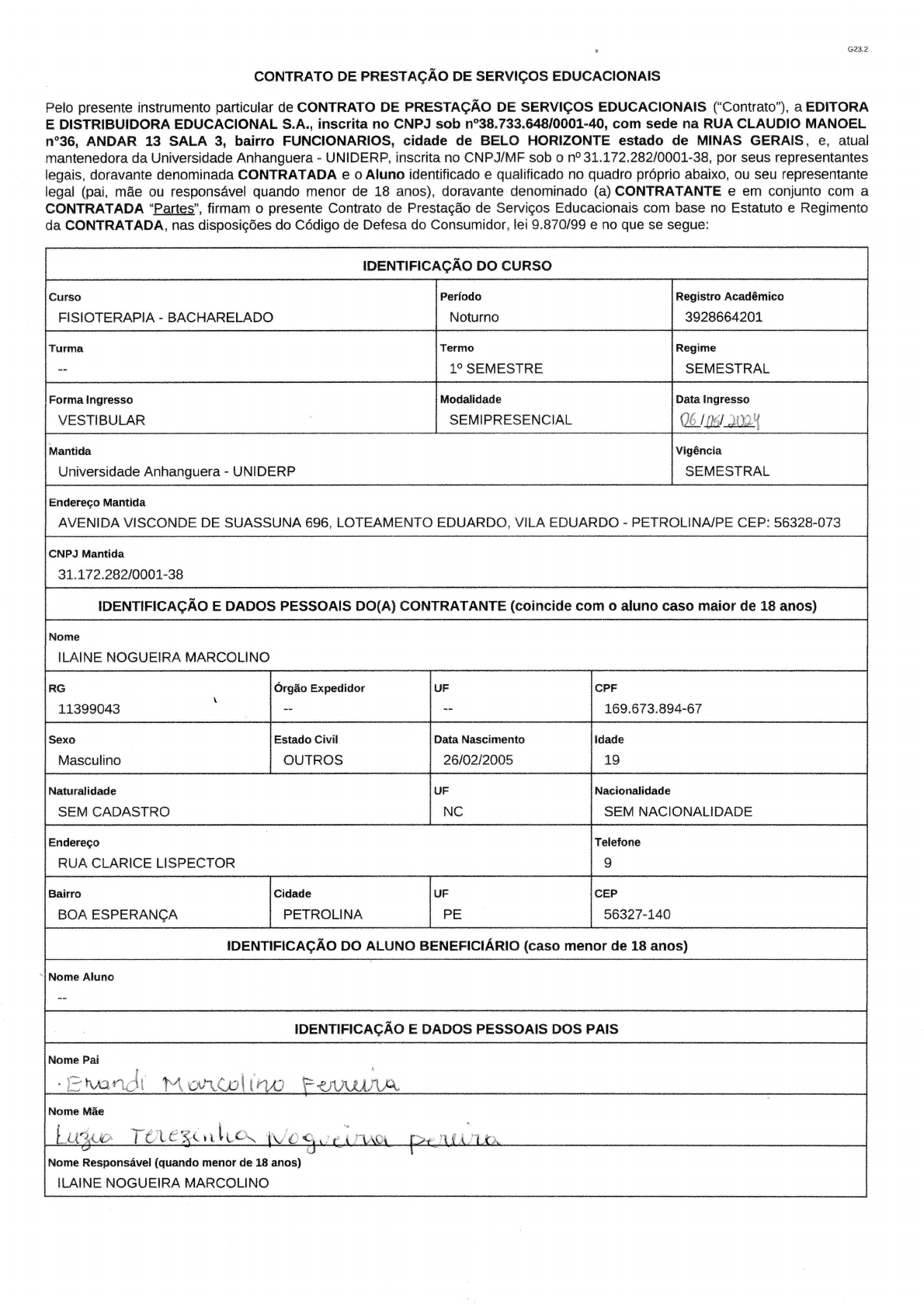CONTRATI\NTE (aluno se maior de