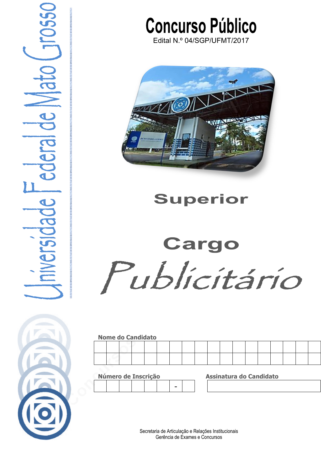 pcimarkpci MjgwNDowMjE0Ojg4ZTM6MjYyNTphNGRkOjUxZmY6ZmUyZTo4YmZm:V2VkLCAxMiBNYXIgMjAyNSAxOTowMDoxNiAtMDMwMA== www.pciconcursos.com.br Secretaria de Articulação e Relações Institucionais Gerência de Exames e Concursos Edital N.º 04/SGP/UFMT/2017 Nome do Candidato Número de Inscrição Assinatura do Candidato - pcimarkpci MjgwNDowMjE0Ojg4ZTM6MjYyNTphNGRkOjUxZmY6ZmUyZTo4YmZm:V2VkLCAxMiBNYXIgMjAyNSAxOTowMDoxNiAtMDMwMA== www.pciconcursos.com.br I N S T R U Ç Õ E S LEIA COM ATENÇÃO 1. Este Caderno de Prova, com páginas numeradas de 1 a 25, é constituído de 60 (sessenta) questões objetivas, cada uma com quatro alternativas, assim distribuídas: 01 a 15 – Língua Portuguesa 16 a 30 – Informática 31 a 40 – Conhecimentos Diversos 41 a 60 – Conhecimentos Específicos 2. Caso o Caderno de Prova esteja incompleto ou tenha qualquer defeito de impressão, solicite ao fiscal que o substitua. 3. Sobre a Marcação do Cartão de Respostas As respostas deverão ser transcritas com caneta esferográfica de tinta azul ou preta não porosa, fabricada em material transparente, para o Cartão de Respostas, que será o único documento válido para correção. O Cartão de Respostas não será substituído por erro ou dano do candidato. 3.1. Para cada questão existe apenas uma alternativa que a responde acertadamente. Para a marcação da alternativa escolhida no CARTÃO DE RESPOSTAS, pinte completamente o campo correspondente. Exemplo: Suponha que para determinada questão a alternativa C seja a escolhida. N.º da Questão A B C D 3.2. Será invalidada a questão em que houver mais de uma marcação, marcação rasurada ou emendada, ou não houver marcação. 3.3. Não rasure nem amasse o CARTÃO DE RESPOSTAS. 4. A duração da prova é de quatro horas, já incluído o tempo destinado ao preenchimento do CARTÃO DE RESPOSTAS e a coleta de impressão digital de candidatos. 5. Todos os espaços em branco, neste caderno, podem ser utilizados para rascunho. 6. Será permitida a saída de candidatos da sala de prova somente após decorridas duas horas e trinta minutos do início da prova. Nesse caso, o candidato deverá entregar, obrigatoriamente, ao fiscal o Caderno de Prova e o Cartão de Respostas. 7. O candidato que insistir em sair da sala de prova antes de transcorridas duas horas e trinta minutos do início da prova deverá assinar Termo de Ocorrência declarando desistência do Concurso. 8. Será permitida a saída de candidatos levando o Caderno de Prova somente na última meia hora de prova. 9. Na página 25 deste Caderno de Prova, encontra-se a Folha de Anotação do Candidato, a qual poderá ser utilizada para a transcrição das respostas das questões objetivas. Essa folha poderá ser levada pelo candidato para posterior conferência com o gabarito somente após decorridas duas horas e trinta minutos do início da prova. 10. Terminada a prova, o candidato deverá, obrigatoriamente, entregar ao fiscal o CARTÃO DE RESPOSTAS. pcimarkpci MjgwNDowMjE0Ojg4ZTM6MjYyNTphNGRkOjUxZmY6ZmUyZTo4YmZm:V2VkLCAxMiBNYXIgMjAyNSAxOTowMDoxNiAtMDMwMA== www.pciconcursos.com.br 1/25 −−−− Concurso Público para Técnico Administrativo em Educação da UFMT −−−− SUPERIOR LÍNGUA PORTUGUESA QUESTÃO 01 Os trechos numerados abaixo, quando na ordem correta, constituem um texto. 1 - Os chamados micronutrientes são fundamentais, entre outras coisas, para garantir disposição e alavancar a imunidade. 2 - Disponível nos sabores menta e citrus, a novidade é indicada para ajudar jovens e adultos a atingirem as necessidades diárias de vitaminas e minerais. 3 - Ao redor de 80% dos brasileiros não conseguem manter uma dieta balanceada em meio à correria do dia a dia, indica pesquisa da Pfizer. 4 - Só é preciso lembrar que o produto não dispensa os cuidados com a alimentação, essencial para obter as fibras e outros nutrientes importantes. 5 - De olho nisso, o laboratório decidiu aumentar seu portfólio, criando e lançando no mercado um multivitamínico em forma de pastilhas mastigáveis. Assinale a sequência que, coesa e coerentemente, forma esse texto. (A) 1, 3, 2, 5, 4 (B) 3, 5, 2, 1, 4 (C) 3, 1, 4, 5, 2 (D) 1, 5, 3, 4, 2 INSTRUÇÃO: O cartunista Edgar Vasques criou a personagem Rango na década de 1970. É um sem- teto, vive em um lixão com um filho e um cachorro. Leia a tira a seguir e responda às questões 02 e 03. QUESTÃO 02 Acerca da tira, analise as afirmativas. I - A tira faz uma crítica à vida cruel que a personagem Rango leva. II - A oposição entre os termos humana e desumana é responsável pela construção do sentido da tira. III - Exemplo da linguagem popular de Rango é a expressão pra cacete que tem sentido de muito, demais, demasiado. IV - A expressão pra cacete funciona morfologicamente no texto como advérbio de modo. V - A fala de Rango, na sequência dos quadrinhos, forma uma única oração. Estão corretas as afirmativas (A) I, II e IV. (B) I, IV e V. (C) II, III e V. (D) II, III e IV. pcimarkpci MjgwNDowMjE0Ojg4ZTM6MjYyNTphNGRkOjUxZmY6ZmUyZTo4YmZm:V2VkLCAxMiBNYXIgMjAyNSAxOTowMDoxNiAtMDMwMA== www.pciconcursos.com.br 2/25 −−−− Concurso Público para Técnico Administrativo em Educação da UFMT −−−− SUPERIOR QUESTÃO 03 Assinale a alternativa em que os prefixos das duas palavras desempenham função semântica semelhante à do prefixo em desumano. (A) desviar – imigrar (B) desleal – indolor (C) decurso – imberbe (D) desigual – inferência INSTRUÇÃO: Leia o texto abaixo e responda às questões de 04 a 07. . Tempos modernos ? O que acontece quando uma pessoa que vive à caça da informação em tempo real, cidadã de Nova York, se vê completamente desconectada, presa entre dunas do maior deserto do mundo? O Sahara talvez seja como a própria tristeza: aqui não há começo nem fim. Não se sabe onde nasce o céu ou onde morre o horizonte. E para mim, que moro em Manhattan, aquela ilha apertada, com começo, meio, fim e gente, mu
