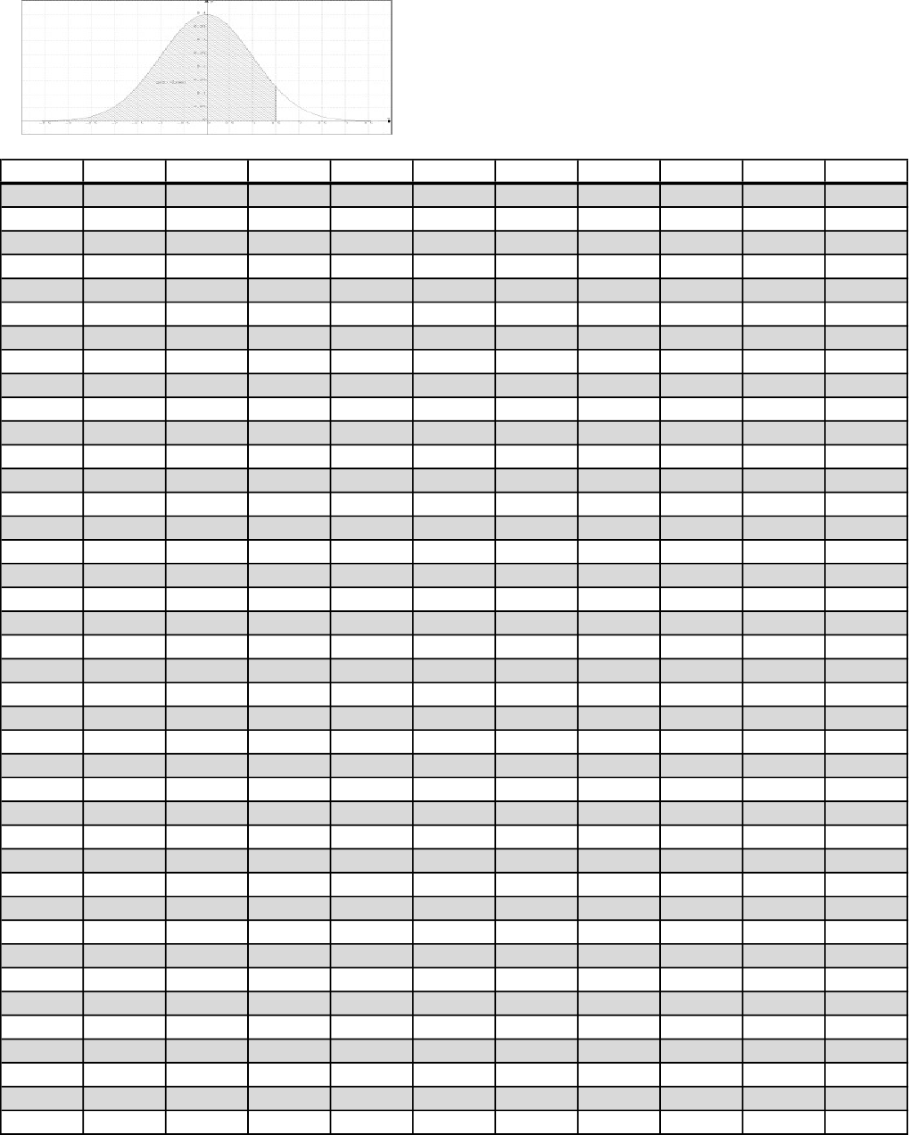 Tabela de Áreas para a Distribuição de Probabilidade Normal Padronizada Z 0,00 0,01 0,02 0,03 0,04 0,05 0,06 0,07 0,08 0,09 0.0 0.5000 0.5040 0.5080 0.5120 0.5160 0.5199 0.5239 0.5279 0.5319 0.5359 0.1 0.5398 0.5438 0.5478 0.5517 0.5557 0.5596 0.5636 0.5675 0.5714 0.5753 0.2 0.5793 0.5832 0.5871 0.5910 0.5948 0.5987 0.6026 0.6064 0.6103 0.6141 0.3 0.6179 0.6217 0.6255 0.6293 0.6331 0.6368 0.6406 0.6443 0.6480 0.6517 0.4 0.6554 0.6591 0.6628 0.6664 0.6700 0.6736 0.6772 0.6808 0.6844 0.6879 0.5 0.6915 0.6950 0.6985 0.7019 0.7054 0.7088 0.7123 0.7157 0.7190 0.7224 0.6 0.7257 0.7291 0.7324 0.7357 0.7389 0.7422 0.7454 0.7486 0.7517 0.7549 0.7 0.7580 0.7611 0.7642 0.7673 0.7704 0.7734 0.7764 0.7794 0.7823 0.7852 0.8 0.7881 0.7910 0.7939 0.7967 0.7995 0.8023 0.8051 0.8078 0.8106 0.8133 0.9 0.8159 0.8186 0.8212 0.8238 0.8264 0.8289 0.8315 0.8340 0.8365 0.8389 1.0 0.8413 0.8438 0.8461 0.8485 0.8508 0.8531 0.8554 0.8577 0.8599 0.8621 1.1 0.8643 0.8665 0.8686 0.8708 0.8729 0.8749 0.8770 0.8790 0.8810 0.8830 1.2 0.8849 0.8869 0.8888 0.8907 0.8925 0.8944 0.8962 0.8980 0.8997 0.9015 1.3 0.9032 0.9049 0.9066 0.9082 0.9099 0.9115 0.9131 0.9147 0.9162 0.9177 1.4 0.9192 0.9207 0.9222 0.9236 0.9251 0.9265 0.9279 0.9292 0.9306 0.9319 1.5 0.9332 0.9345 0.9357 0.9370 0.9382 0.9394 0.9406 0.9418 0.9429 0.9441 1.6 0.9452 0.9463 0.9474 0.9484 0.9495 0.9505 0.9515 0.9525 0.9535 0.9545 1.7 0.9554 0.9564 0.9573 0.9582 0.9591 0.9599 0.9608 0.9616 0.9625 0.9633 1.8 0.9641 0.9649 0.9656 0.9664 0.9671 0.9678 0.9686 0.9693 0.9699 0.9706 1.9 0.9713 0.9719 0.9726 0.9732 0.9738 0.9744 0.9750 0.9756 0.9761 0.9767 2.0 0.9772 0.9778 0.9783 0.9788 0.9793 0.9798 0.9803 0.9808 0.9812 0.9817 2.1 0.9821 0.9826 0.9830 0.9834 0.9838 0.9842 0.9846 0.9850 0.9854 0.9857 2.2 0.9861 0.9864 0.9868 0.9871 0.9875 0.9878 0.9881 0.9884 0.9887 0.9890 2.3 0.9893 0.9896 0.9898 0.9901 0.9904 0.9906 0.9909 0.9911 0.9913 0.9916 2.4 0.9918 0.9920 0.9922 0.9925 0.9927 0.9929 0.9931 0.9932 0.9934 0.9936 2.5 0.9938 0.9940 0.9941 0.9943 0.9945 0.9946 0.9948 0.9949 0.9951 0.9952 2.6 0.9953 0.9955 0.9956 0.9957 0.9959 0.9960 0.9961 0.9962 0.9963 0.9964 2.7 0.9965 0.9966 0.9967 0.9968 0.9969 0.9970 0.9971 0.9972 0.9973 0.9974 2.8 0.9974 0.9975 0.9976 0.9977 0.9977 0.9978 0.9979 0.9979 0.9980 0.9981 2.9 0.9981 0.9982 0.9982 0.9983 0.9984 0.9984 0.9985 0.9985 0.9986 0.9986 3.0 0.9987 0.9987 0.9987 0.9988 0.9988 0.9989 0.9989 0.9989 0.9990 0.9990 3.1 0.9990 0.9991 0.9991 0.9991 0.9992 0.9992 0.9992 0.9992 0.9993 0.9993 3.2 0.9993 0.9993 0.9994 0.9994 0.9994 0.9994 0.9994 0.9995 0.9995 0.9995 3.3 0.9995 0.9995 0.9995 0.9996 0.9996 0.9996 0.9996 0.9996 0.9996 0.9997 3.4 0.9997 0.9997 0.9997 0.9997 0.9997 0.9997 0.9997 0.9997 0.9997 0.9998 3.5 0.9998 0.9998 0.9998 0.9998 0.9998 0.9998 0.9998 0.9998 0.9998 0.9998 3.6 0.9998 0.9998 0.9999 0.9999 0.9999 0.9999 0.9999 0.9999 0.9999 0.9999 3.7 0.9999 0.9999 0.9999 0.9999 0.9999 0.9999 0.9999 0.9999 0.9999 0.9999 3.8 0.9999 0.9999 0.9999 0.9999 0.9999 0.9999 0.9999 0.9999 0.9999 0.9999 3.9 1.0000 1.0000 1.0000 1.0000 1.0000 1.0000 1.0000 1.0000 1.0000 1.0000