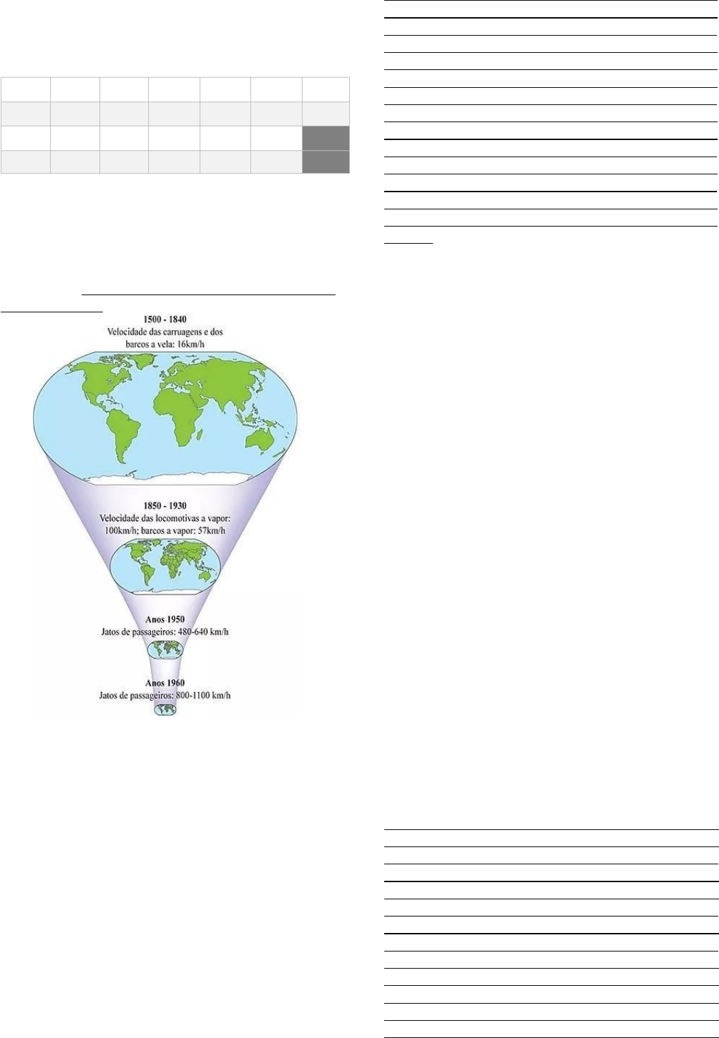 E. E. DESEMBARGADOR CANÊDO DISCIPLINA: GEOGRAFIA - Prof.ª VALÉRIA Simulado: Globalização ALUNO (A):_________________________________________ GABARITO 1 2 3 4 5 6 7 8 9 10 11 12 13 1) A imagem abaixo ilustra o “encolhimento” do mapa-múndi. Analisando as imagens juntamente com as informações podemos tirar algumas conclusões sobre o que retrata. Desta forma, logo abaixo, entre as afirmativas fornecidas, ASSINALE APENAS A QUE NÃO É VERDADEIRA. a) trata da evolução tecnológica dos meios de transporte e a velocidade que chegam a alcançar na atualidade. b) refere-se ao fato de que o mundo está cada vez menor devido à grande quantidade de pessoas (mais de 7 bilhões atualmente) , que necessita dos meios de transporte para se locomover. c) refere-se ao fato de como foi possível “diminuir” as distâncias, aumentando a velocidade de locomoção, graças ao avanço tecnológico. d) torna o espaço mundial mais homogêneo aumentando, as desigualdades tanto entre os países como entre os segmentos sociais. 2. Leia o fragmento a seguir sobre as características do processo de globalização. "Suponhamos que você vá com seus amigos comer um cheeseburger e tomar Coca-Cola no McDonald's. Em seguida, assista a um filme de Steven Spielberg e volte para casa num carro Ford ou num ônibus Mercedes. Ao chegar, o telefone toca. Você atende num aparelho fabricado pela Siemmens e ouve um amigo lembrando-o de um videoclipe que começou há instantes na televisão: Michael Jackson em seu último lançamento. Você corre e liga o aparelho da marca Mitsubishi. Ao terminar o clipe, decide ouvir um CD do grupo Simply Red gravado pela BMG Ariola Discos, de propriedade da Warner, em seu equipamento Philips."(Fonte:http://www.brasilescola.com/geografia/globalizacao.htm) Sobre esse processo, é incorreto afirmar: a) A globalização é um processo, ainda em curso, de integração de economias e mercados nacionais. b) A globalização implica certa interdependência de países e de pessoas, além da uniformização de padrões de consumo em âmbito mundial. c) As pessoas dependem crescentemente de mercadorias produzidas pelo capitalismo mundial. d) As pessoas podem usufruir todos os produtos da economia globalizada desde que possam pagar por elas. 3. O desenvolvimento dos meios de comunicação de massa trouxe benefícios e prejuízos para a humanidade. Como fator positivo eles proporcionam ao homem: a) a redução da violência b) a redução do consumo c) a melhoria na distribuição de renda d) o acesso á informação 4.Hoje as imagens de televisão, as conversas telefônicas e os dados de computadores são transmitidos para o mundo todo por meio de: a) aparelhos de fax b) cabo submarino de telégrafo c) satélites naturais d) satélites artificiais Leia o texto abaixo e responda as questões 5, 6 e 7: Para se ter uma ideia, em 1960 eram feitos 2 milhões de ligações telefônicas entre Europa e os EUA. Atualmente elas superam os 700 milhões. Algo, sem dúvida alguma fantástico. O processo só está começando. As fibras óticas, por exemplo, possuem a espessura de um fio de cabelo e permite a transmissão simultânea de 500 canais de TV. O custo da transmissão de dados caiu consideravelmente nas últimas décadas. As estatísticas do setor de telecomunicações apontam a existência de 745 milhões de telefones para uma população de mais de 7 bilhões de pessoas. A maior concentração ocorre na Europa, América do Norte e Oceania: algo em torno de 25 linhas para cada 100 habitantes. Na África, 1 linha para cada 100 habitantes. 5. Sobre o texto é correto afirmar: a) Trata se de um processo conhecido como capitalismo selvagem. b) Trata se de um processo de ajuda aos países desenvolvidos. c) Trata se de um processo chamado globalização. d) Trata-se de um processo chamado socialização. 6. O texto afirma que o processo de expansão das linhas telefônicas tende a: a) Aumentar cada vez mais. b) Diminuir, pois todo o planeta já possui telefones. c) O texto não se refere a telefones. d) Tende a aumentar somente nos países pobres. d) Tende a estagnação 7. O continente africano apresenta uma situação de: a) Atraso frente ao processo de expansão das linhas telefônicas. b) Superioridade em relação aos outros continentes. c) Modernização do continente, pois, foi o que mais se modernizou nas últimas décadas. d) É um continente que exerce grande influência no processo de globalização. 8. O processo de globalização tem, na atualidade, provocado grandes mudanças, tanto nas esferas econômica, financeira e política quanto na vida social e cultural dos povos e das nações, em escala mundial. A esse respeito, é possível afirmar, de modo correto, que: a) A maioria das instituições financeiras globais tem sua sede localizada nos países subdesenvolvidos. b) O avanço das telecomunicações e da informática e o uso da internet são fundamentais para os fluxos financeiros mundiais. c) O Estado intervém na economia por meio de investimentos no setor industrial, fortalecendo, assim, as empresas estatais. d) As transformações políticas, econômicas, sociais e tecnológicas dão-se da mesma forma nos países desenvolvidos e subdesenvolvidos. 9. Com relação ao espaço mundial, o processo de globalização provoca uma homogeneização da produção e do consumo em nível global, porém esse processo não é uniforme em todo o planeta. Desse modo, pode-se afirmar que a globalização resultou na: a) melhoria da qualidade de vida das populações periféricas. b) utilização de mão de obra com baixa qualificação profissional. c) acentuação da desigualdade social entre diferentes regiões. d) diminuição dos impactos ambientais gerados no globo. 10. A globalização é um processo que marca o mundo atual. A sua implementação só foi possível mediante o: a) aumento da população dos países mais desenvolvidos. b) elevado volume de empréstimos em moeda nacional. c)