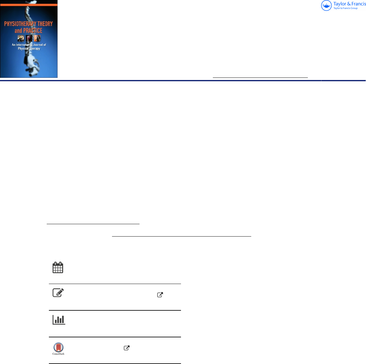 Full Terms & Conditions of access and use can be found at https://www.tandfonline.com/action/journalInformation?journalCode=iptp20 Physiotherapy Theory and Practice An International Journal of Physical Therapy ISSN: 0959-3985 (Print) 1532-5040 (Online) Journal homepage: https://www.tandfonline.com/loi/iptp20 Effects of aquatic physiotherapy or health education program in women with fibromyalgia: a randomized clinical trial Angélica Cristina Sousa Fonseca, Priscila Conceição Faria, Marcus Alessandro De Alcântara, Wálisson Dias Pinto, Letícia Gontijo De Carvalho, Filipe Gustavo Lopes & Andrei Pereira Pernambuco To cite this article: Angélica Cristina Sousa Fonseca, Priscila Conceição Faria, Marcus Alessandro De Alcântara, Wálisson Dias Pinto, Letícia Gontijo De Carvalho, Filipe Gustavo Lopes & Andrei Pereira Pernambuco (2019): Effects of aquatic physiotherapy or health education program in women with fibromyalgia: a randomized clinical trial, Physiotherapy Theory and Practice, DOI: 10.1080/09593985.2019.1639229 To link to this article: https://doi.org/10.1080/09593985.2019.1639229 Published online: 15 Jul 2019. Submit your article to this journal Article views: 15 View Crossmark data https://www.tandfonline.com/action/journalInformation?journalCode=iptp20 https://www.tandfonline.com/loi/iptp20 https://www.tandfonline.com/action/showCitFormats?doi=10.1080/09593985.2019.1639229 https://doi.org/10.1080/09593985.2019.1639229 https://www.tandfonline.com/action/authorSubmission?journalCode=iptp20&show=instructions https://www.tandfonline.com/action/authorSubmission?journalCode=iptp20&show=instructions http://crossmark.crossref.org/dialog/?doi=10.1080/09593985.2019.1639229&domain=pdf&date_stamp=2019-07-15 http://crossmark.crossref.org/dialog/?doi=10.1080/09593985.2019.1639229&domain=pdf&date_stamp=2019-07-15 Effects of aquatic physiotherapy or health education program in women with fibromyalgia: a randomized clinical trial Angélica Cristina Sousa Fonseca, PTa, Priscila Conceição Faria, PTa, Marcus Alessandro De Alcântara, PhD, PTb, Wálisson Dias Pintoa, Letícia Gontijo De Carvalhoa, Filipe Gustavo Lopes, MScb,c, and Andrei Pereira Pernambuco, PhD, PTa,d aDepartment of physiotherapy , Centro Universitário de Formiga – MG (UNIFOR-MG), Formiga, Minas Gerais, Brasil; bUniversidade Federal dos Vales do Jequitinhonha e Mucuri (UFVJM), Diamantina, Minas Gerais, Brasil; cPrograma de Neurorreabilitação em Lesão Medular da Rede SARAH de Hospitais de Reabilitação, Belo Horizonte, Minas Gerais, Brasil; dDepartment of physiotherapy, Universidade de Itaúna – MG (UIT), Itaúna, Minas Gerais, Brasil ABSTRACT Background: Different treatments have been proposed for Fibromyalgia, but only few studies have compared their effects on multiples outcomes over time. Objective: The objective of this study was to investigate the effects of aquatic physiotherapy (AP) or a health education program (HEP) in a sample of women with Fibromyalgia (FM). Methods: Forty-six women with FM, aged between 25 and 60 years old, whose BMI was less than 30, were assigned to either AP (27 women) or HEP (19 women) groups in a blind randomized clinical trial lasting eleven weeks. Pain (McGill Pain questionnaire), fatigue (Piper Fatigue Scale-Revised), functional capability (Fibromyalgia Impact questionnaire), anxiety (Beck Anxiety Inventory), depression (Beck Depression Inventory) and quality of sleep (Pittsburgh Sleep Quality Index) data were collected at baseline, after six weeks and post intervention. Two-factor mixed-model analysis of variance (ANOVAs) were used to examine the effects of the treatment on each outcome variable. Results: The AP and HEP interventions showed statistically significant within-group differences on all outcome measures except reducing the pain. Between-group differences was statistically significant only for impact of FM on the participant’s life [F(1.82,80.41) = 31,99; p ≤ 0.01] indicating that patients receiving HEP experienced a greater decrease in FIQ than those treated with AP. Conclusion: The findings do not allow to affirm that one intervention is superior to the other for the treatment of people with FM. Future studies should investigate whether the combination of HEP and PA can be effective and long-lasting. ARTICLE HISTORY Received 8 March 2018 Revised 5 April 2019 Accepted 28 May 2019 KEYWORDS Fibromyalgia; health education; aquatic physiotherapy; treatment Introduction Fibromyalgia (FM) is a clinical condition characterized by the occurrence of chronic and generalized pain, associated with other symptoms and comorbidities such as fatigue, depression, anxiety and sleep disorders (Sarzi-Puttini et al., 2012a). This condition primarily affects women, in a proportion of nine women for each man (Hauser, Bialas, Welsch, and Wolfe, 2015). The pathophysiology of FM has not been fully elucidated yet, however, the available evidence suggest a complex interaction between multiple factors, such as immunological, neuroendocrine, behavioral, genetics, among others (Carvalho et al., 2008; Sarzi-Puttini, Atzeni, and Perrot, 2012b; Uceyler et al., 2017). For some authors, an imbalance in the stress response system, the hypothalamic-pituitary-adrenal axis (HPA), would have an important role in the genesis and evolution of FM symptoms (Carvalho et al., 2008; Pernambuco, 2014; Pernambuco et al., 2017; Wingenfeld et al., 2010). The limited understanding on the pathophy- siological mechanisms and the clinical heterogeneity pre- sented by the patients are factors that hinder the development of effective therapeutic conducts (Mease et al., 2007; Uceyler et al., 2017). Ideal management of FM requires a patient-tailored, multimodal approach based on both pharmacological and non-pharmacological interventions (Fitzcharles et al., 2013; Kia and Choy, 2017). Regarding pharma- cological treatment, the evidence supports the use of Amitriptyline, Duloxetine, Pregabalin, Tramadol Hydrochloride, Minalcip